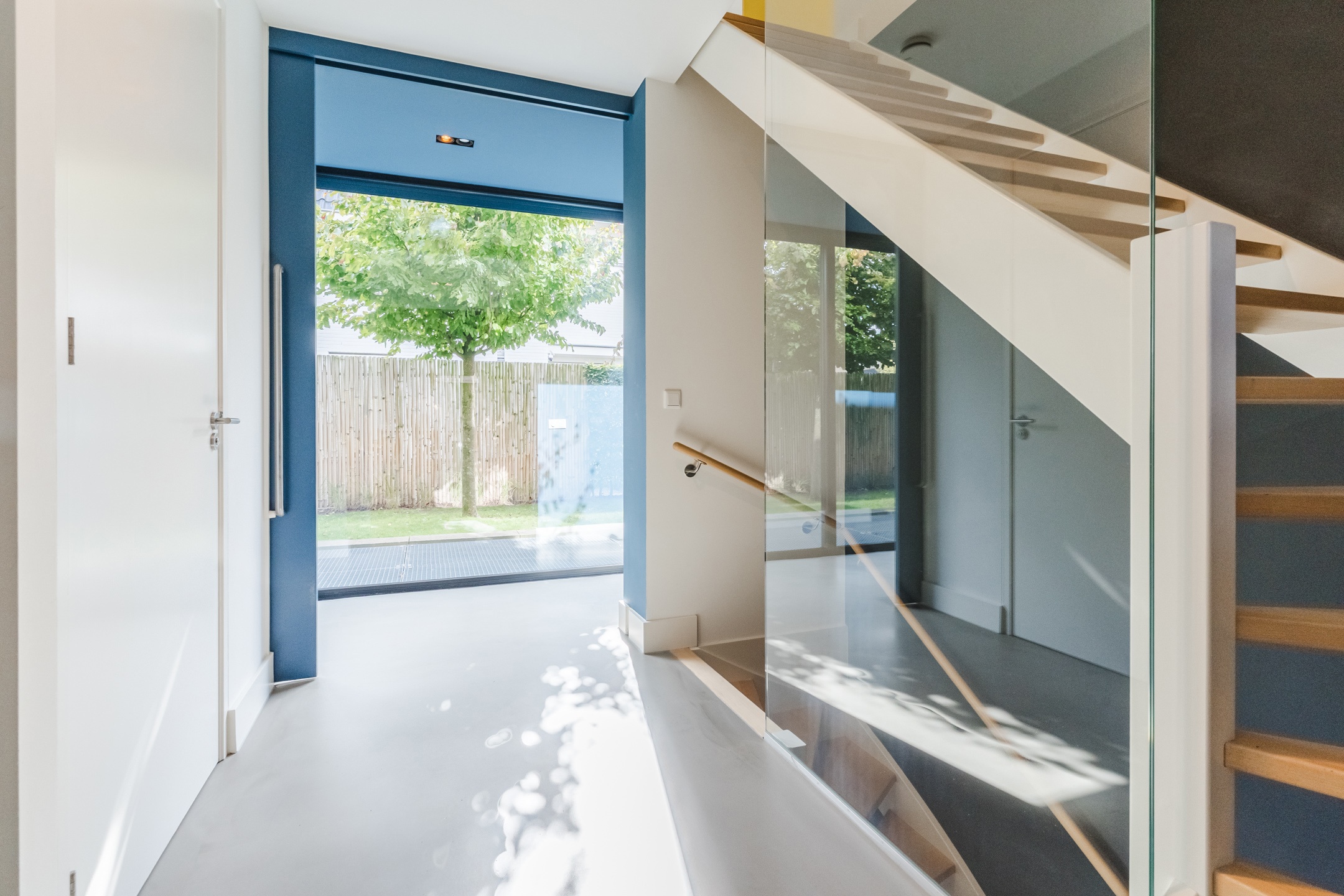 يضم القبو المجهز بالكامل غرفتي نوم وحماماً داخلياً، ولكل منهما منفذ مباشر إلى فناء خاص، بينما يقدم الطابق الأول غرفتي نوم إضافيتين وحماماً واسعاً وسقيفة. تمتاز جميع الأنحاء بمواد راقية مثل الخرسانة المصممة وإضاءة مدمجة ونظام تدفئة وتبريد تحت الأرضية مقسم إلى مناطق، مما يوفر مزيجاً من المتانة والراحة. تضمن ثمانية وعشرون لوحة شمسية، ومضخة حرارية جوفية، وزجاج عالي الكفاءة أداءً طاقياً حقيقياً فئة A++ وتوازناً دائماً للمناخ الداخلي وحياة آمنة للمستقبل.