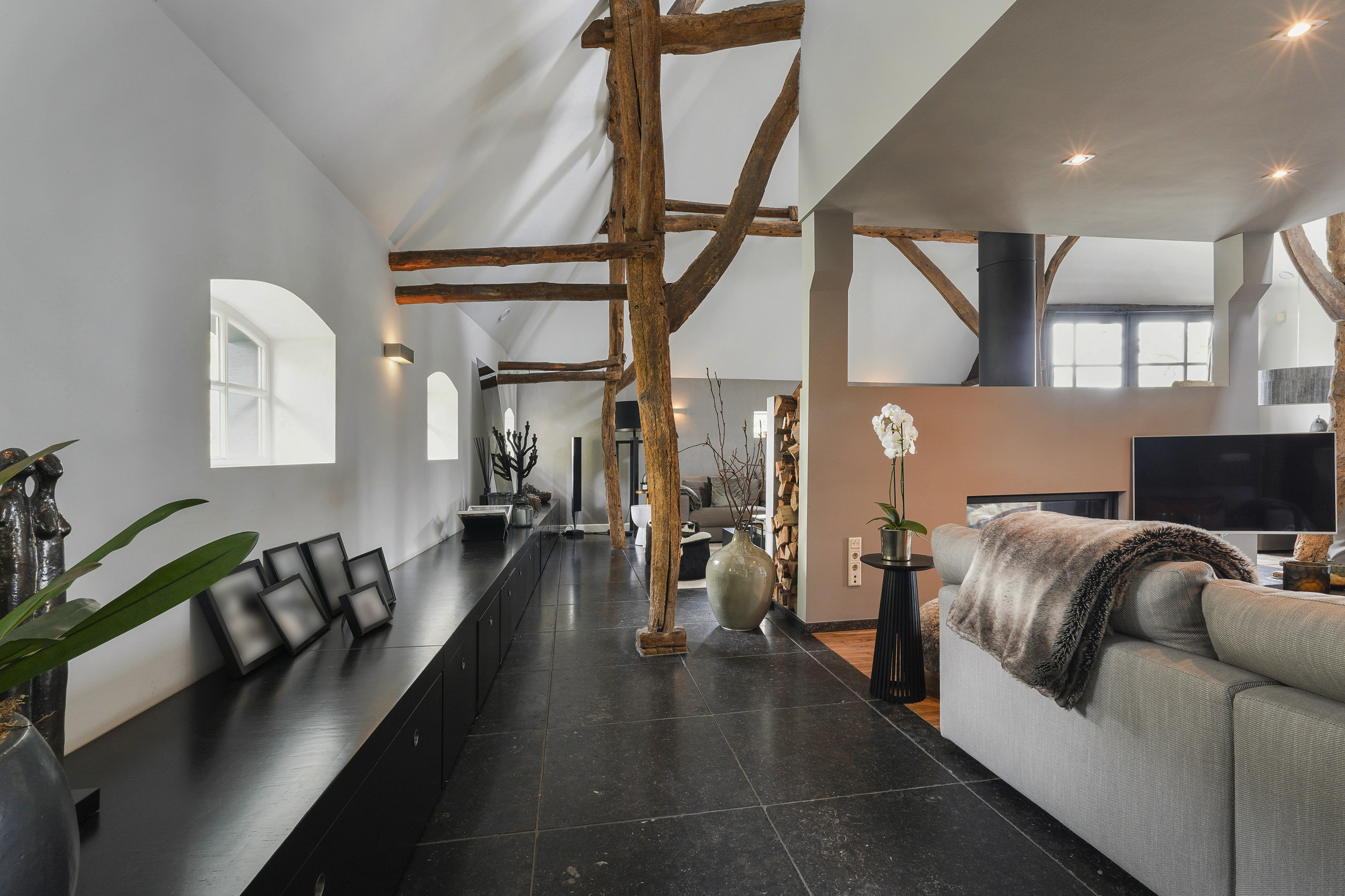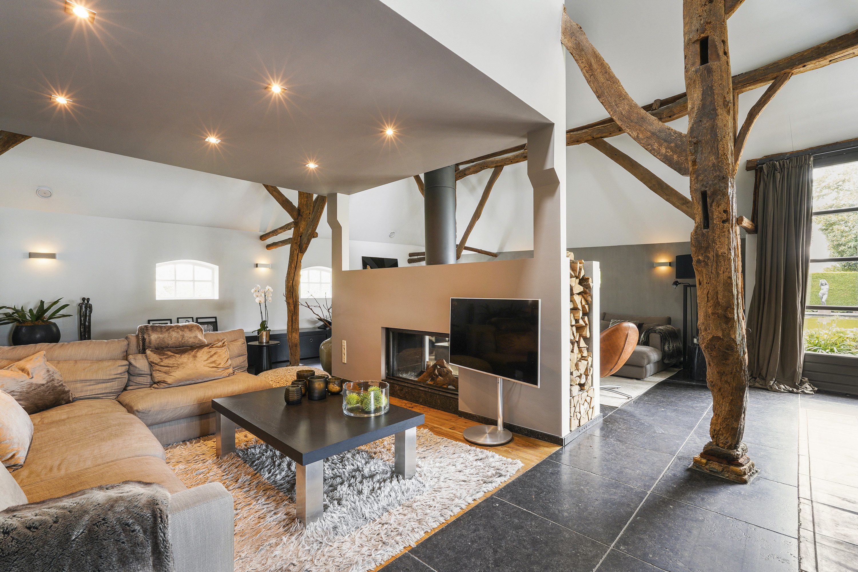 تقدم الإقامة الرئيسية بمساحة 323 م² ست غرف نوم وحمامين، بما في ذلك جناح رئيسي مع حوض استحمام مستقل ودش بمساحة مخصصة. تغمر مساحات المعيشة بالضوء، وتتميز بأرضيات من خشب البلوط المُرمم والعوارض الأصلية ومدفأة بنفق. تحتضن المطبخ أرضية من الحجر الأزرق البلجيكي وأجهزة حديثة، في حين تعزز صالة البلياردو ذات الأرضية المصنوعة من البلوط ومكتب الميزانين توازن الفيلا بين الاسترخاء والإنتاجية.