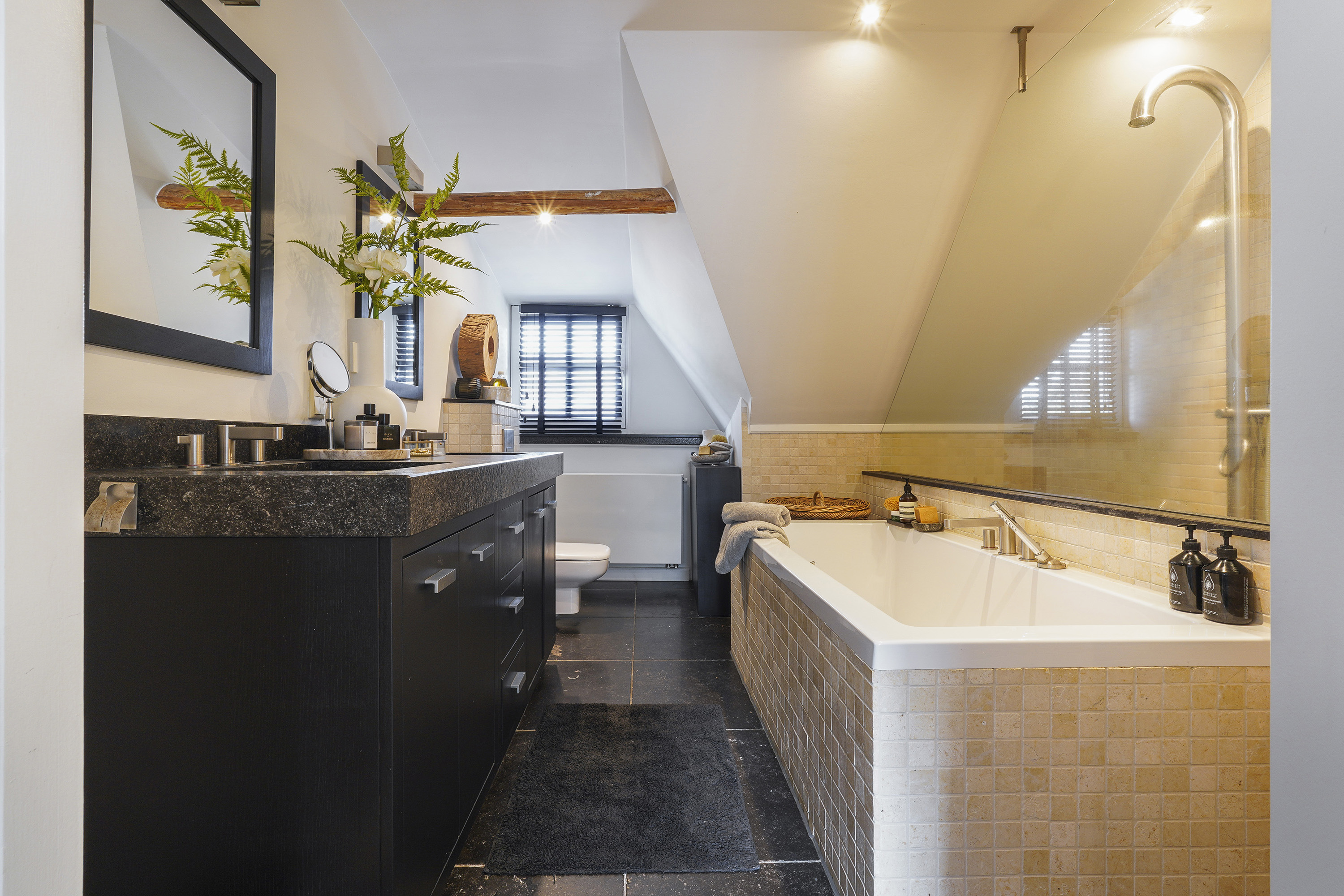 فيلا دونغن، مزرعة برابانتية طويلة جرى تجديدها بالكامل، تمثل أثراً وطنياً استثنائياً يمزج ببراعة بين التراث والراحة المعاصرة. تقع هذه العقار على أرض بمساحة 3,610 م²، وتستقبلك من خلال مدخل فخم وحدائق صُممت لضمان الخصوصية، تتخللها عدة برك للمياه، ومساحات عشبية منسقة، ومسبح مُدفأ بغطاء أوتوماتيكي. تعود أصول المنزل إلى حوالي عام 1704، وقد تم الحفاظ على أصالته بعناية فائقة عبر ترميم شامل شمل السقف القشّي المعزول، وأرضيات مُدفأة، وتكييف عالي الكفاءة، ونظام إنذار متطور.