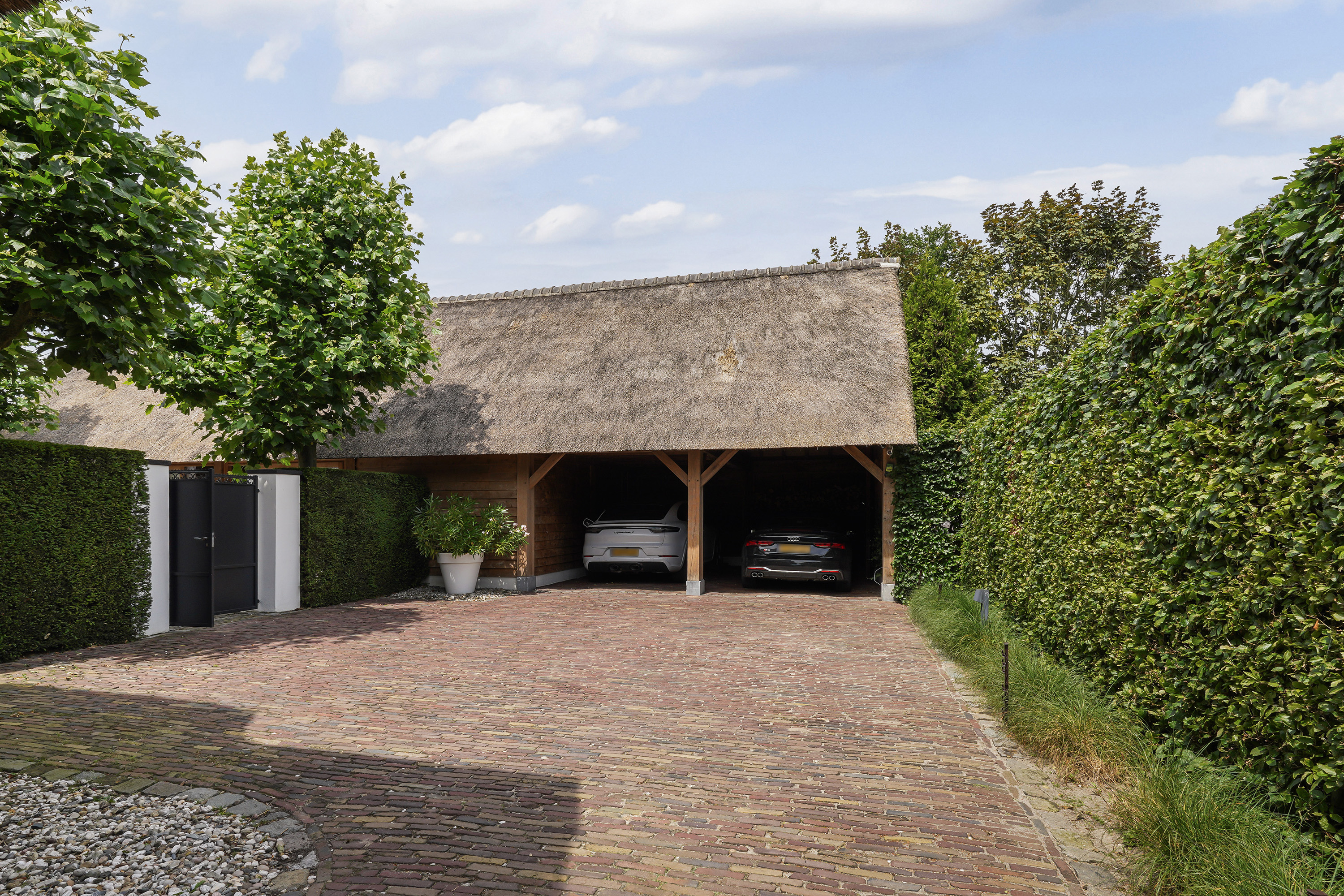 يكتمل الطابع الحصري للفيلا بسياج محيط وبوابات كهربائية أمامية وخلفية، لتمنح إحساساً بالملاذ والخصوصية وطابعاً هولندياً خالداً، مما يروق للباحثين عن الرصانة والأصالة في أعلى مراتبها.