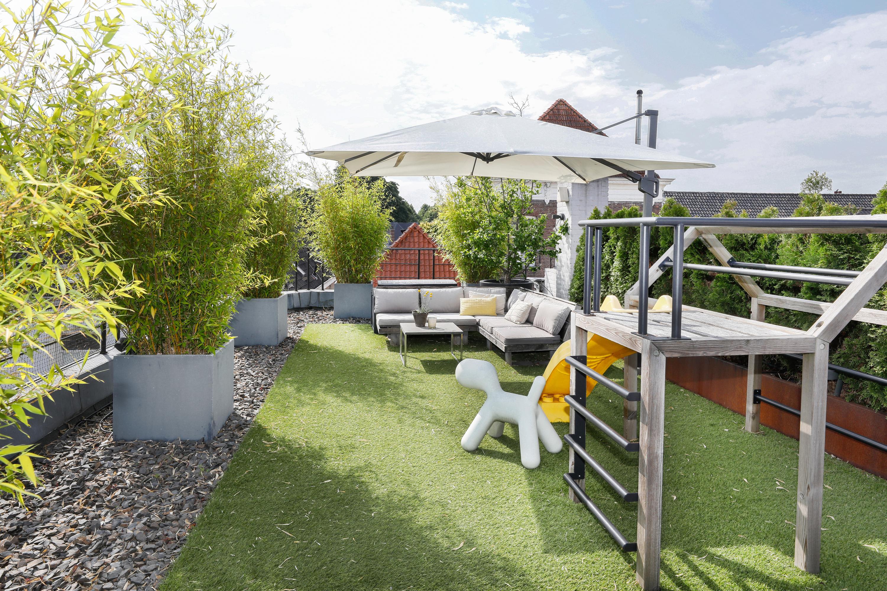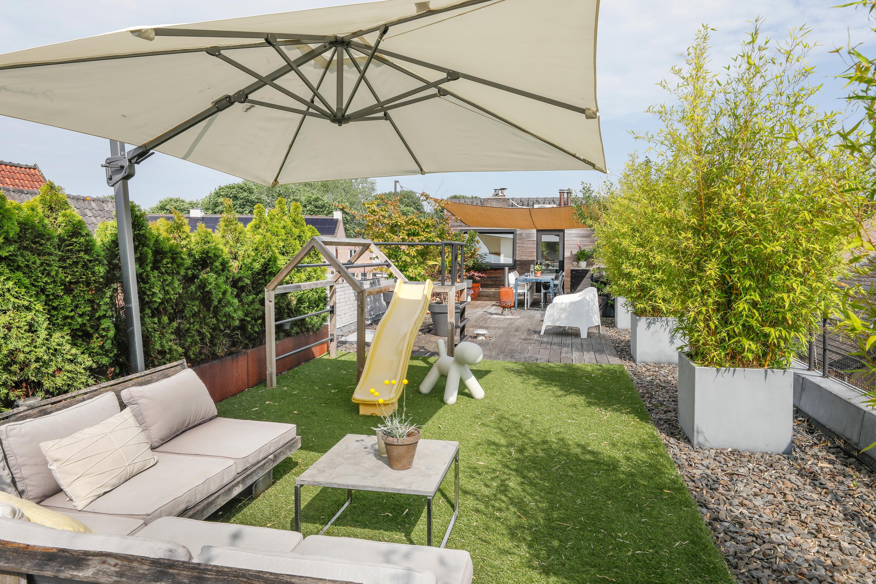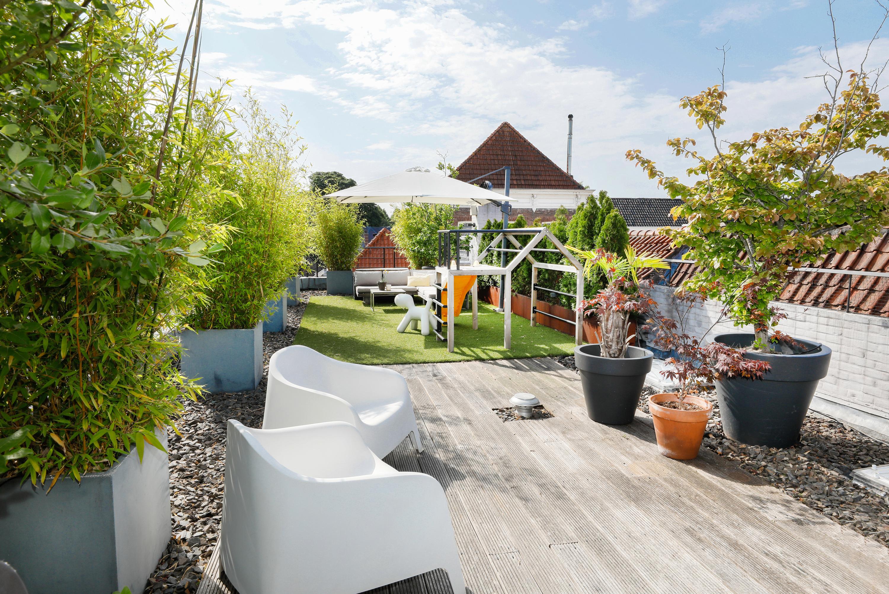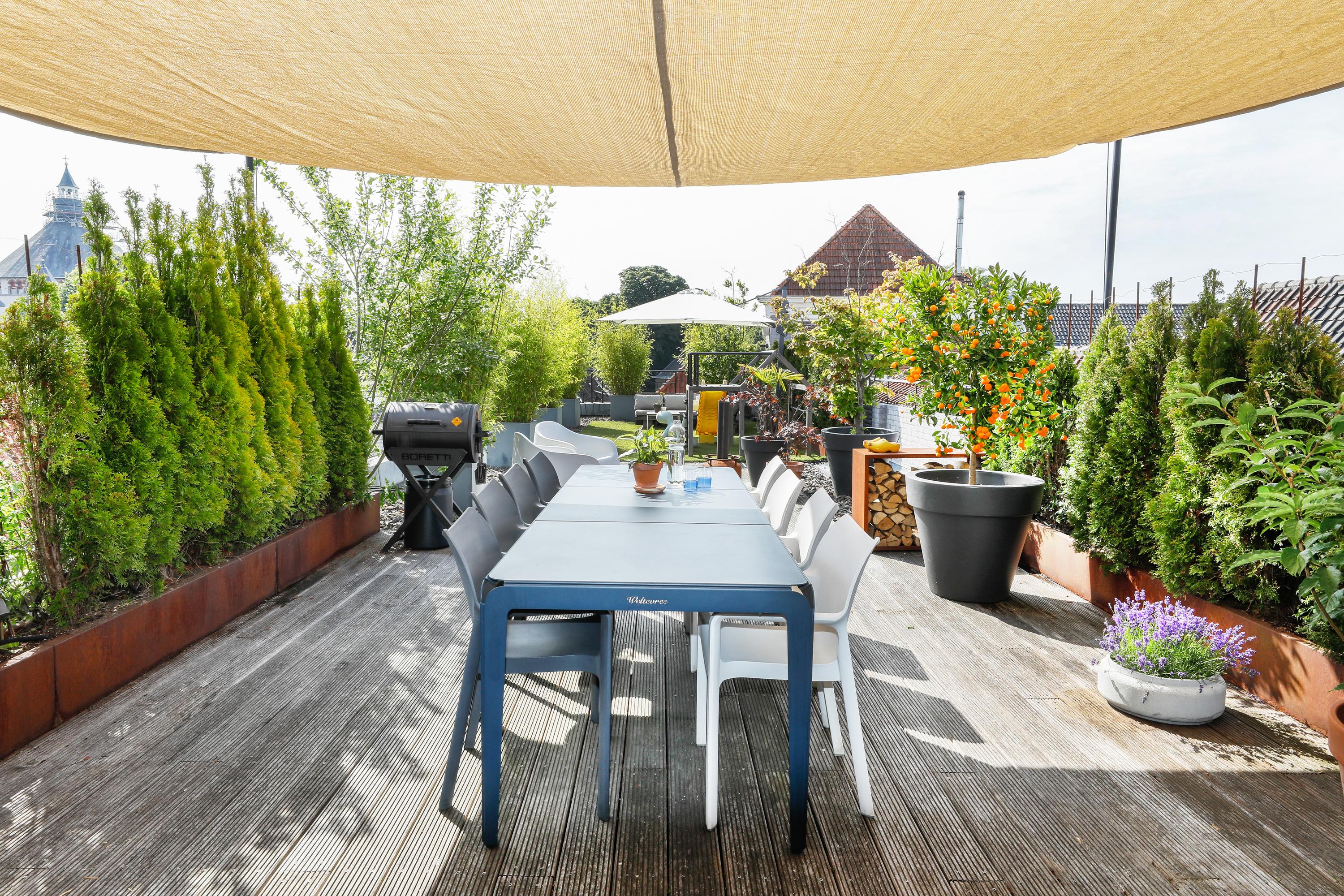 Groot appartement in hartje centrum met vijf kamers, een eigen entree/fietsenberging en een indrukwekkend dakterras.