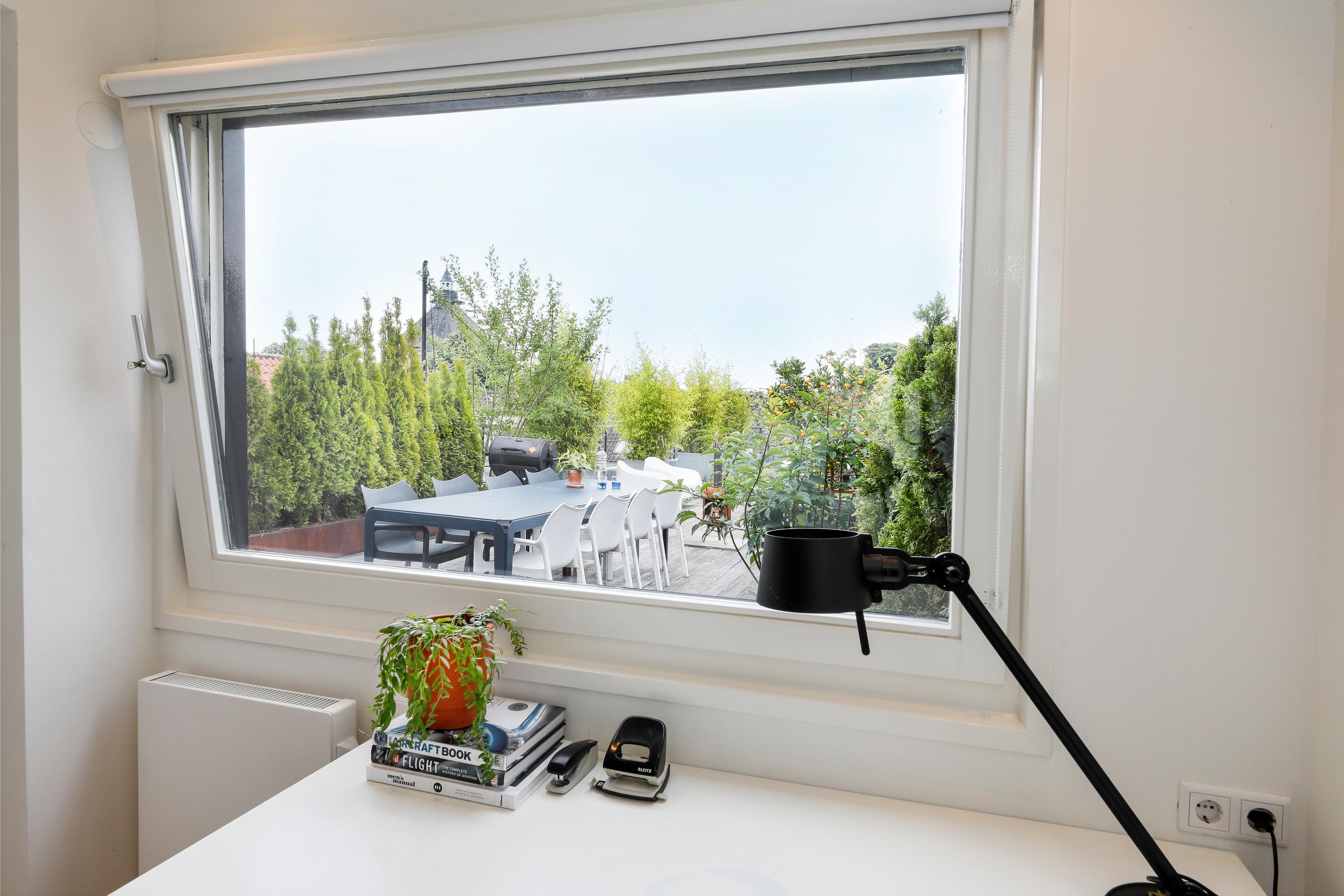 Dit bijzondere pand is je vast wel eens opgevallen als je door de Vughterstraat wandelde. Waarschijnlijk heb je toen ook al met verbazing naar dit enorme dakterras gekeken. Op “het dak van de stad” heb je hier een daktuin van ca. 113 m2. Niet alleen vanuit dit terras, maar ook vanuit de woning is er dat weidse uitzicht en heel veel licht. Naast de grote woonkamer met open keuken zijn er vier slaapkamers en natuurlijk een luxe badkamer. Je stapt met je voordeur meteen je eigen hal in waar je zelfs vier fietsen prima in kwijt kunt. Heel compleet, smaakvol en ruim dus en mét dat uitzonderlijke dakterras.
