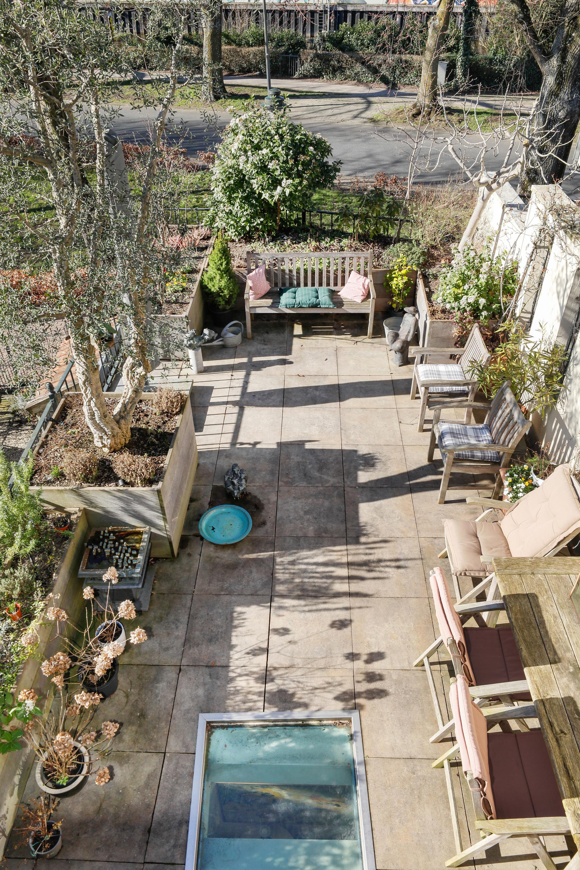 Here are the living room and kitchen. The low windows provide a beautiful view of the Brede Haven. At the rear is a large and sunny roof terrace where you can enjoy the sun from noon to sunset.