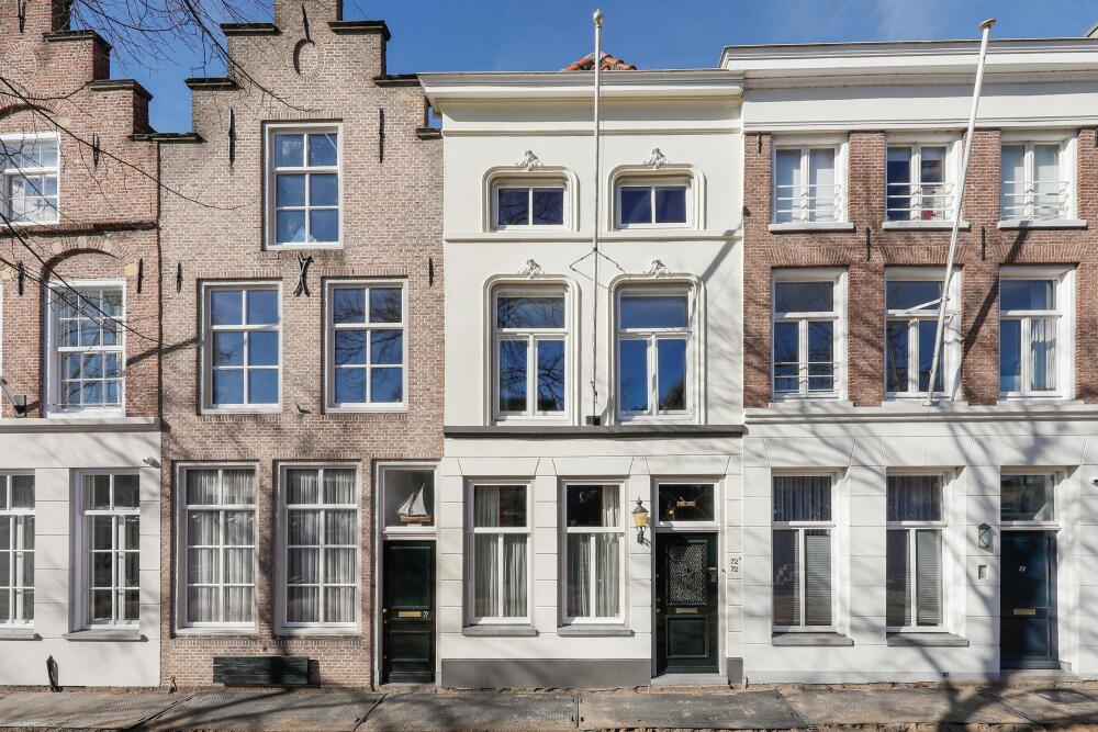 Live in one of the most beautiful locations in Den Bosch's city center, with water at both the front and back. This charming townhouse, dating from around 1670, features two living rooms, two roof terraces, a private garage, an elevator, and a beautiful view of the Brede Haven.