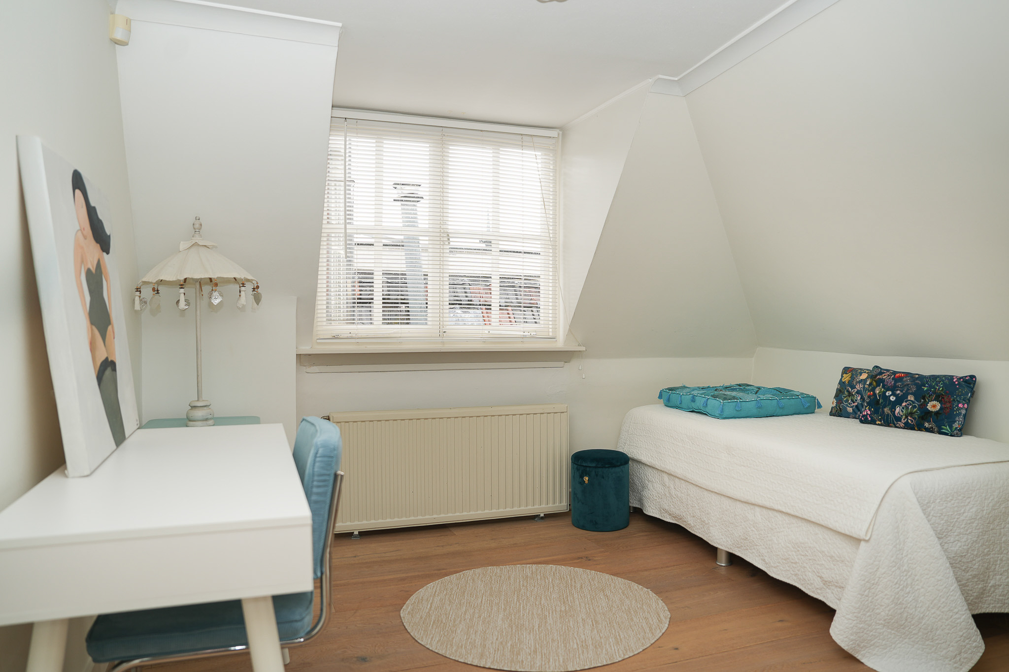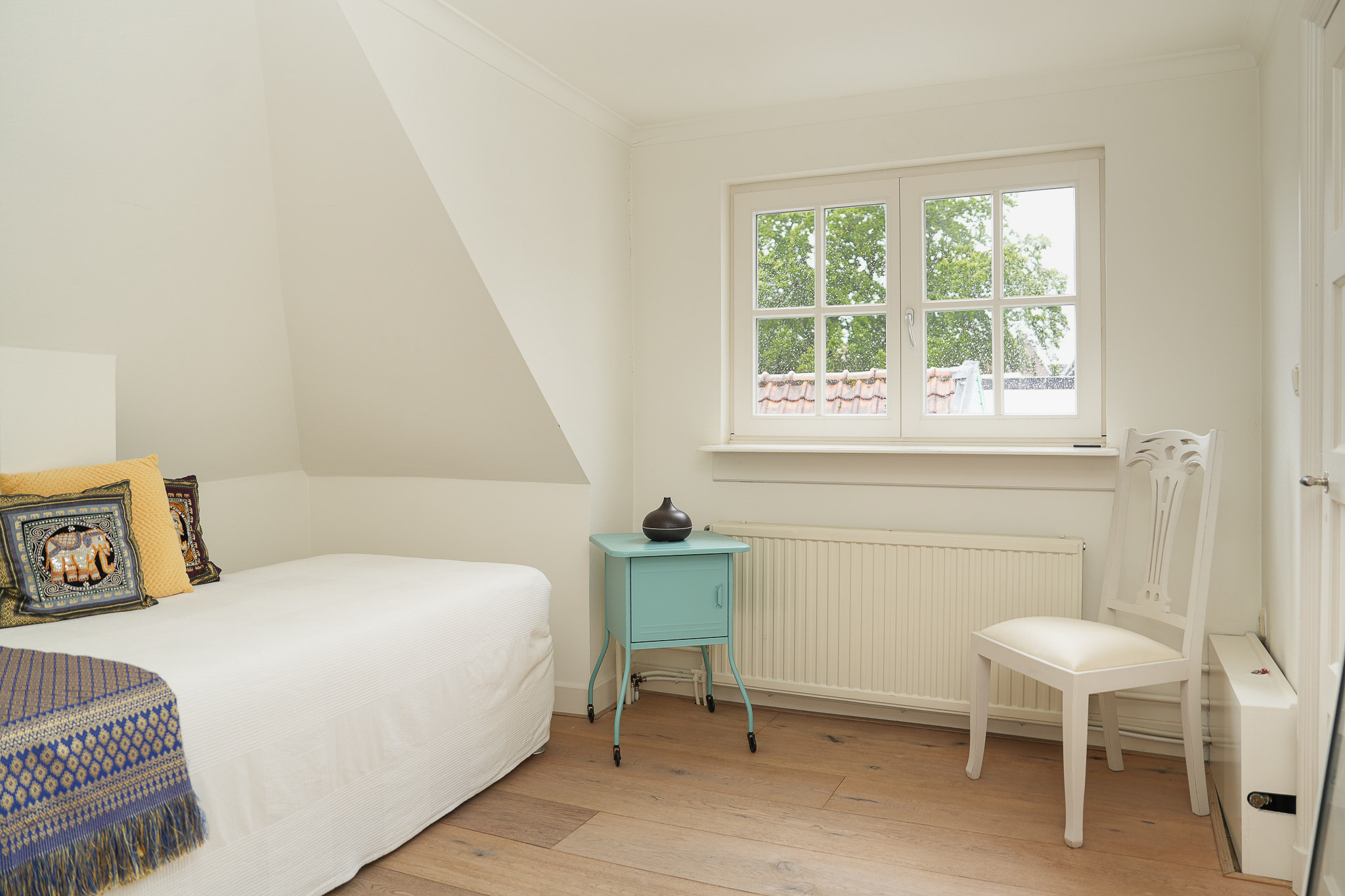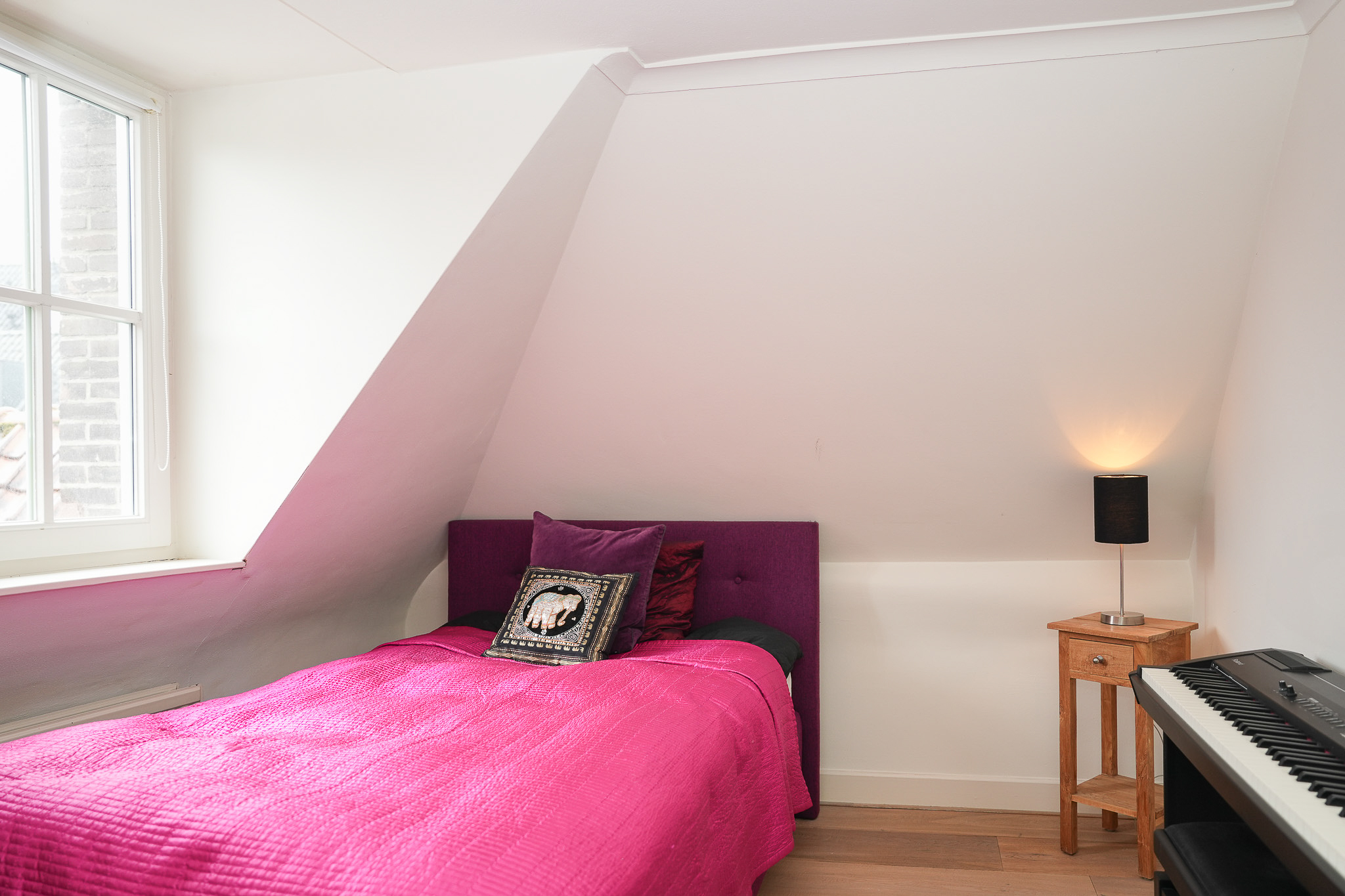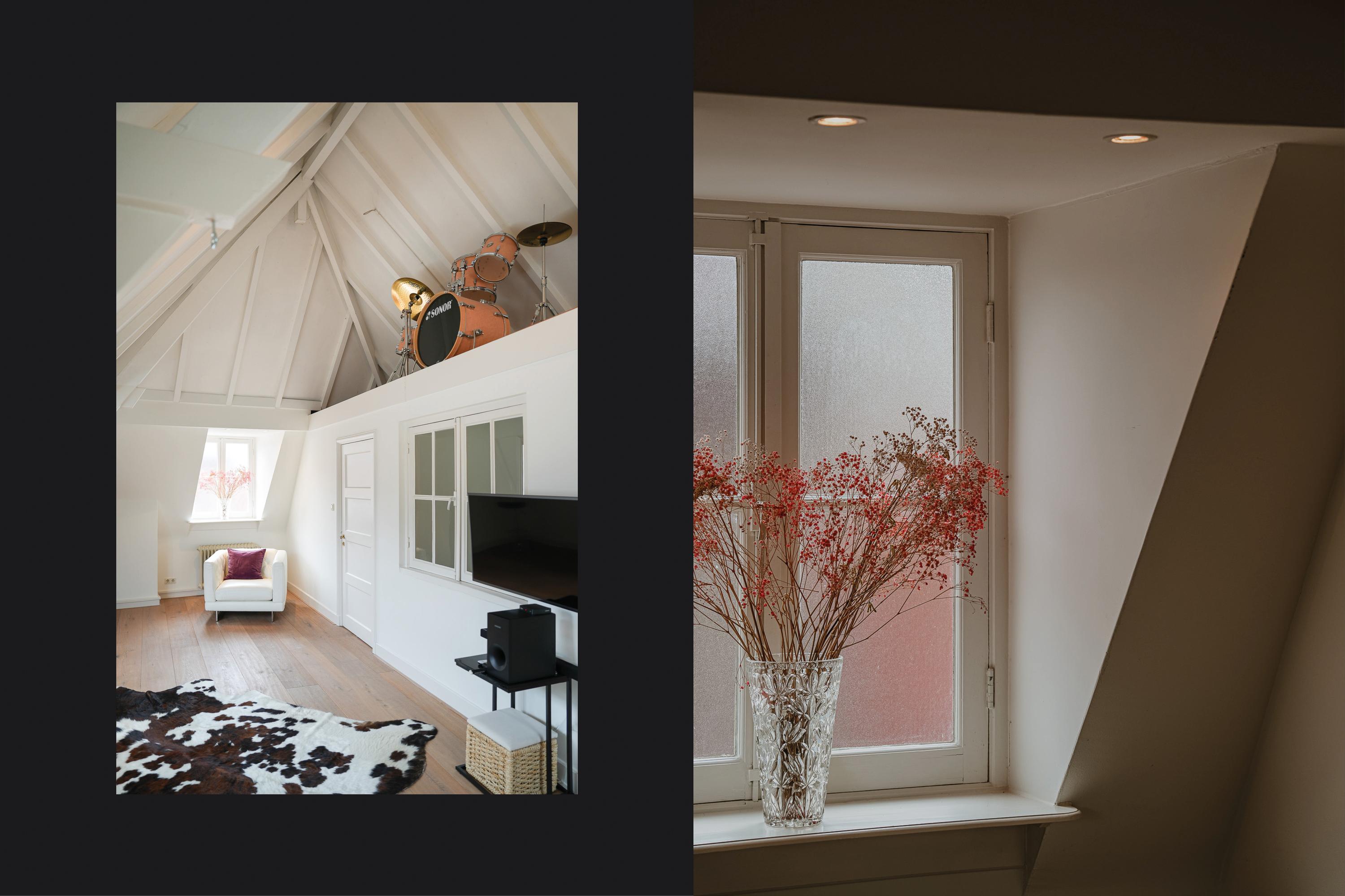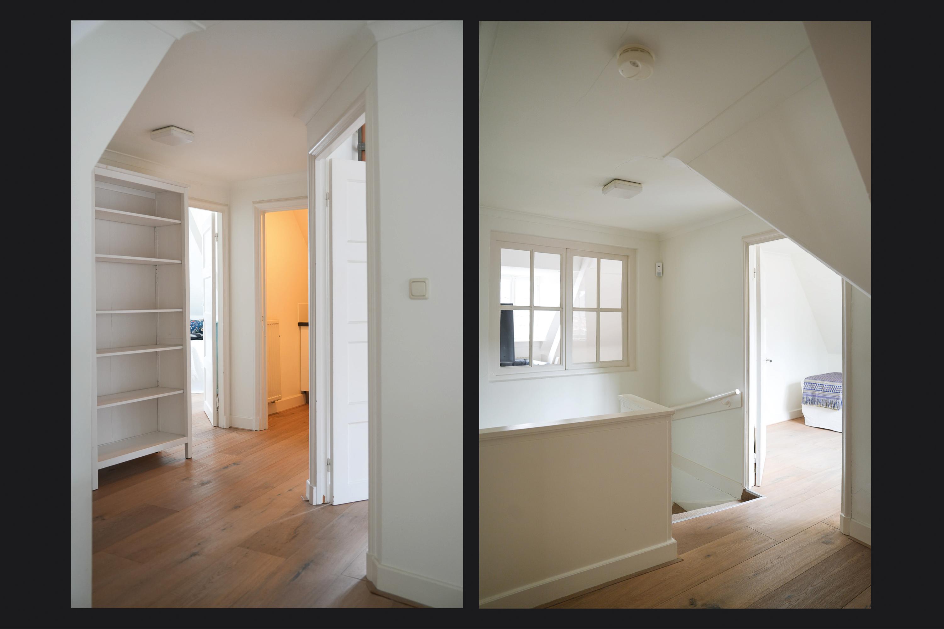 De tweede verdieping levert nogmaals vier kamers waarbij ook hier de grote zolderkamer het kaliber van een prachtige woonkamer heeft.