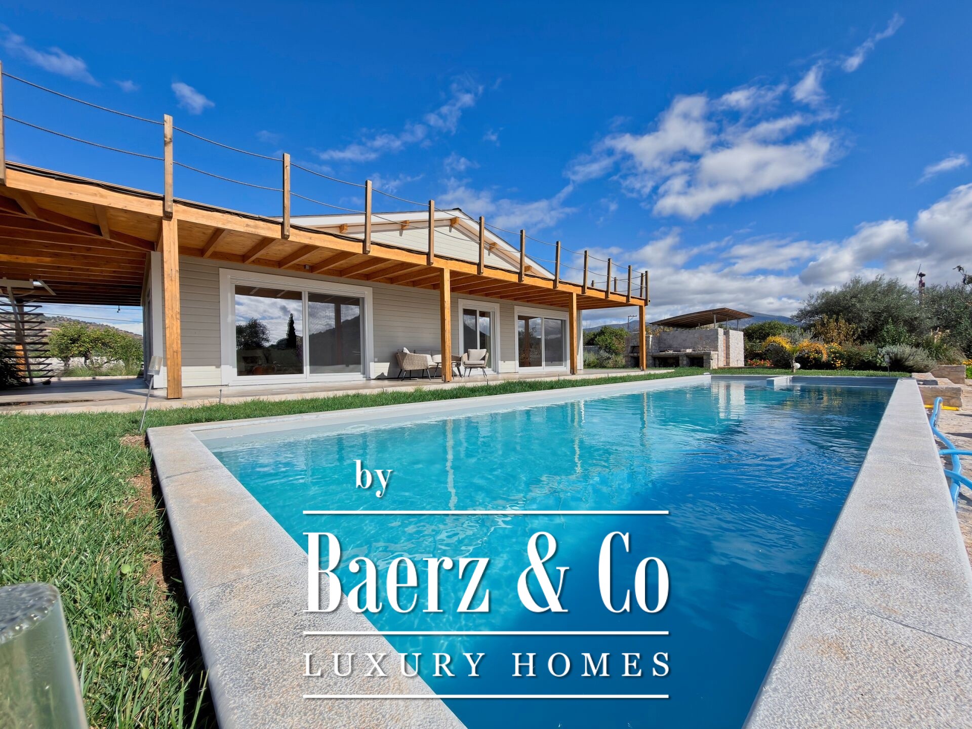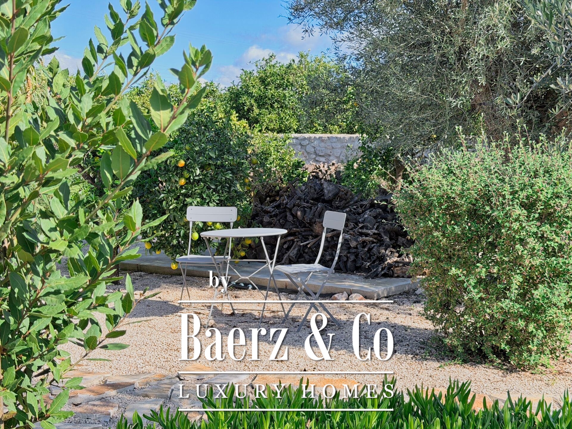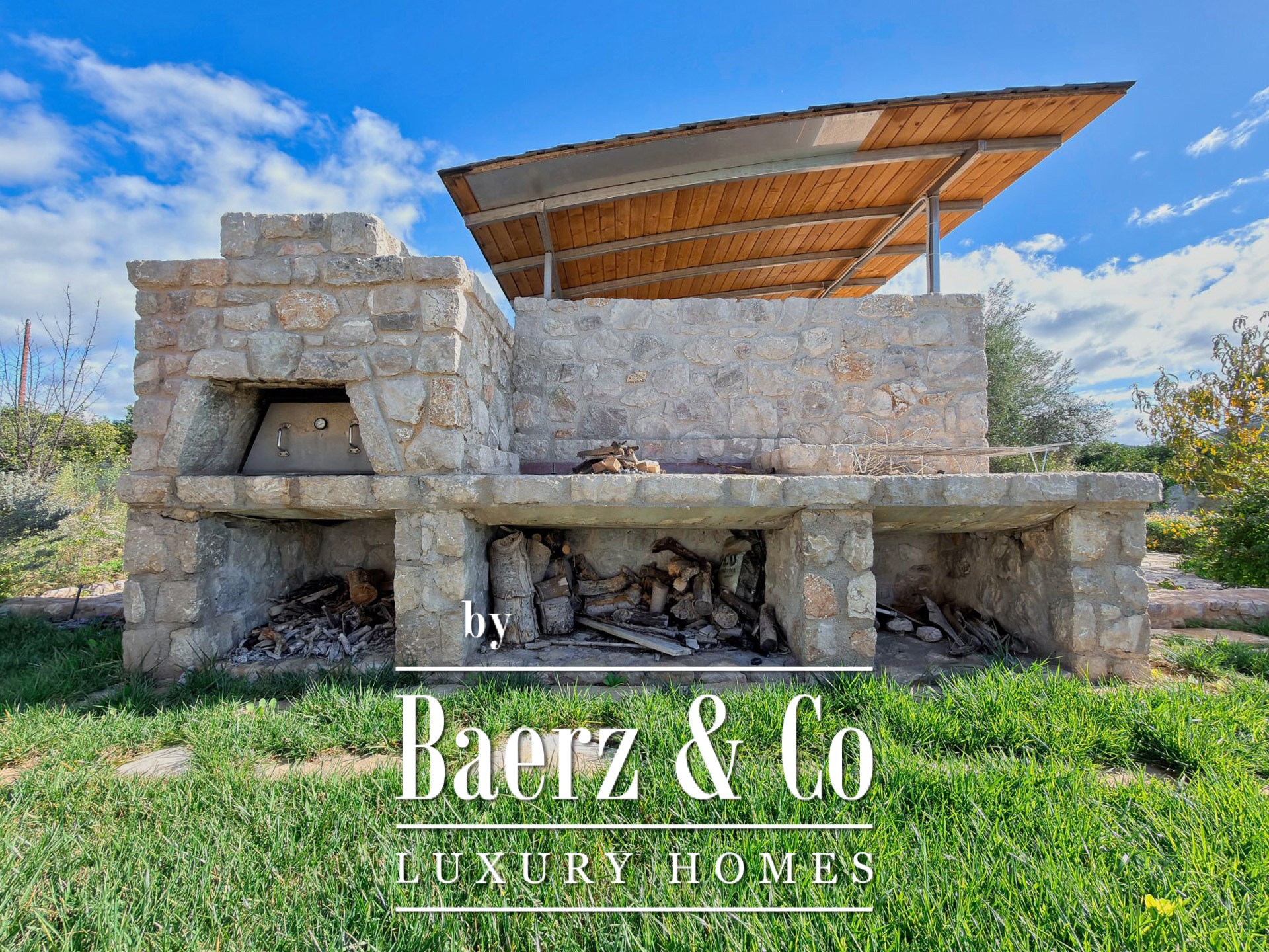 The carefully designed and exceptionally beautiful garden includes mature fruit trees and olive trees, a variety of flowers, a brasero, a BBQ area with a traditional wood-fired oven, and a fully equipped outdoor bathroom.