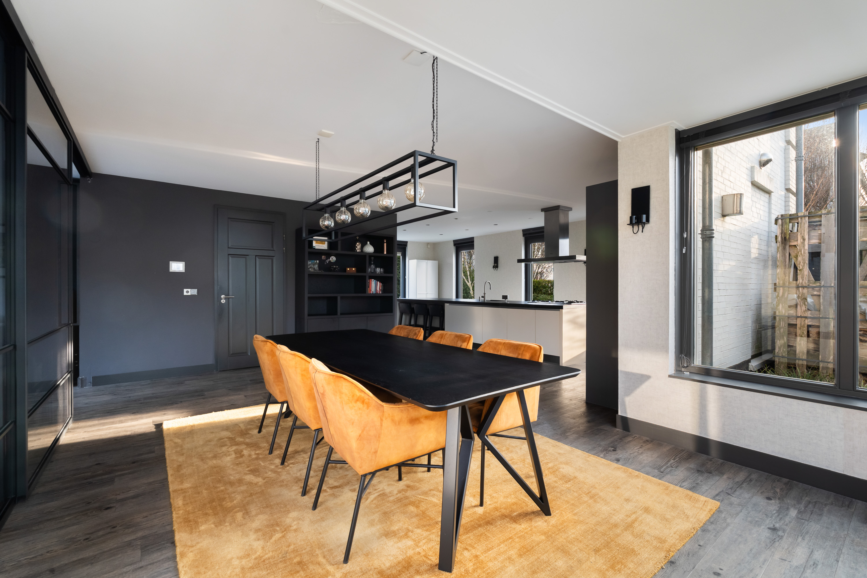 The generous driveway leads you to the entrance of this detached villa. Upon entering the hall, you immediately experience the sense of space, natural light and high-quality finish that characterise the property. The staircase to the first floor is also located here. From the hall, you have access to the various living areas on the ground floor.