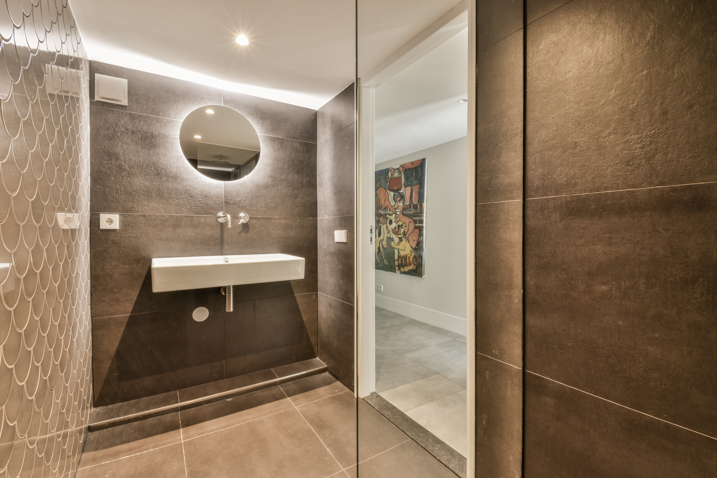 The basement level offers a surprisingly spacious living area with multiple possible uses. Here you will find a large living/lounge area currently used as a play and TV room, perfect for families or relaxation. Adjacent to this is a spacious studio with its own bathroom, ideal as a guest suite, au pair accommodation, or a private office. The basement also includes a separate laundry room, a storage area, and a cozy home office corner connected to the play/living area. A floor that provides flexibility and comfort.