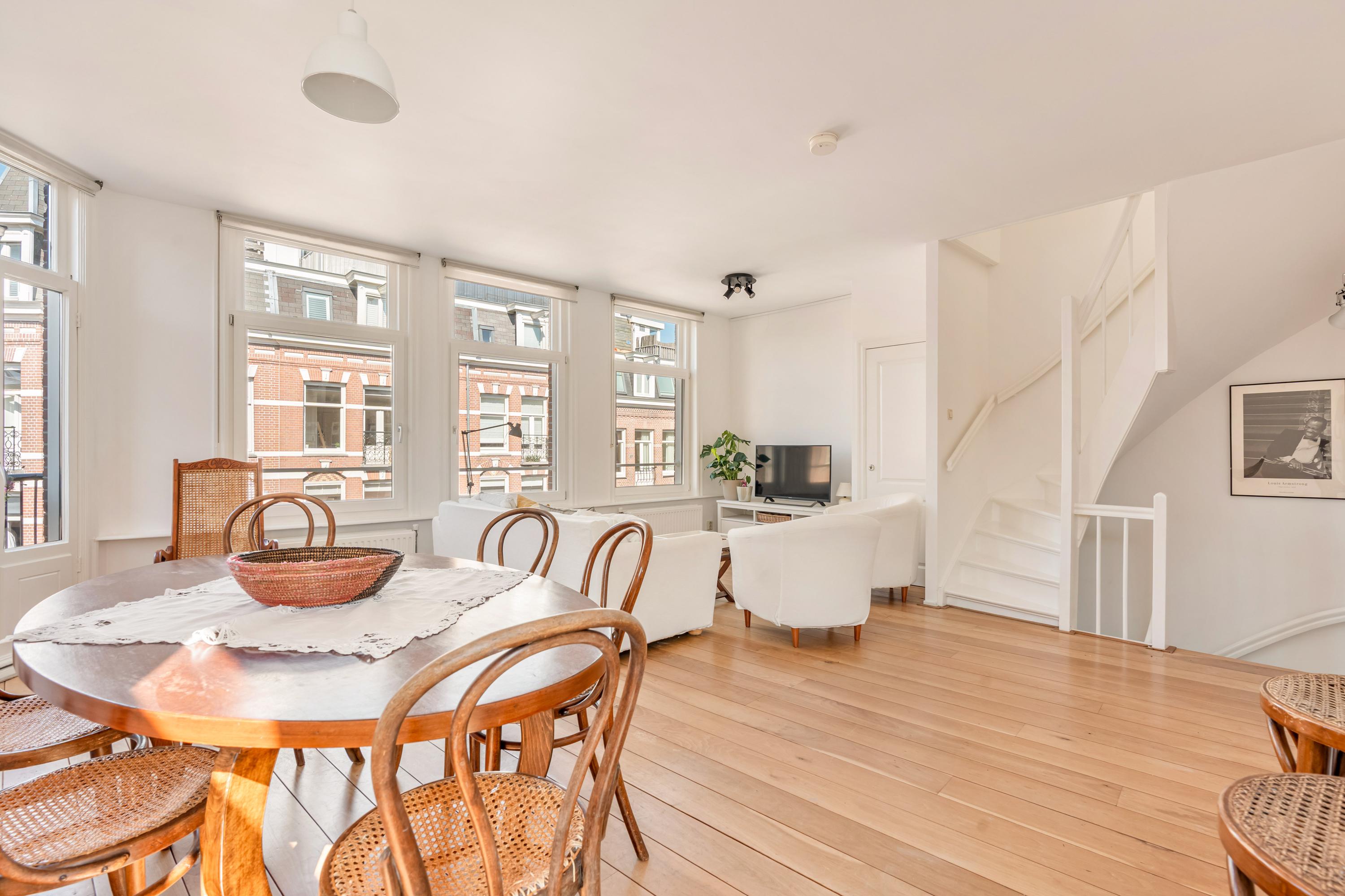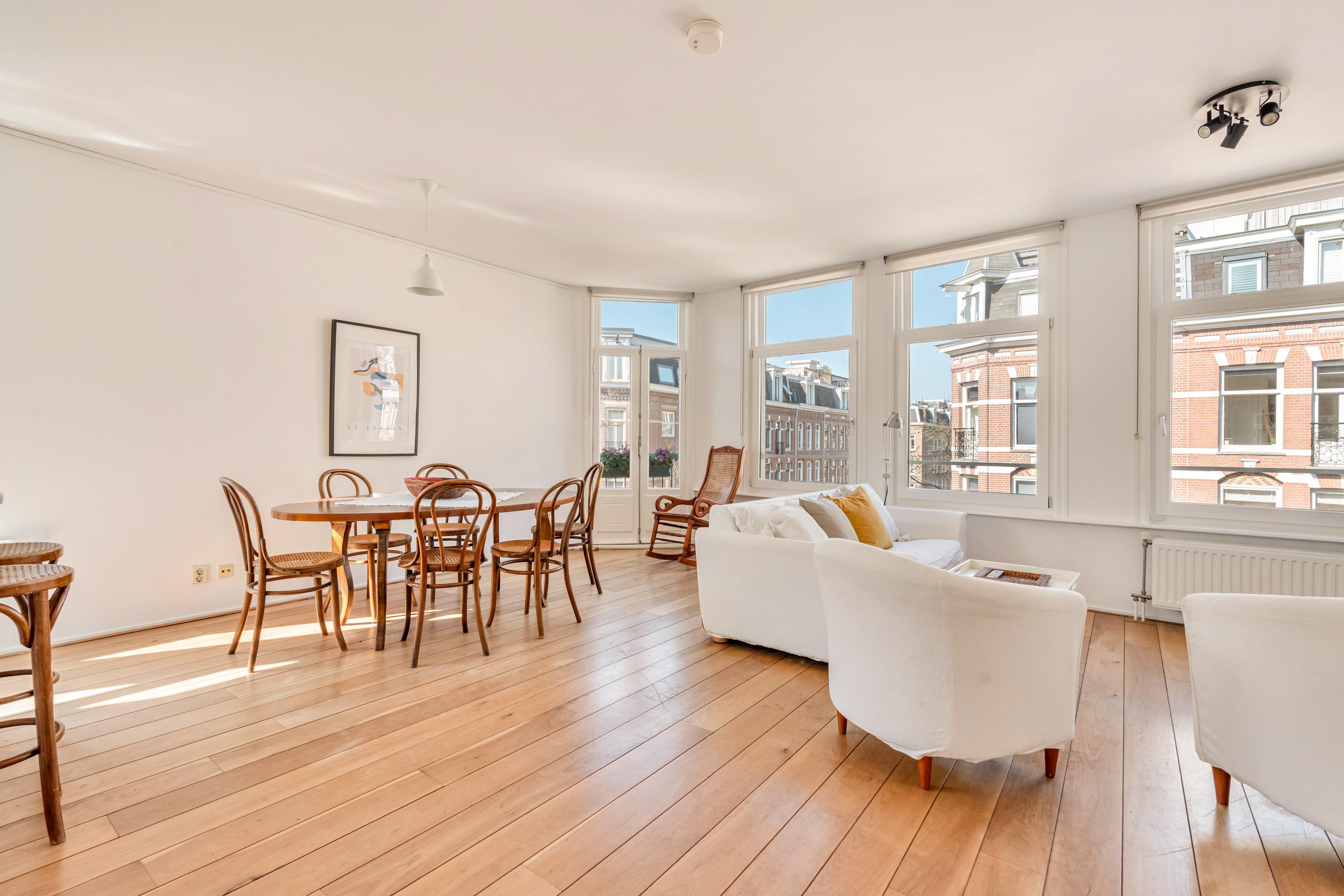 Situated in the highly sought-after Amsterdam Oud-Zuid, we are pleased to offer this charming and well-laid-out corner apartment of approximately 89 m². The apartment is located on the third and fourth floor and features a bright and inviting living room with a modern open-plan kitchen, a French balcony, two spacious bedrooms, and a bathroom with a bathtub, as well as a generous rooftop terrace of approximately 12 m². The property is situated on freehold land (no ground lease). With a wide range of shops, restaurants, and cafés within walking distance, you will find yourself in one of Amsterdam’s most vibrant and desirable neighborhoods.