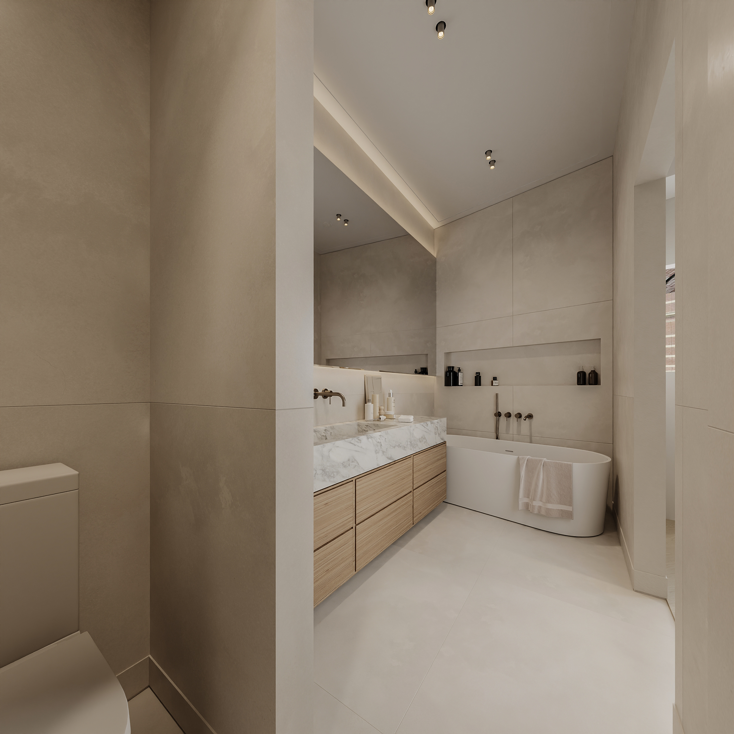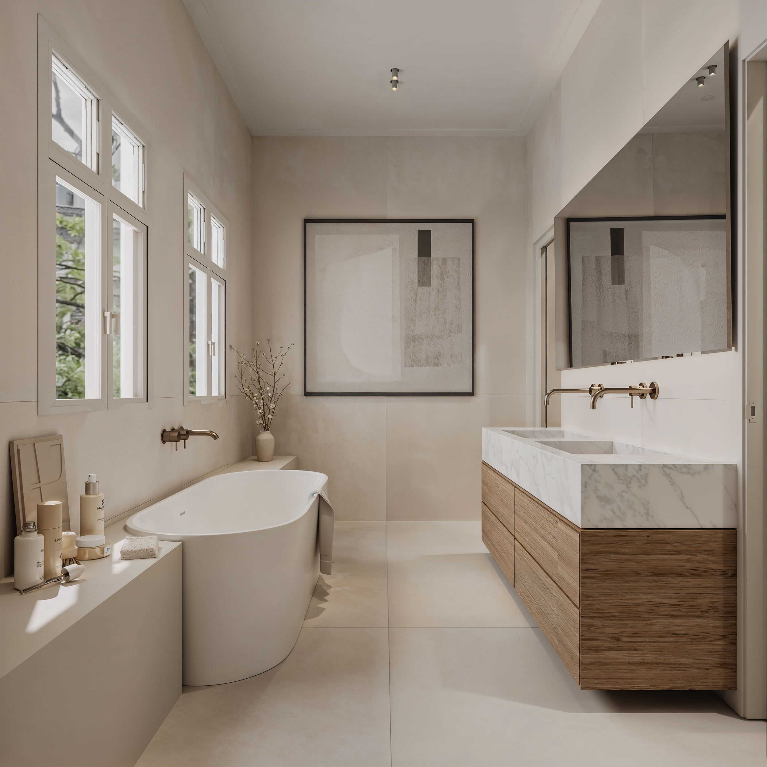 Please note: the photos shown are artist impressions (renders) and are intended to provide an impression of the atmosphere and possibilities of the home. The apartment will of course be delivered fully and high-end finished, including kitchen, bathrooms, and all fixed fittings.