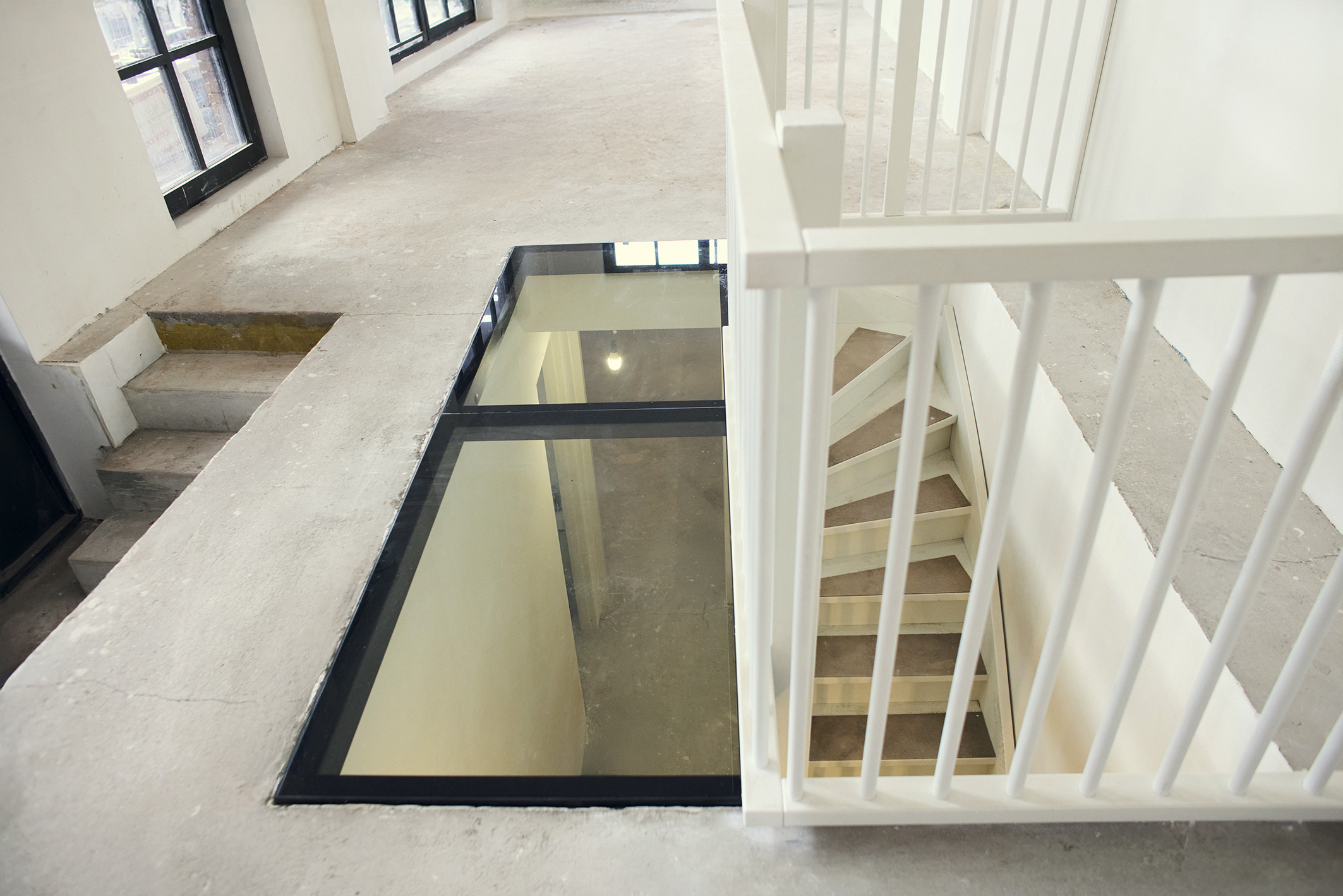 The elevated ground floor features an impressive ceiling height of nearly 2.90 metres. Large windows and wide folding doors on the canal side bring in abundant light and create a seamless connection between indoors and out. A fold-down bench will be installed on the exterior wall – a smart way to enjoy the view and the sun even without a traditional outdoor space. This floor is ideal for a spacious living room and a generous open-plan kitchen.