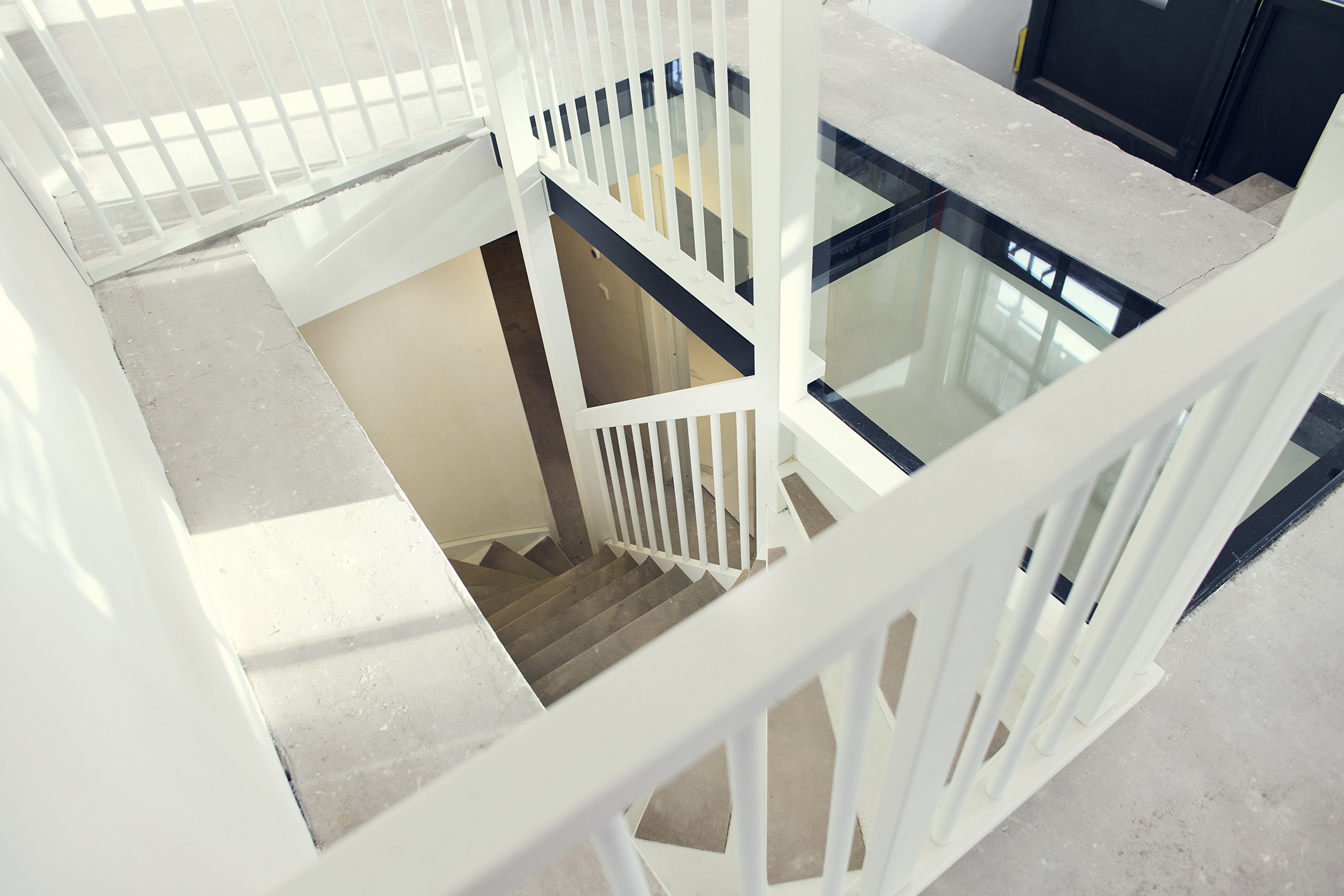 The building consists of five floors and will be divided into a generous ground-floor and upper-level apartment. This ground-floor residence has its own private entrance, an impressive main level and a fully functional basement – together offering approximately 100 m² of living space. With its waterside location and large windows, the apartment is filled with natural light and offers a unique living experience.