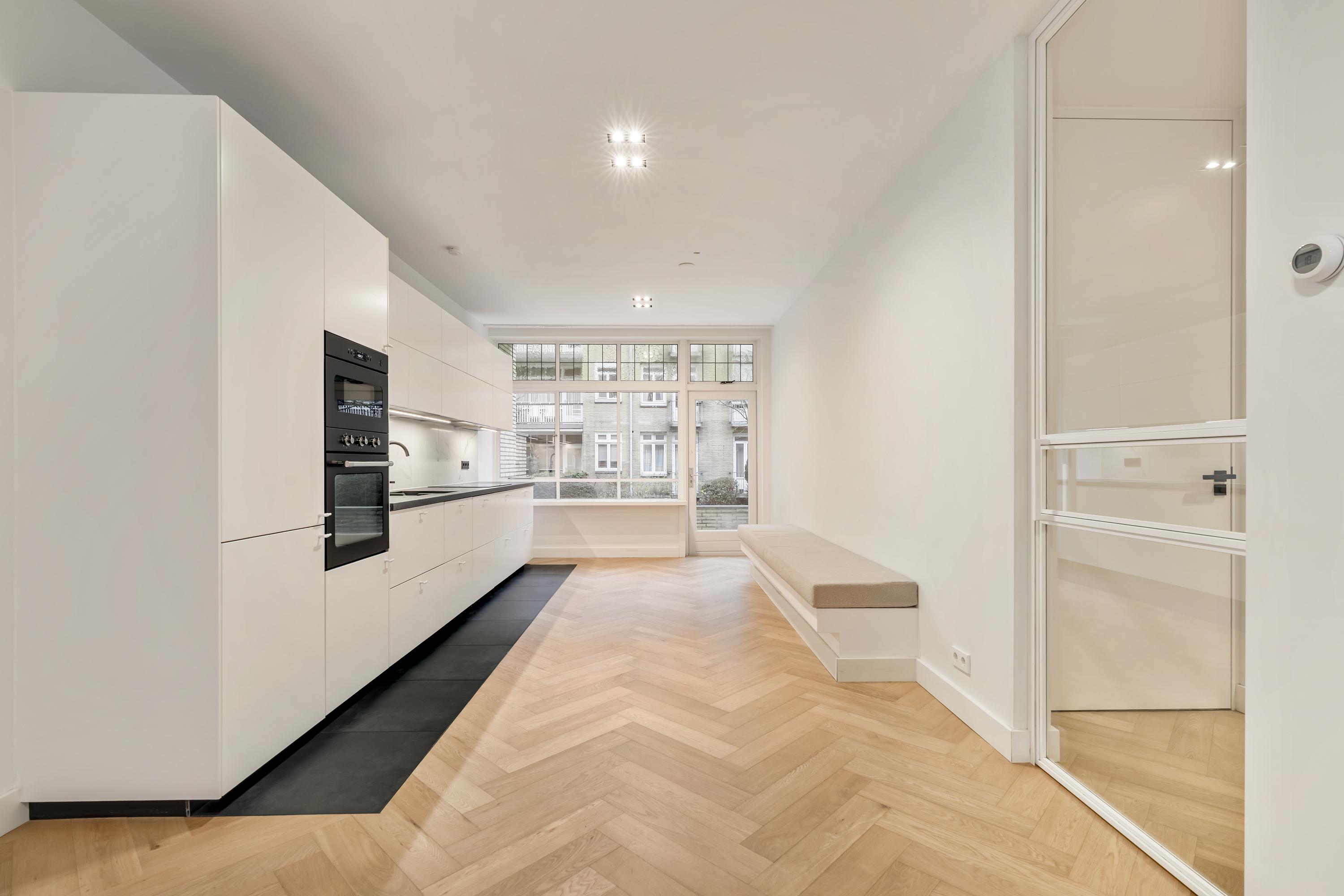 In a beautiful and highly sought-after location in Amsterdam-Zuid, we present this exceptionally bright and excellently maintained ground-floor residence of approx. 113 m². The property features a spacious living area, a lovely terrace at the rear, two comfortable bedrooms, and a separate storage room. Situated in a representative apartment complex with camera security, this apartment offers the perfect combination of comfort, safety, and a prime location.