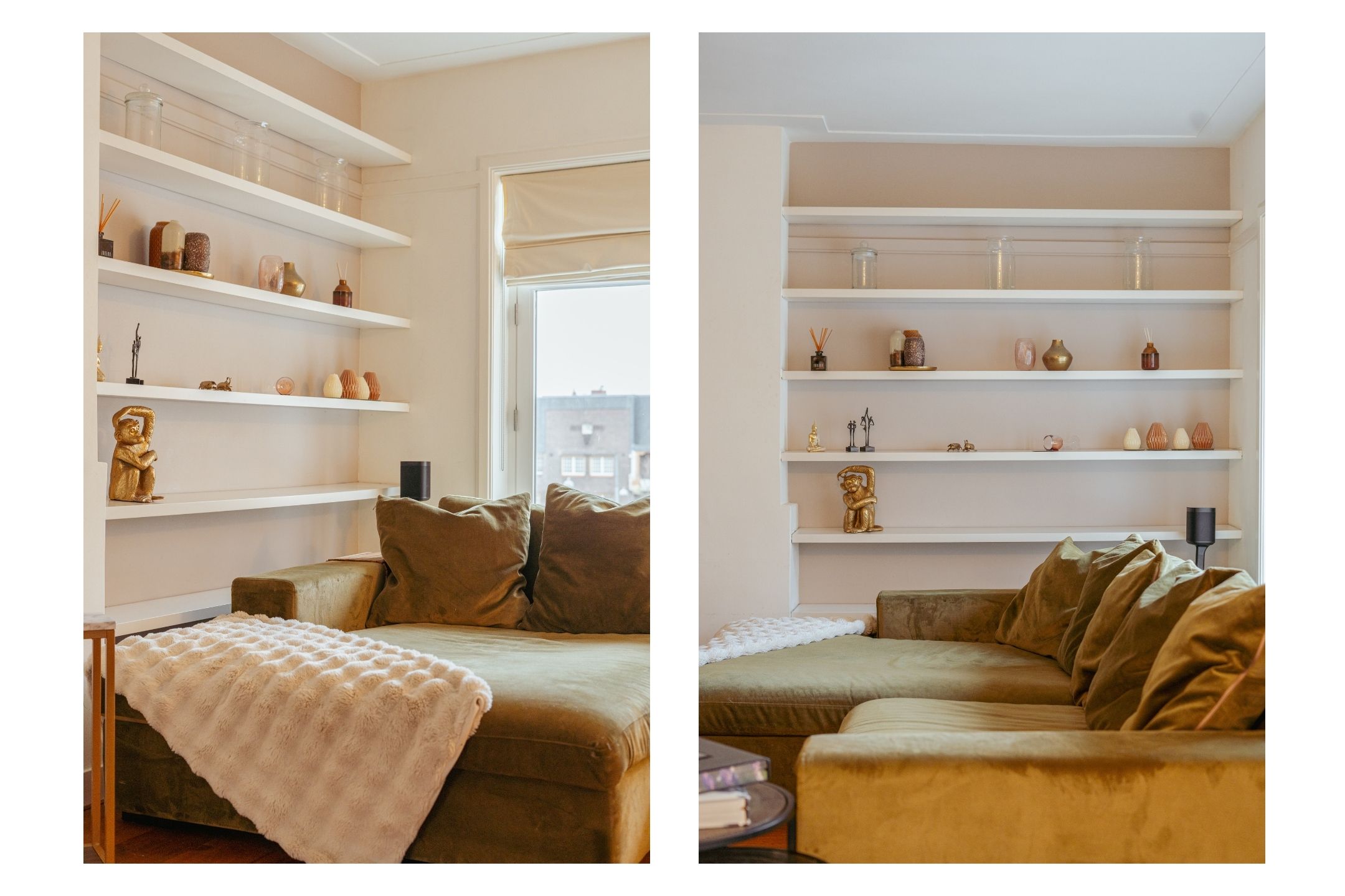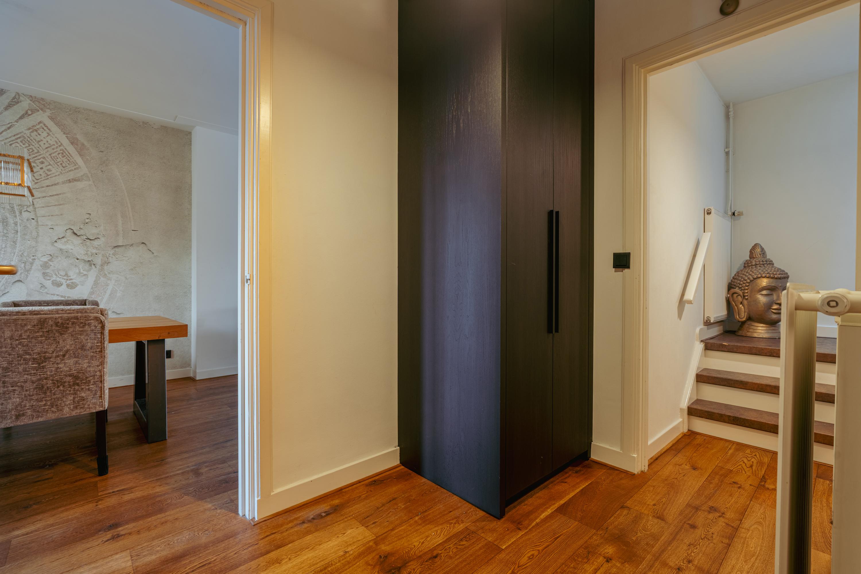 The spacious living area forms the heart of the apartment: an impressive L-shaped living room extending from the front to the rear of the property. Large windows at the front provide beautiful natural light. French doors open onto a charming balcony with open views over the lively Stadionplein. The generous layout offers various possibilities for furnishing and arrangement.