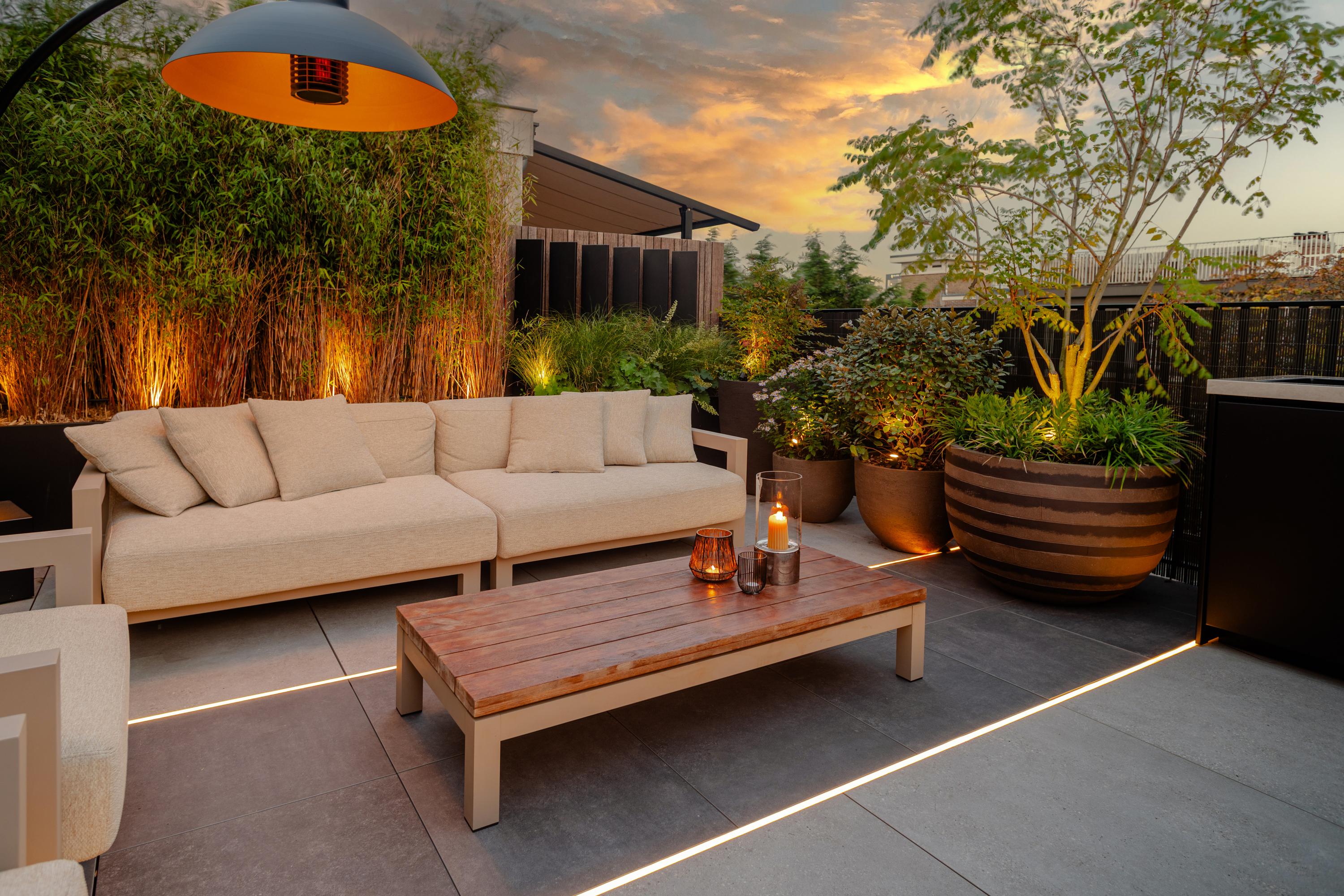 Designed by garden architect Erik van Gelder, the roof terrace is a rare and unique outdoor space in the city. Here, you can enjoy outdoor living in complete privacy. Equipped with an outdoor kitchen and a Green Egg barbecue, it is the ultimate setting for summer evenings spent enjoying drinks, dining and barbecuing with family and friends. The terrace also features an integrated irrigation system and elegant lighting.