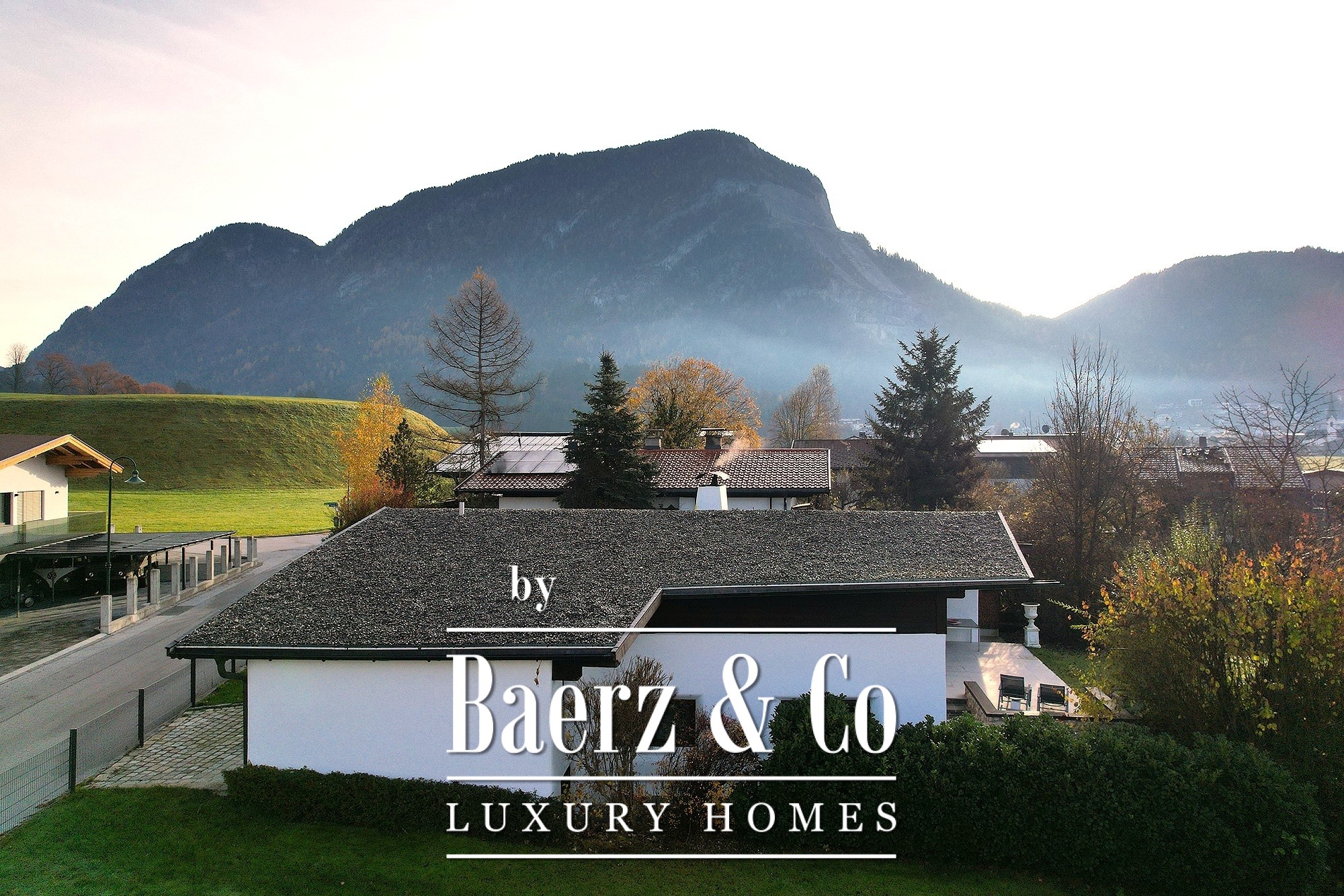 House Bad Häring stands as a refined example of classic Kranebitter architecture, set on a quiet 857 m² plot with an additional adjacent 434 m² building site. This house for sale in Bad Häring offers approximately 238 m² of total space, with 128 m² devoted to light-filled living areas and 73 m² as a generous basement, grouped with a 19 m² utility room and an 18 m² storage shed. The property lends itself equally well to extension or the potential for further development.