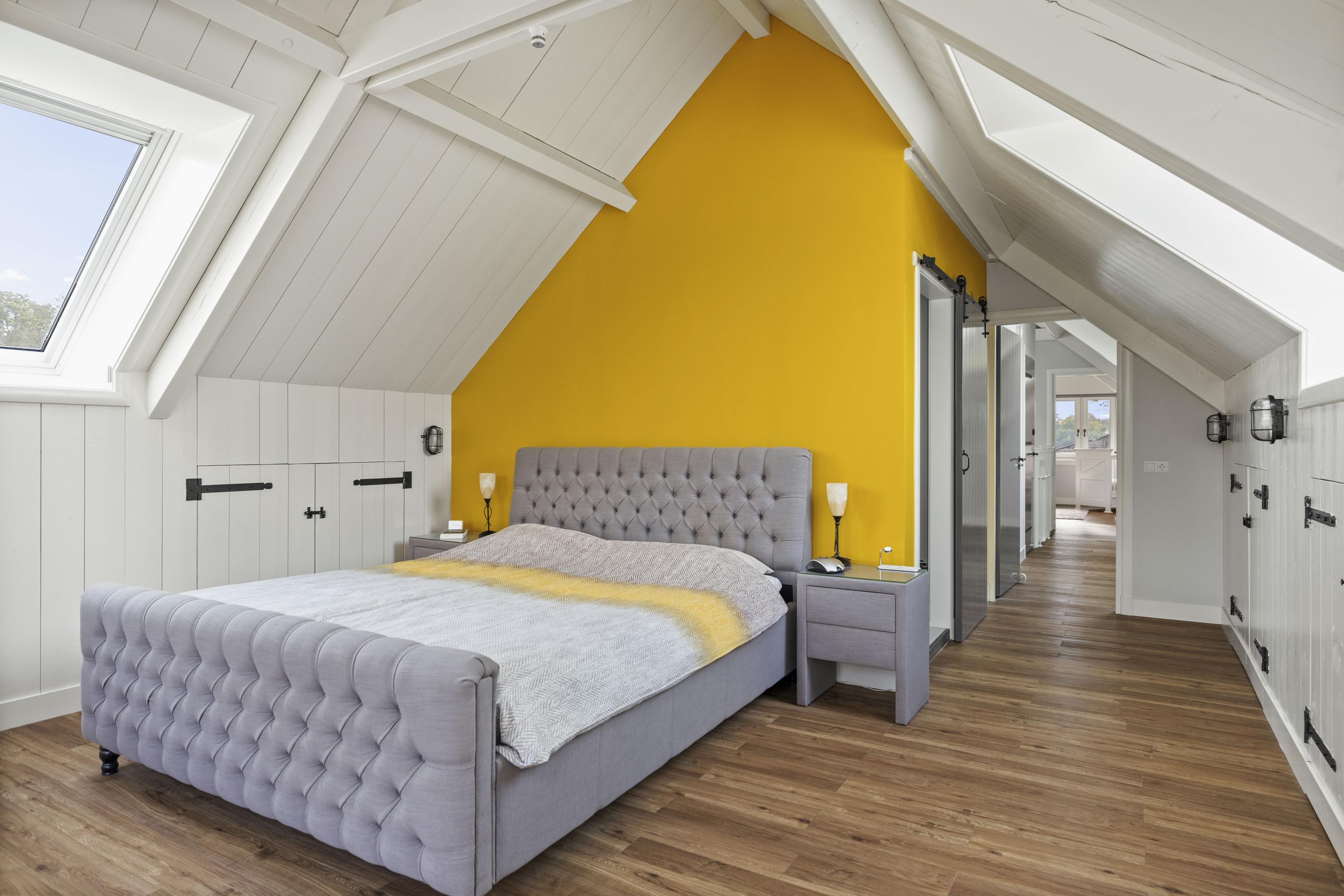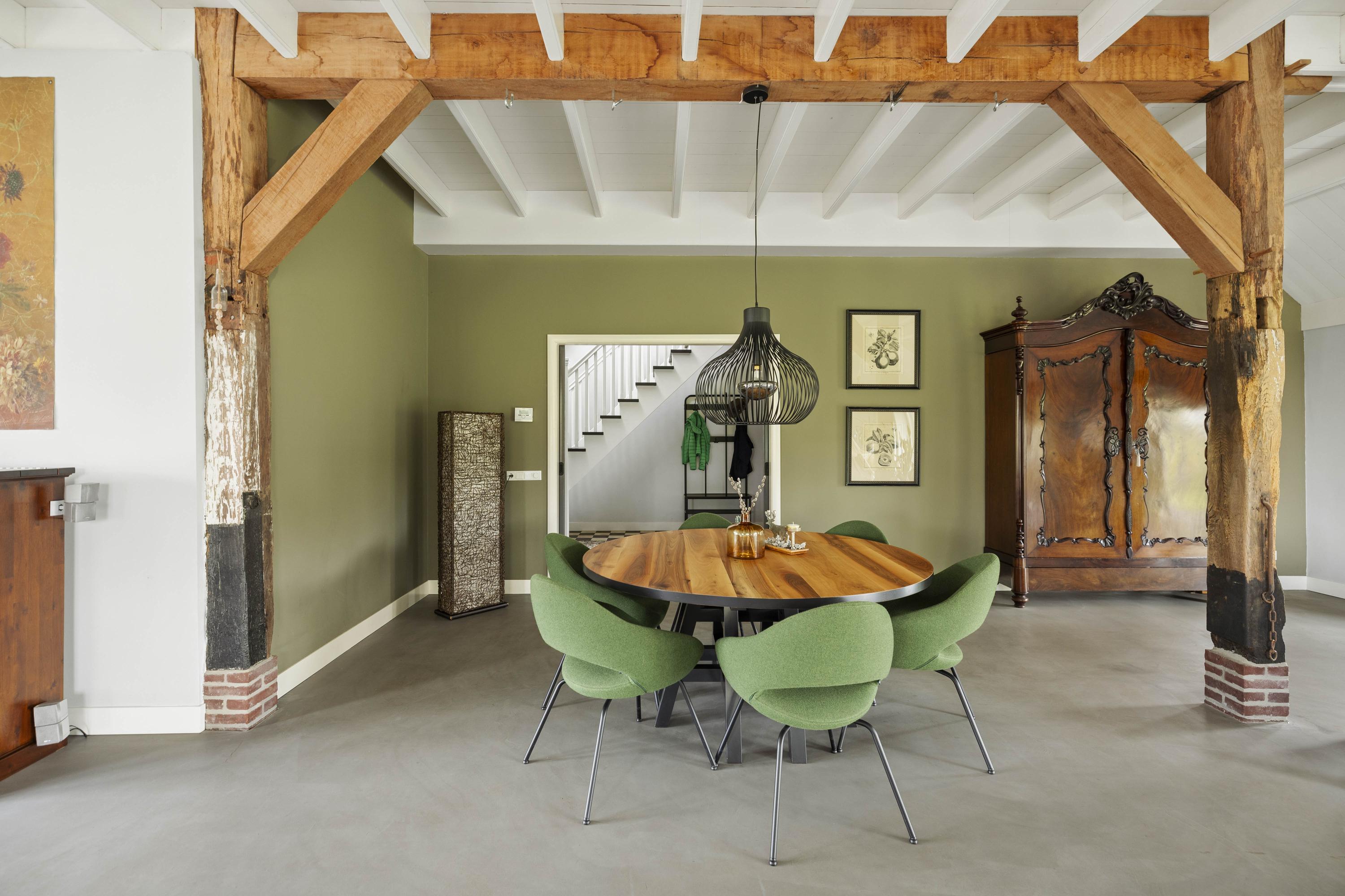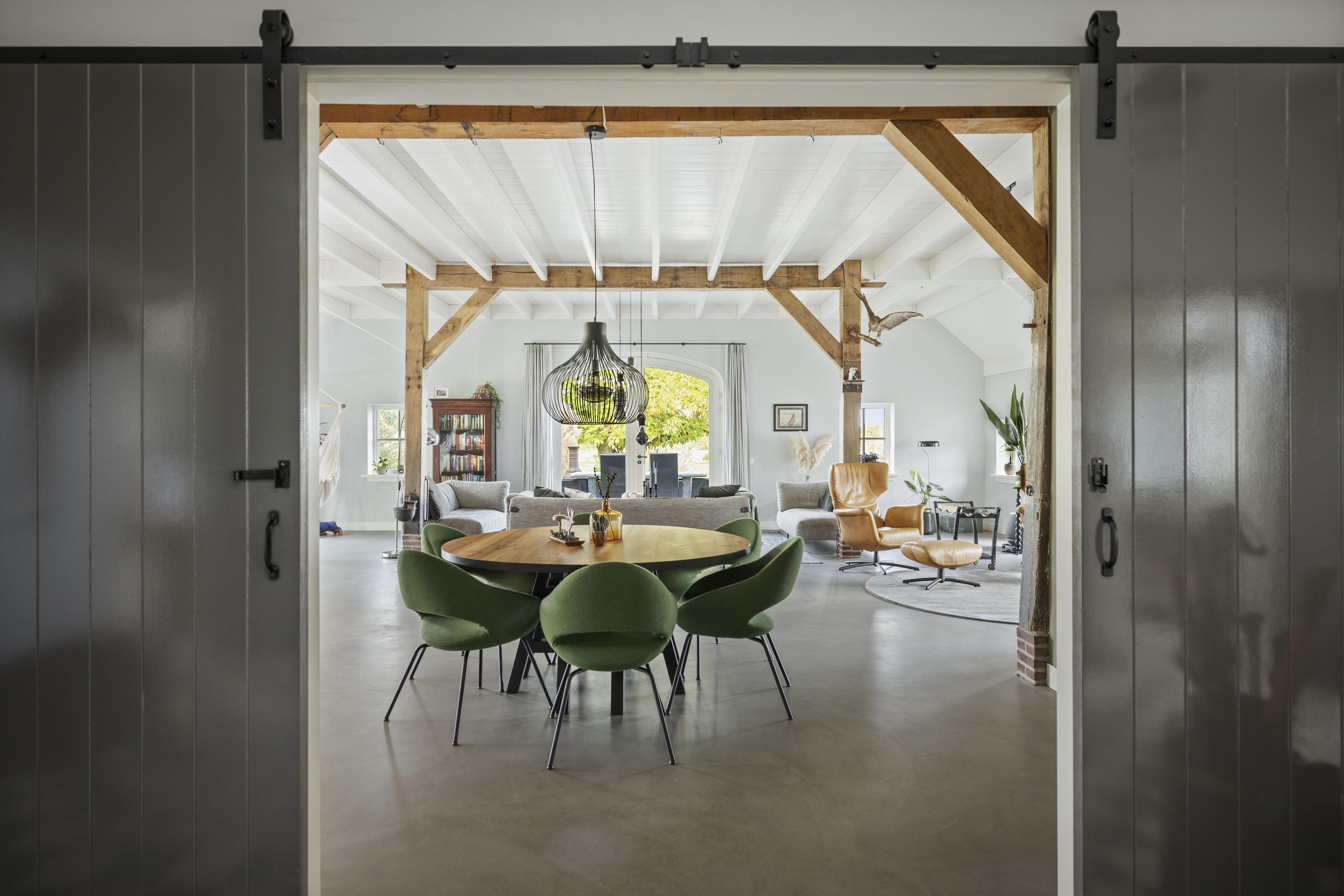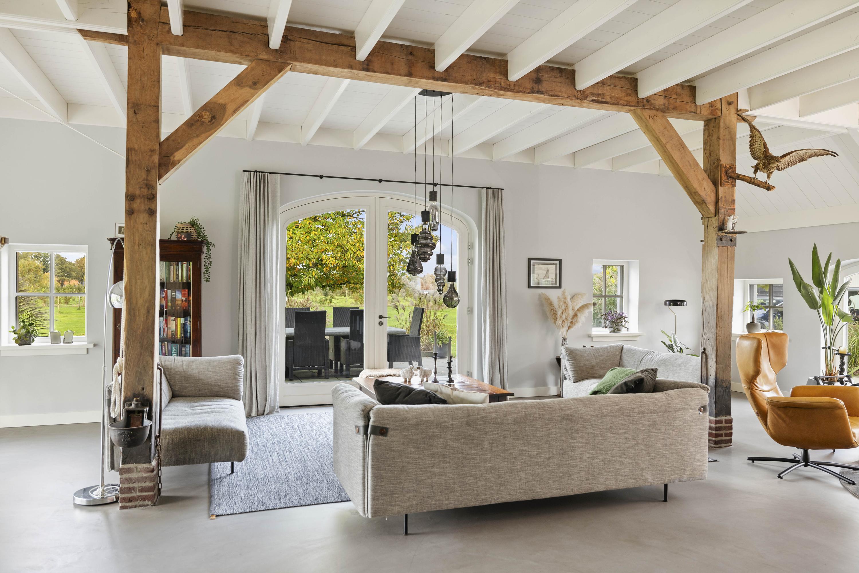 Deze magnifieke woonboerderij kreeg in 2016 haar huidige gestalte; toen werd de boerderij, die in 1924 gebouwd werd, van onder tot boven gerenoveerd. Hierbij lag de nadruk op verduurzaming; de buitenzijde werd volledig geïsoleerd met blokken styrofoam, rondom kreeg het huis nieuw HR+++-glas, er werd een water-water-warmtepomp aangelegd (die op 75 m diepte de warmte uitwisselt en ophaalt), de vloer binnen werd voorzien van een robuuste gietvloer – ideaal in combinatie met de vloerverwarming - en op de daken werden in totaal 110 (nee, dit is géén typfout) zonnepanelen gelegd. Onder de motorkap is dit huis één en al state-of-the-art technisch vernuft. Zelfs het kleurenpalet – de buitenzijde is wit gekeimd met grijs houtwerk en kraalrand – draagt bij aan het energiezuinige karakter van het huis, want waar de witte gevels het zonlicht reflecteren, absorbeert het grijs de warmte. Dit huis heeft niet alleen nul op de meter, het levert ook nog eens fiks terug! Een thuisbatterij is hier dus een prima aanvulling.