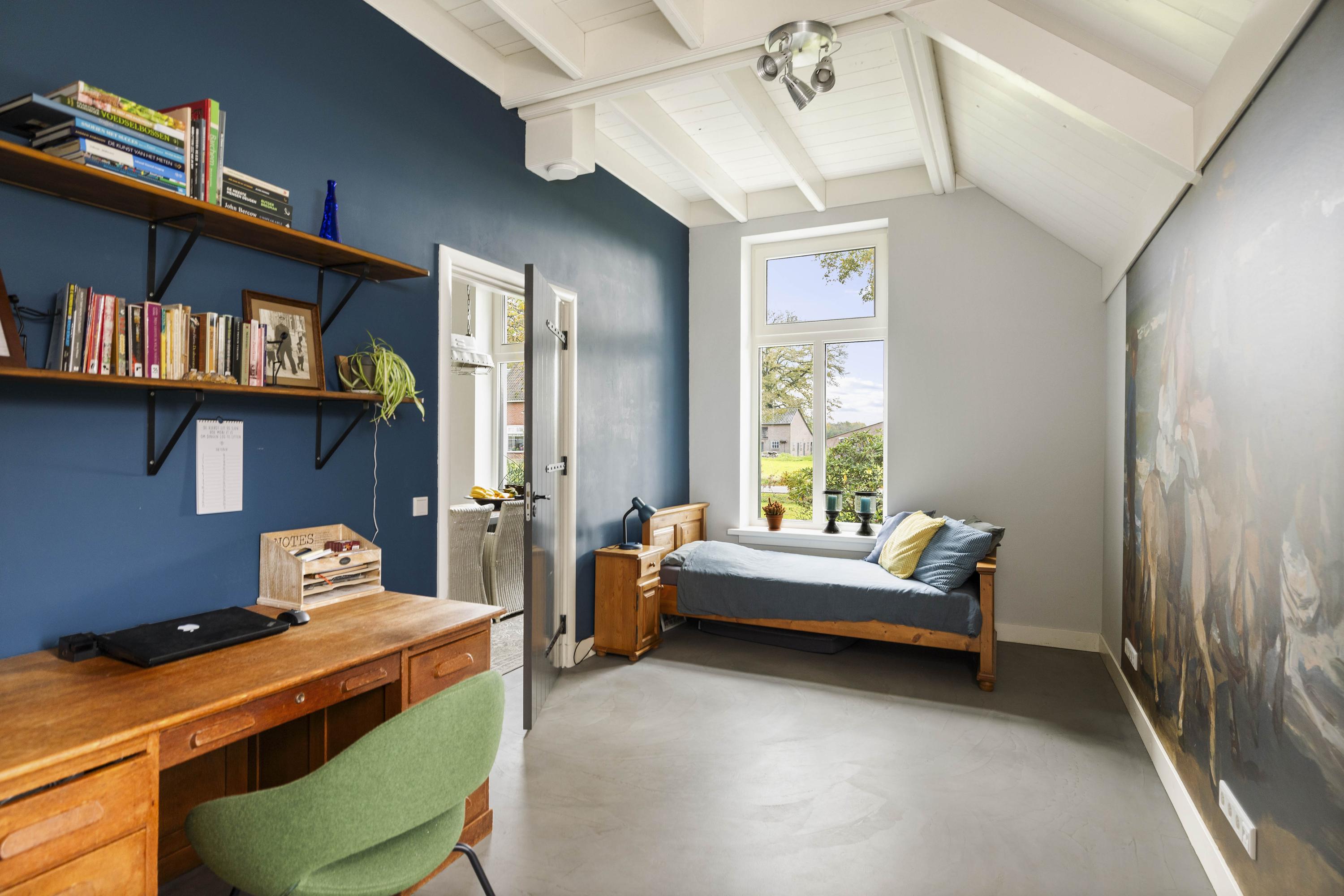 Misschien heeft u wel een eigen bedrijf, misschien met personeel, en is het uw wens om vanuit huis te werken. Dat kan! Er is een meer dan riant bijgebouw in een U-vorm gerealiseerd bestaande uit een kantoor- met presentatieruimte (ca. 84 m²), toilet, pantry met close-in boiler, een werkplaats (90 m²) waar u zo aan de slag kunt. Het geheel is net als het hoofdhuis voorzien van glasvezel met Cat6 ethernet leidingen.