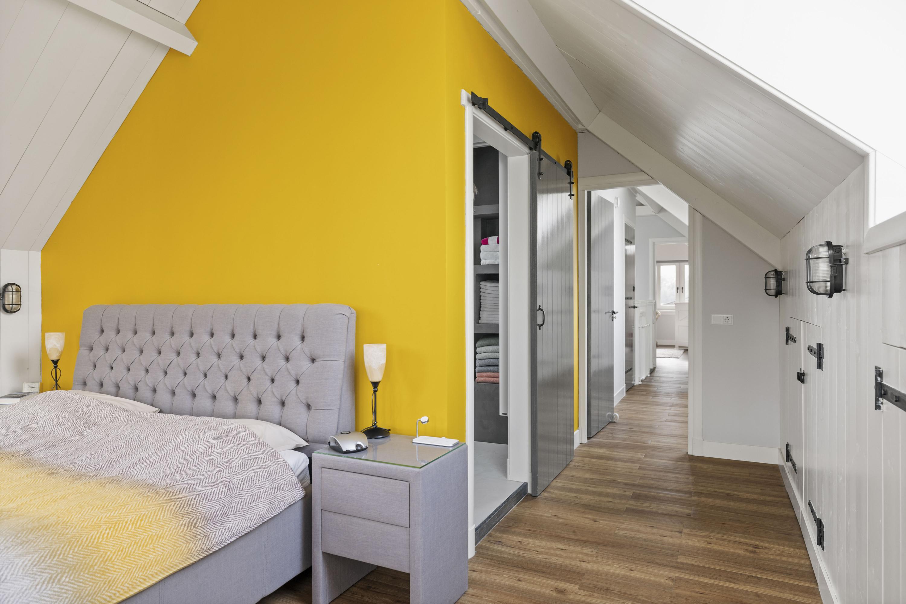 Boven een riante overloop met véél bergruimte en twee heerlijke slaapkamers, eveneens met veel bergruimte en elk een eigen badkamer. De wanden met beton Ciré geven de ruimtes een chique en eigentijdse uitstraling. De badkamers zijn beide voorzien van een riante inloopdouche, wc’s met Wisa non-touch spoelsysteem en wastafel (Grohe Sphinx).
