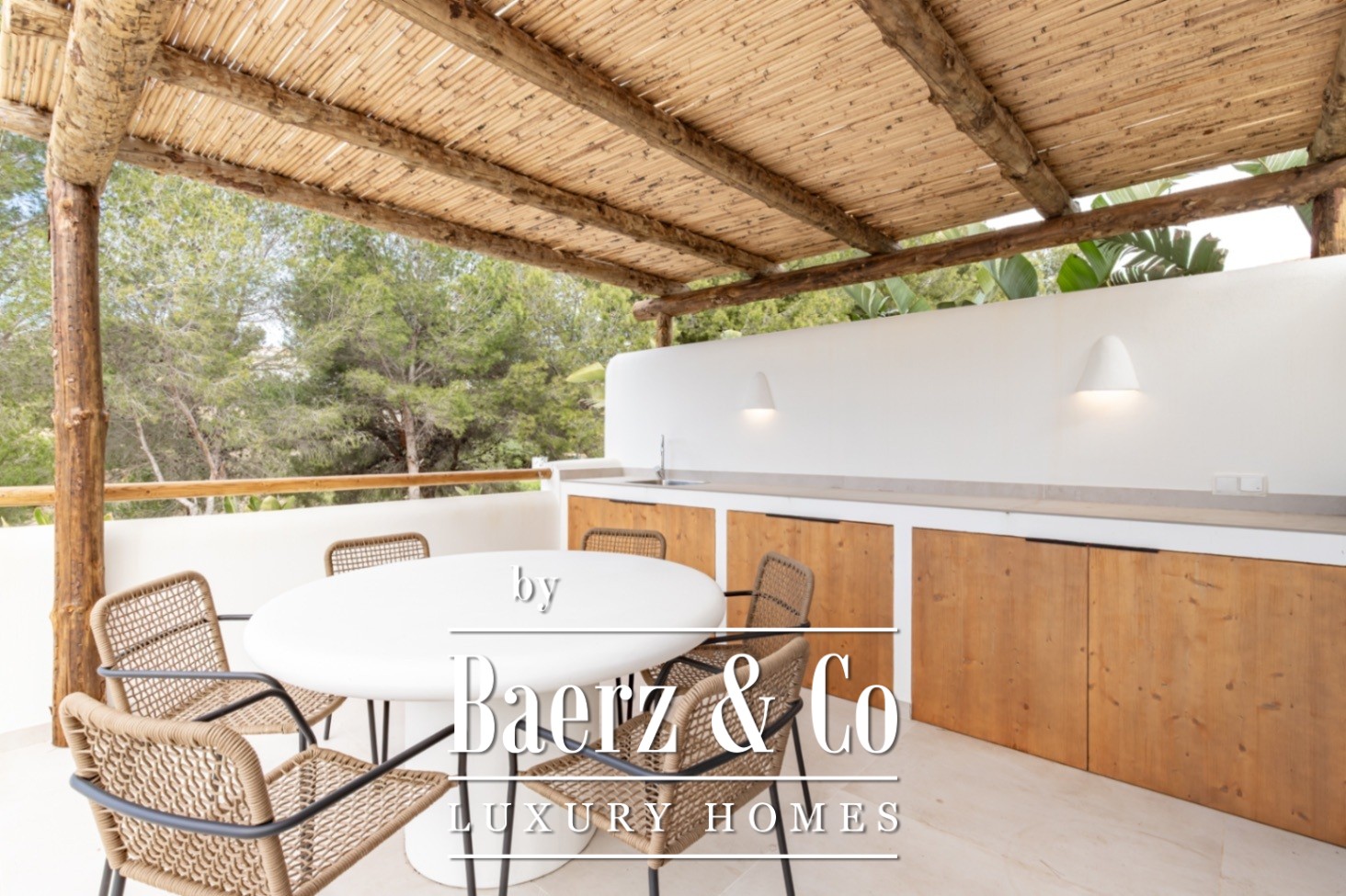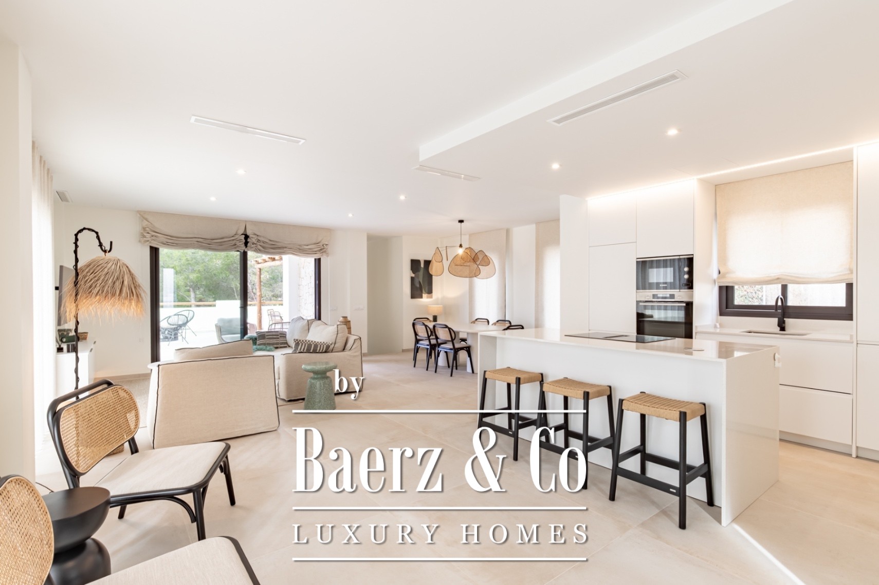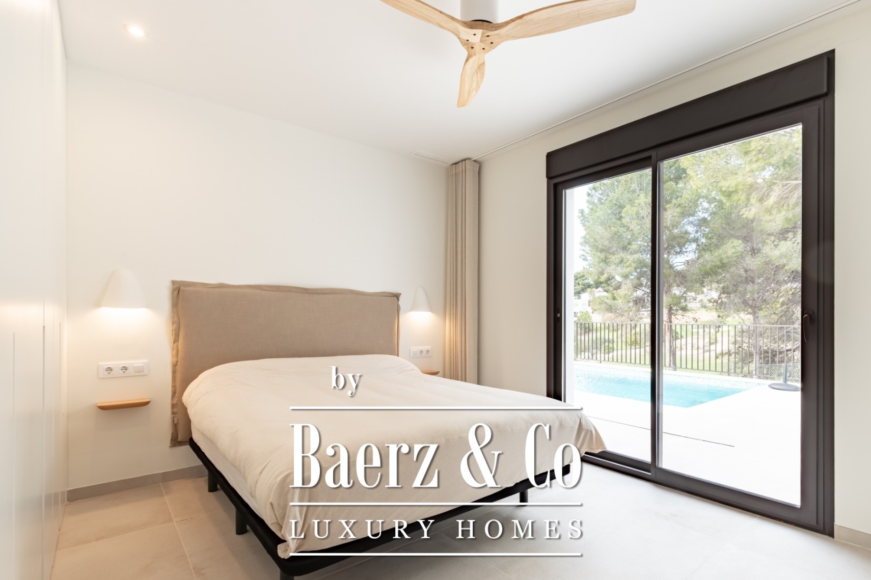 This detached villa Benissa San Jaime presents refined Mediterranean living in a privileged enclave overlooking Ifach Golf Club. The newly built residence, completed in 2025, showcases an Ibiza-inspired aesthetic, with natural stone and warm wooden elements lending a sense of timelessness to its presence on the Costa Blanca. Designed for both privacy and proximity, the villa offers tranquility within walking distance to essential amenities, such as the Pepe La Sal supermarket less than 1 kilometre away, and the sandy cove at Cala Baladrar just 2 kilometres from the doorstep.