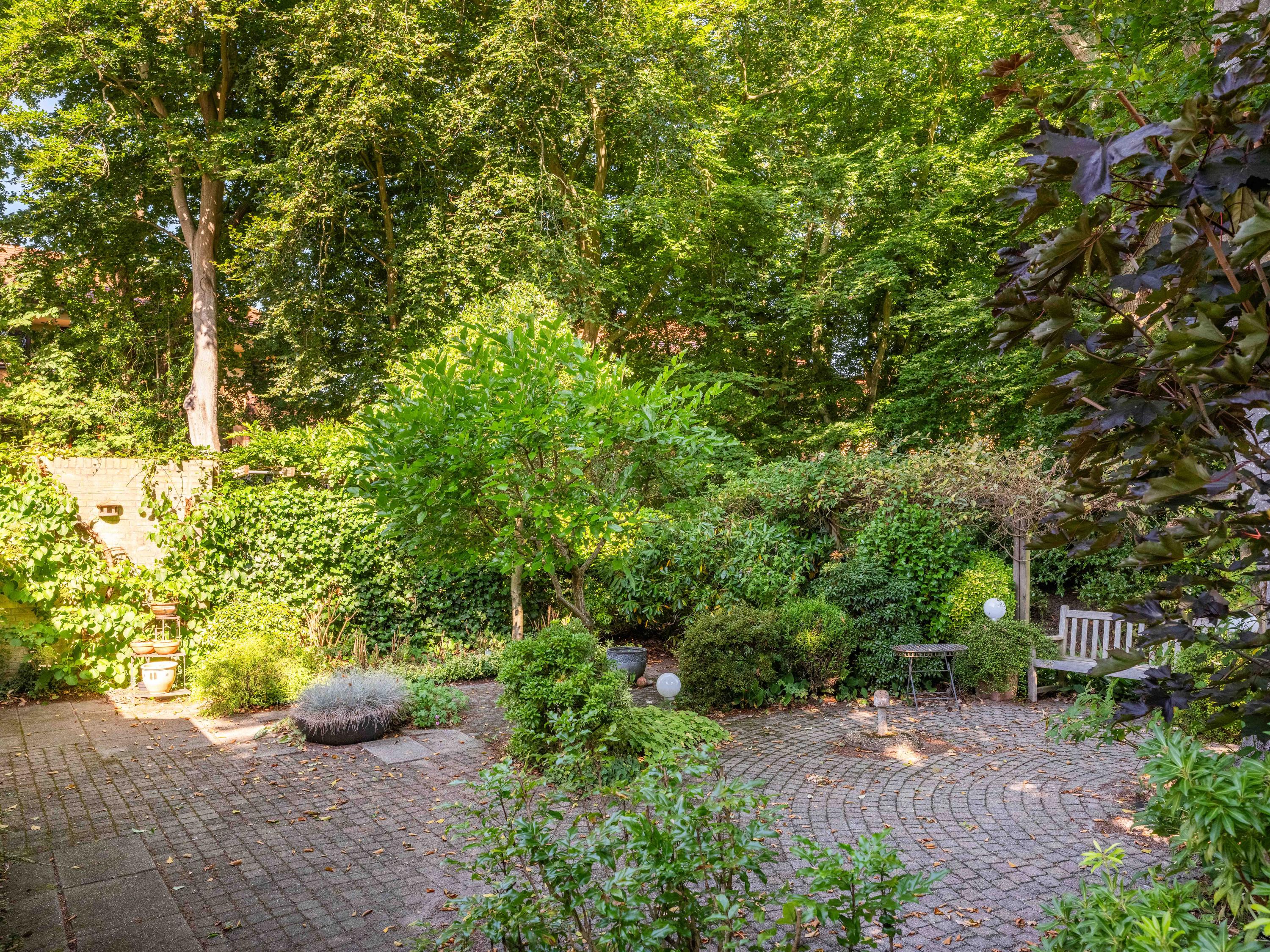 Through the large sliding doors, you step into the sunny, sheltered backyard, a wonderful place to enjoy peace and privacy, with a terrace and a view of the pond. The beautifully landscaped, sunny garden is an oasis of peace and privacy. The terrace borders the exclusive, communal park with ponds – a unique place where you can enjoy nature to the fullest. The park is exclusively accessible to local residents.