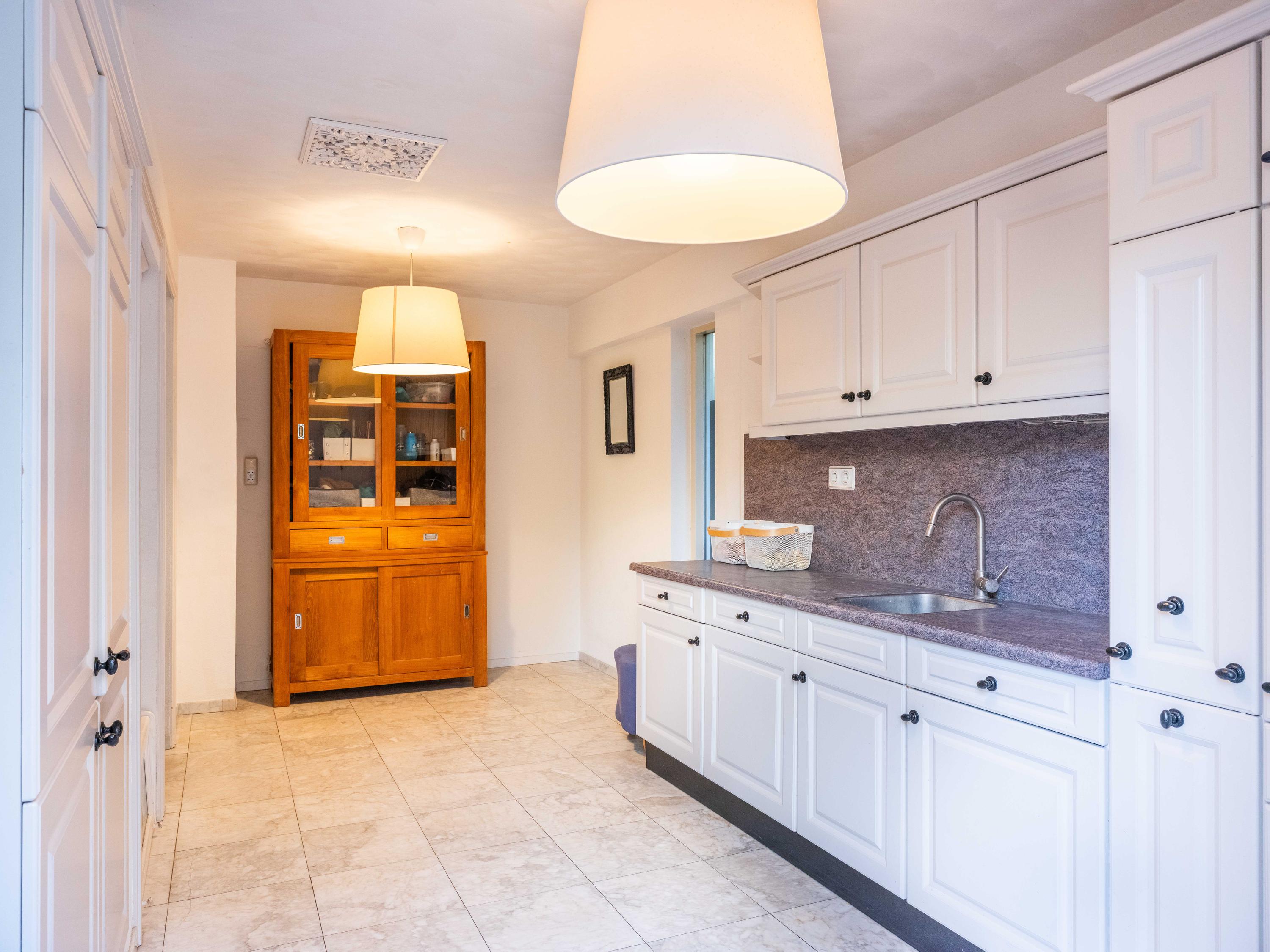 From the hall we enter the spacious kitchen, which is equipped with all kinds of appliances, such as a five-burner induction hob, quooker, steamer, two combi ovens etc. The cooking enthusiast can have a great time here.