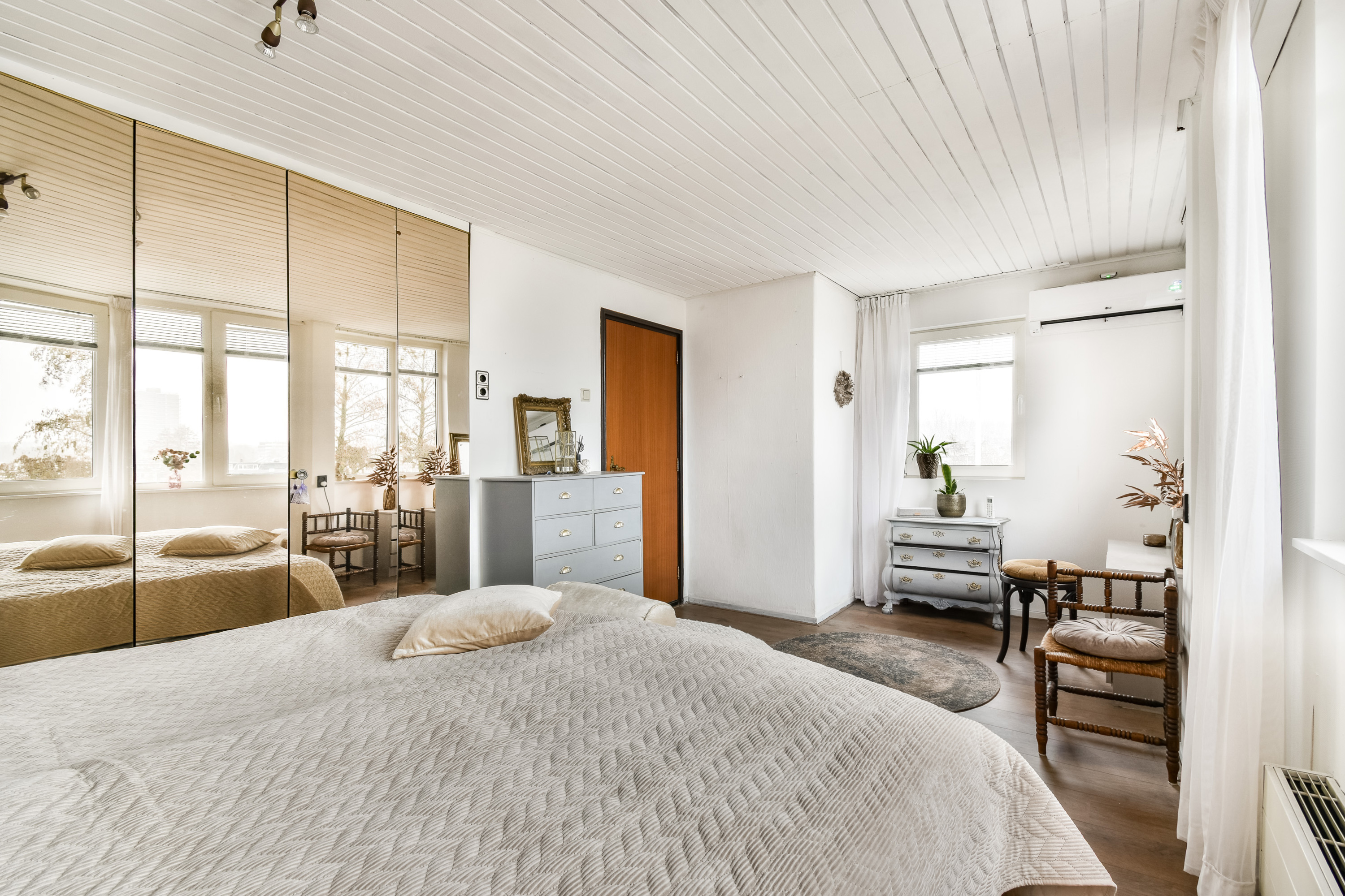 Bedroom 1, located at the front, features built-in wardrobes and air conditioning, with stunning views over the Rotte.