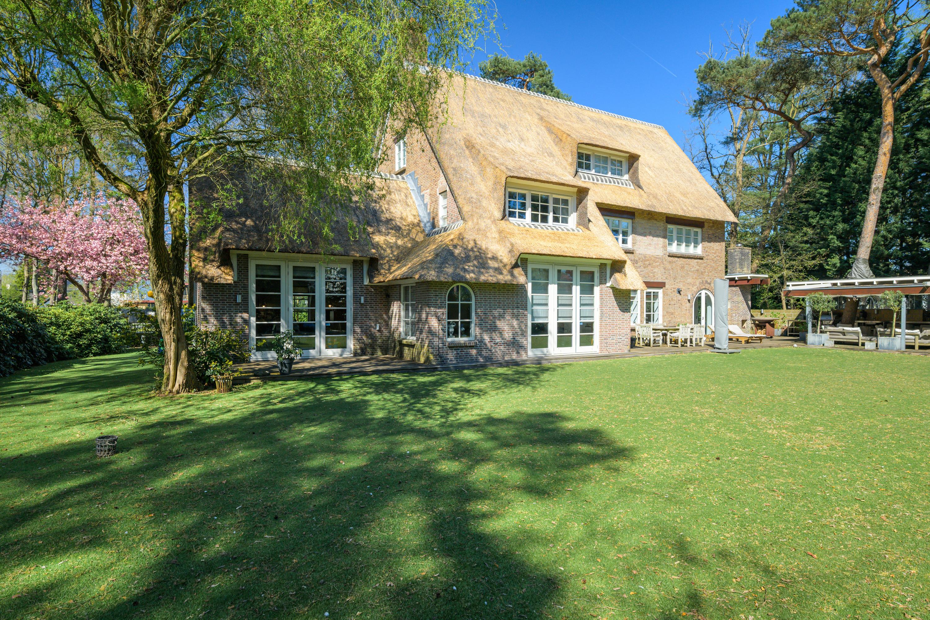 Very unique, perfectly maintained, thatched country house with, among other things, a luxurious wellness area with indoor swimming pool and fantastic outdoor space, situated at a prominent point in the middle of the popular and stately residential area "Ruitersbos" with its beautiful trees and within walking distance of the Mastbos.