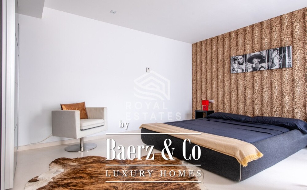 Architectural intent meets Mediterranean ease. Exterior staircases draw light to every level, while a rooftop terrace awaits above, inviting sunset rituals or quiet reflection. With private parking for two cars, fresh exteriors, and no intrusive neighbours, privacy is paramount. Residents benefit from a gated 17-home community, established in 2010, featuring a communal gym and attentive maintenance. Cala Carbo’s coveted location ensures immediate access to beaches, restaurants, and amenities, making this villa an exceptional anchor point for those seeking an exclusive home or a discreet retreat on Ibiza’s coastline. The long-tail variation luxury villa for sale in Cala Carbo characterises both provenance and pace of life here.