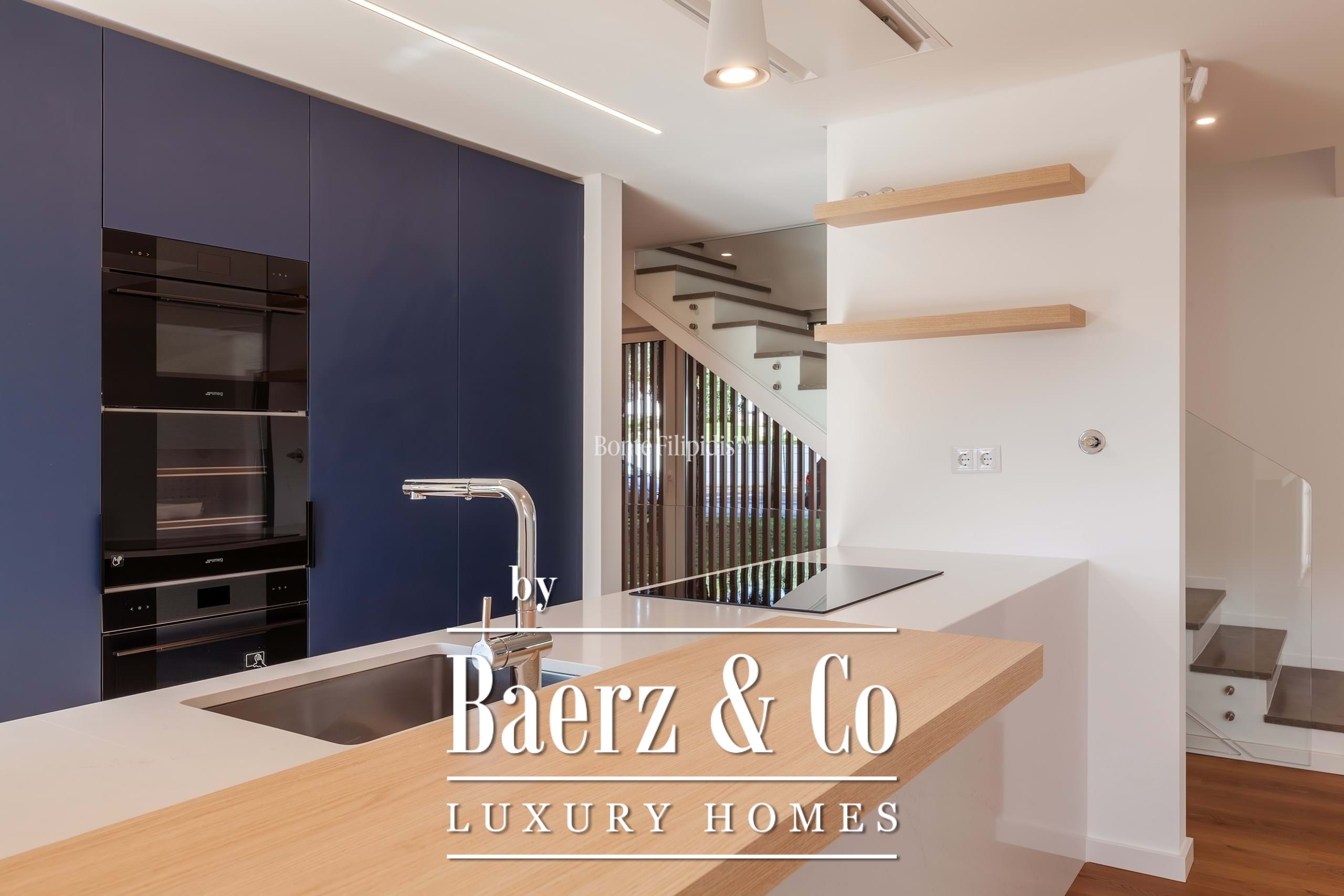 This townhouse Carcavelos e Parede draws on contemporary architecture to create a quietly distinguished living environment, spanning 217 m² across three well-considered floors. The open-plan kitchen, equipped with high-end appliances, connects seamlessly with the living room, inviting natural light while linking interiors to outdoor spaces and the landscaped terrace. An additional suite on the entrance level lends versatility and privacy, suitable for guests or adaptable living.