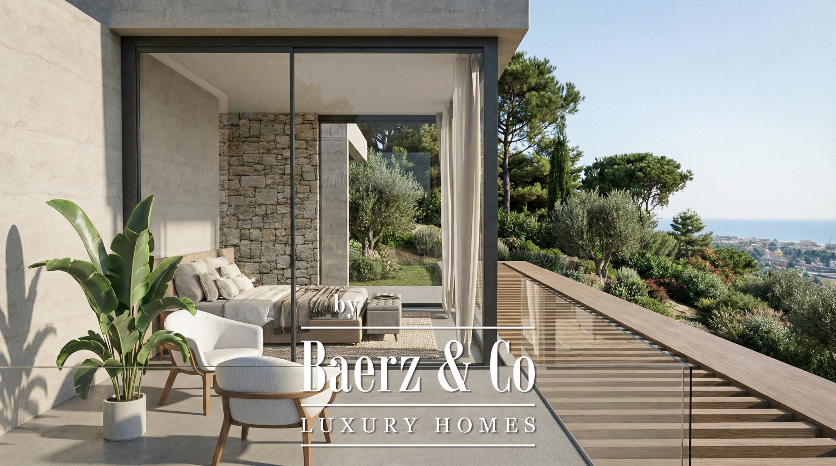 Five bedrooms and six bathrooms establish both spaciousness and privacy. On the main floor, social spaces are articulated to maximize light and outlook. An interior patio divides the living zones from two tranquil bedrooms. Upstairs, the master suite commands two private terraces with sea horizons, en-suite bath, and dressing room. The basement delivers flexibility with an additional bedroom, multipurpose space, and direct access to the garden and a private 32 m² pool, all situated on a generous 1,585 m² plot.
