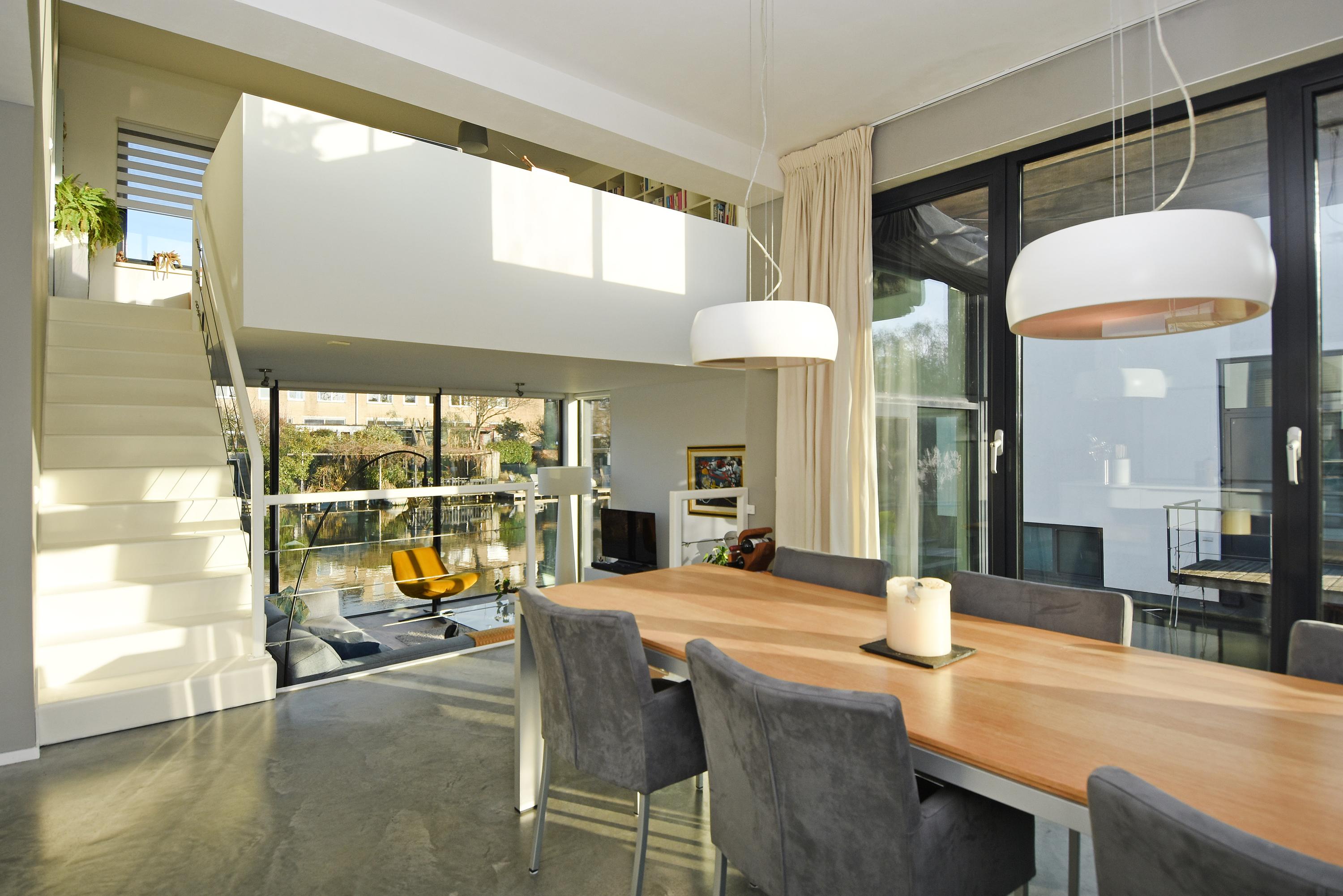 This charming, spacious and energy-efficient floating home is situated in a special location on the water, surrounded by peace and greenery. The property has a luxurious appearance, is well maintained and very practically laid out.