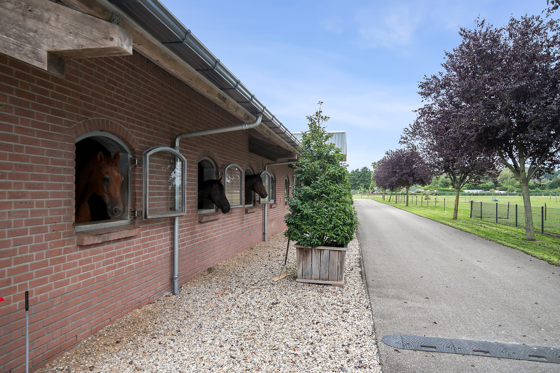 This beautiful, complete and well-maintained equestrian accommodation offers plenty of possibilities due to the presence of a beautiful luxuriously finished detached house, a total of 39 horse stables, a spacious indoor and outdoor arena (approx. 21x61 metres), a reception area, two flats which are perfect for groom's quarters, a covered horse walker and various meadows. All this is situated on a generous plot of no less than over 10 ha in an excellent, central location in the middle of the Netherlands.