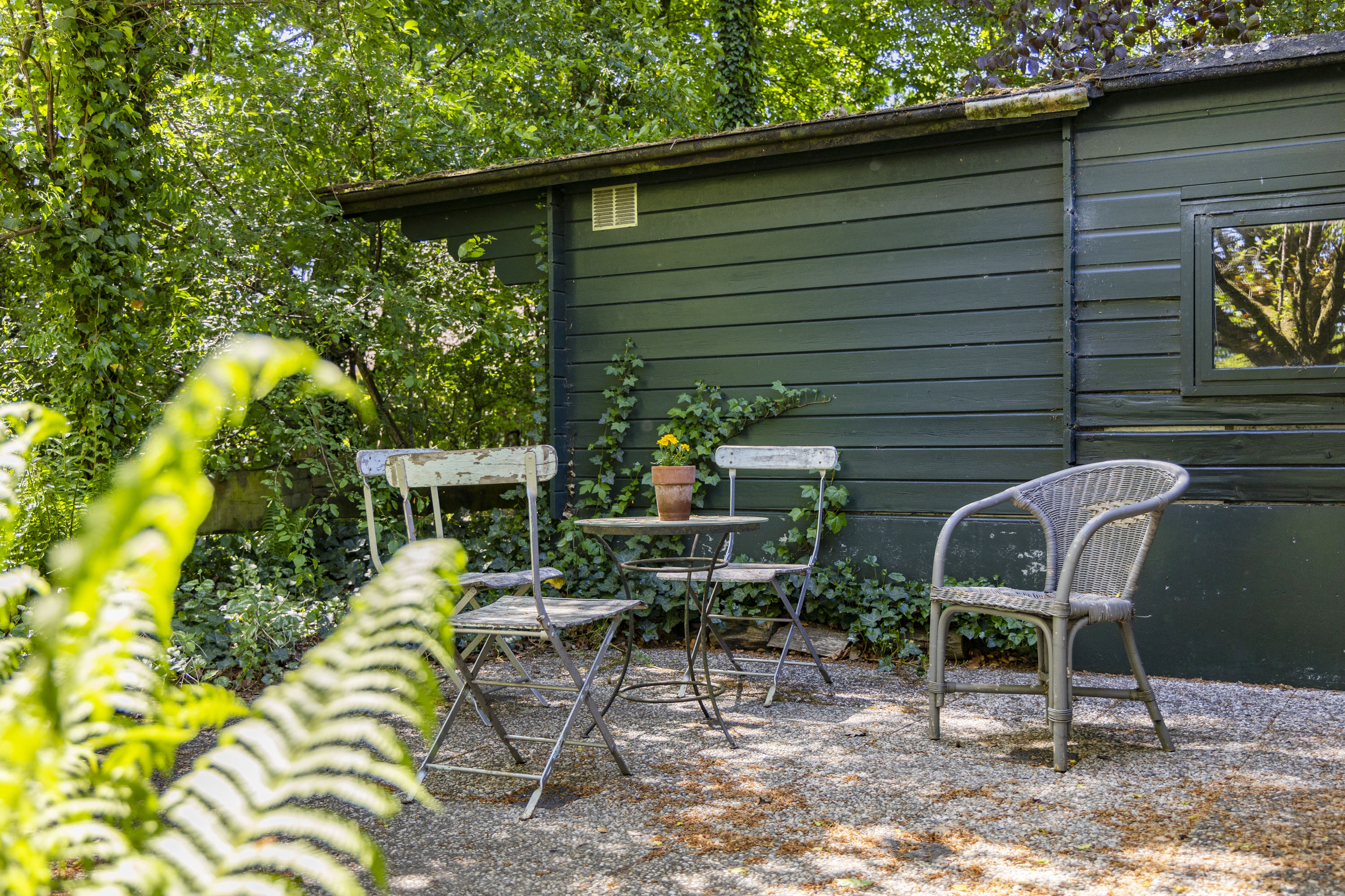 A short distance from the farmhouse, at the forest’s edge, a modest wooden summer house with a bitumen roof offers a potential guest accommodation.