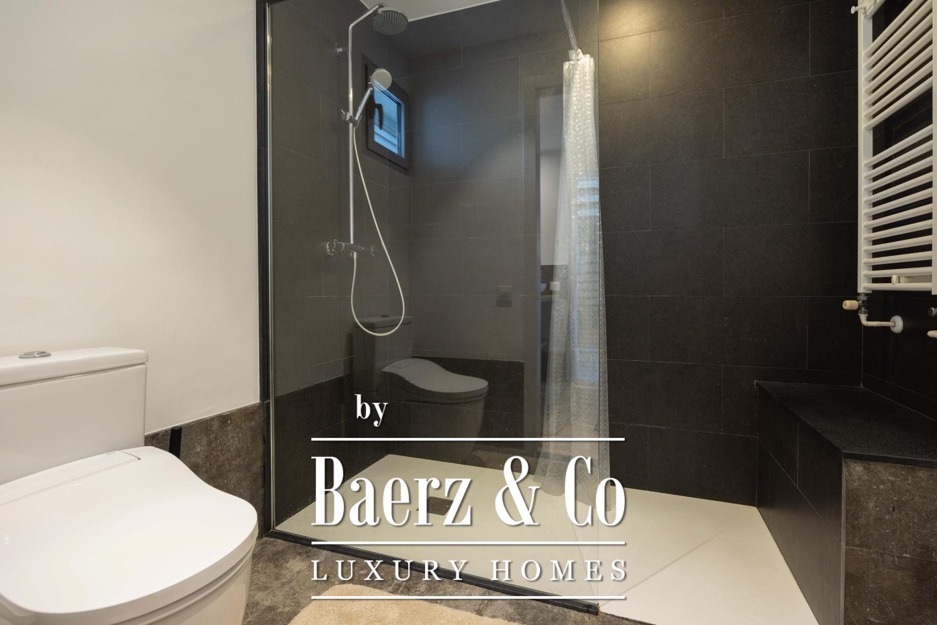 Four landscaped terraces extend the experience outdoors, surrounded by palm and banana trees, curated lawn, a shaded pergola, and a summer kitchen. The 7x5 m swimming pool and wooden sun deck invite moments of relaxation and privacy. The master suite is defined by its walk-in wardrobe, private terrace, and hydromassage bath, while two further bedrooms access a secluded outdoor retreat. An elevator connects the levels, providing comfort and effortless movement throughout the home. The villa’s refined setting in Esplugues de Llobregat ensures both discretion and immediate access to the heart of Barcelona.