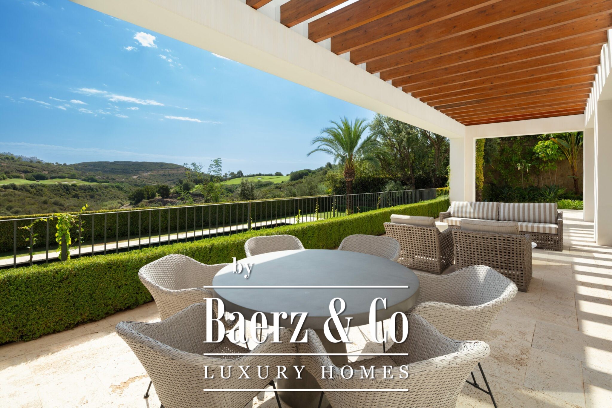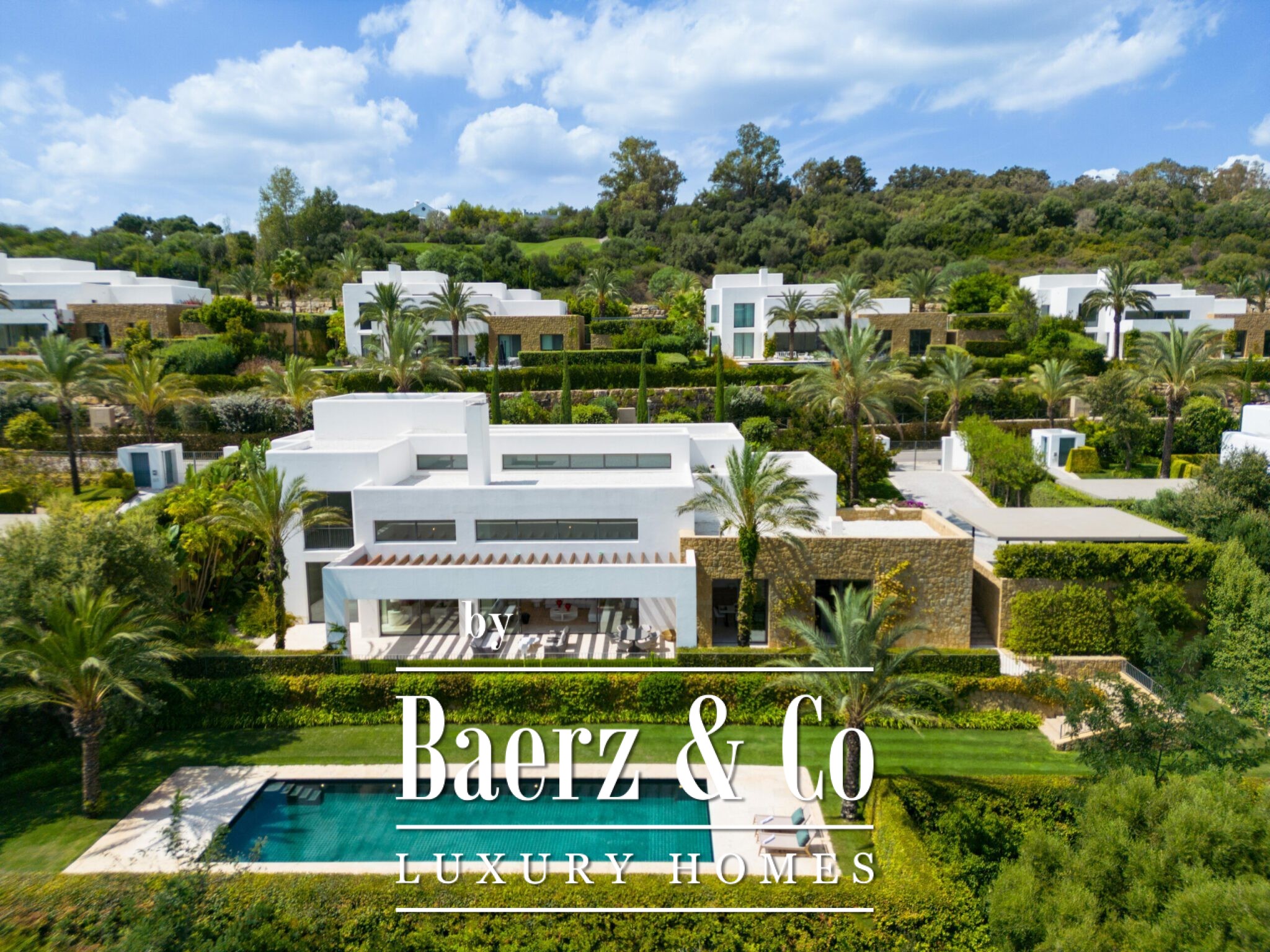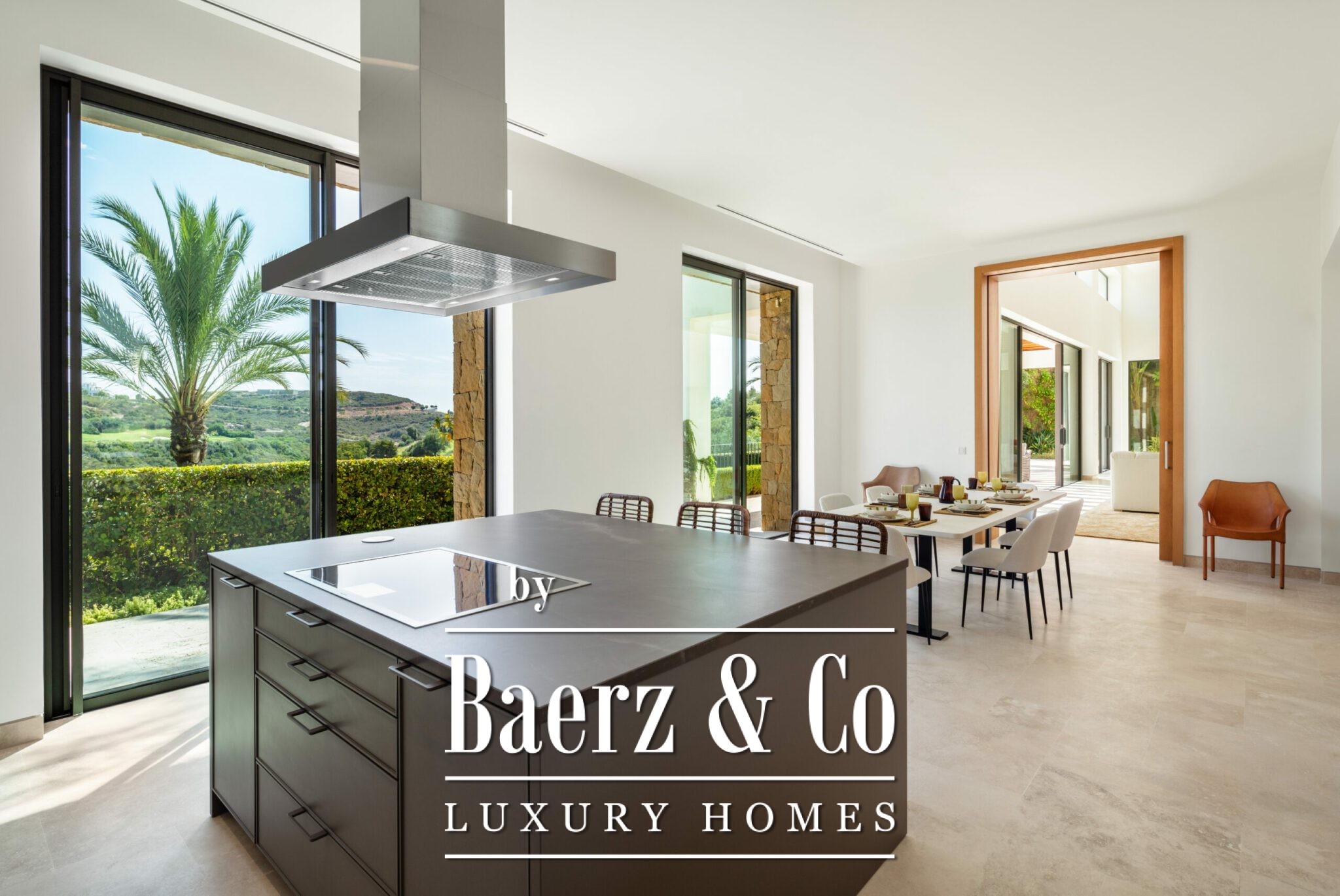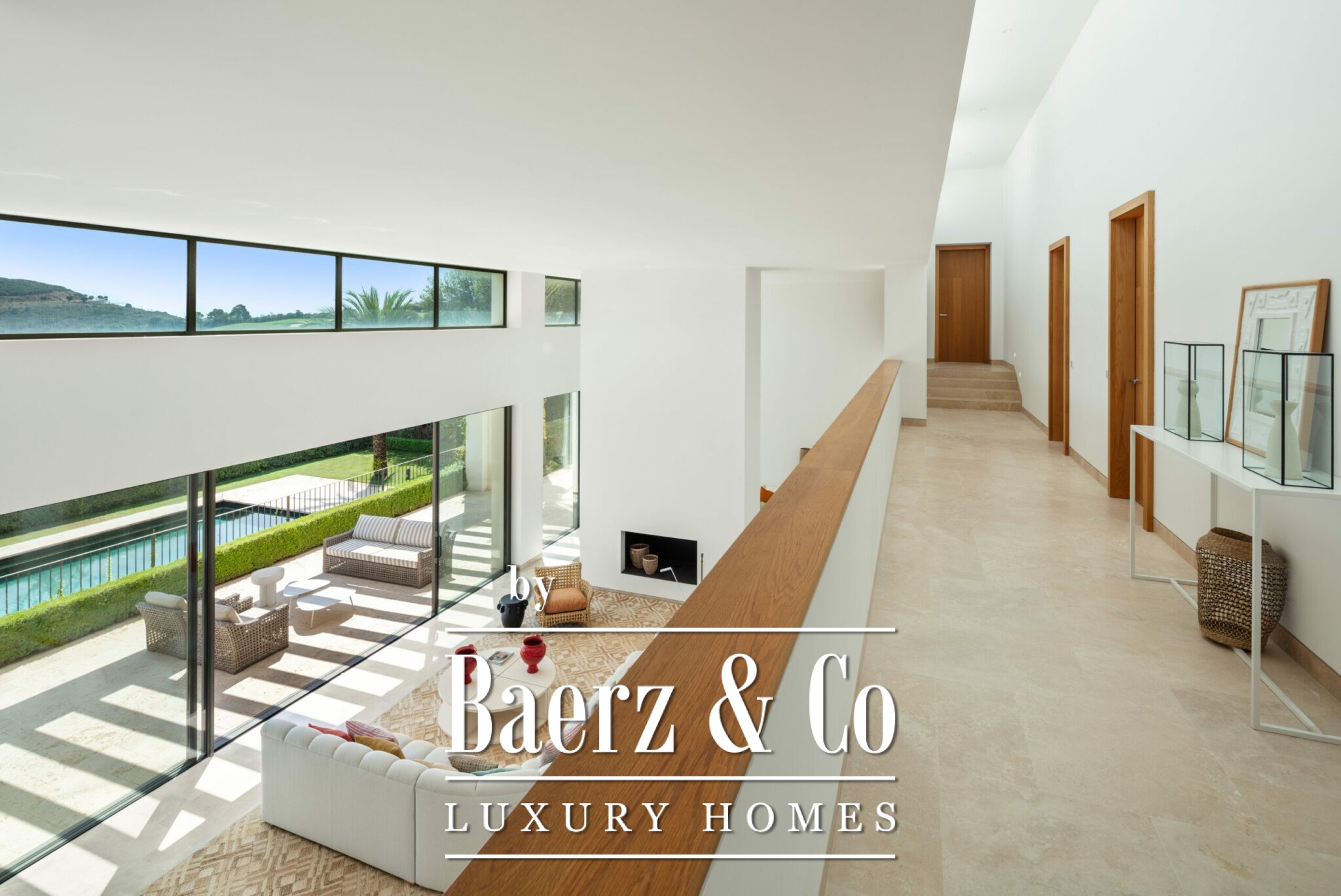 Villa Estepona offers a refined lens on panoramic golf and landscape views within Spain’s renowned Golf Resort. Spanning 874 m² with six bedrooms and six bathrooms, this newly built villa presents a modern architectural silhouette and a cultivated sense of space. The approach through a private driveway underlines discretion, while covered parking for two cars invites ease and privacy.