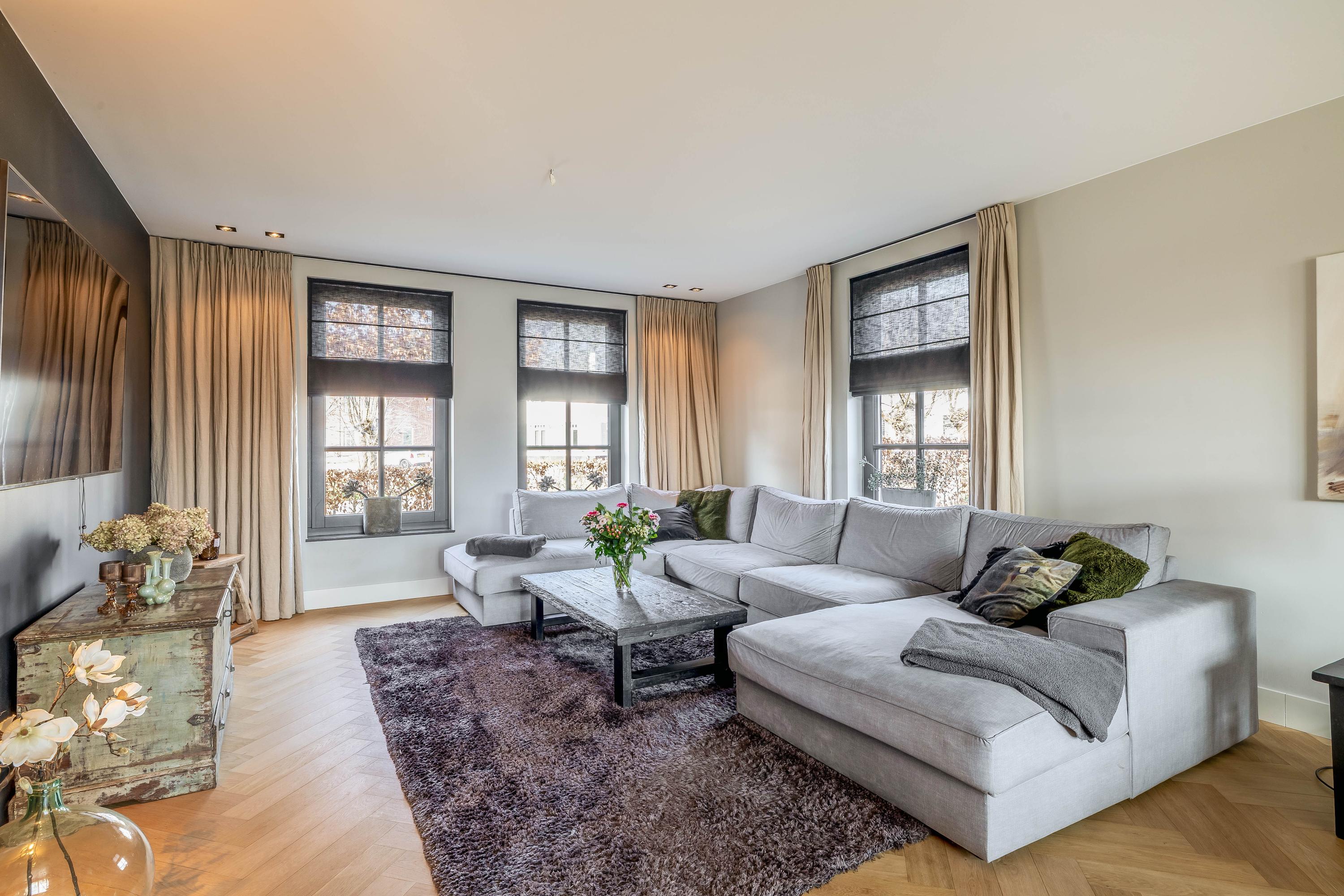 Through the entrance, you reach a hall that provides access to a storage cupboard beneath the staircase, the fuse box, a wardrobe cupboard, and a staircase leading to the first floor. The expansive living room, complete with a gas fireplace and large windows, forms the heart of the ground floor. From the living room, garden doors lead directly to the enchanting rear garden, where the terrace offers a perfect seamless connection between indoor and outdoor living. The spacious kitchen/dining room, equipped with a corner layout, an island, and high-end built-in appliances (such as a Quooker, dishwasher, exclusive cooking unit, oven, and extractor hood), allows you to enjoy culinary experiences at the highest level. A side entrance with a generous vestibule features a toilet, storage area, and practical built-in cabinets, with direct access to the garden via a service door.