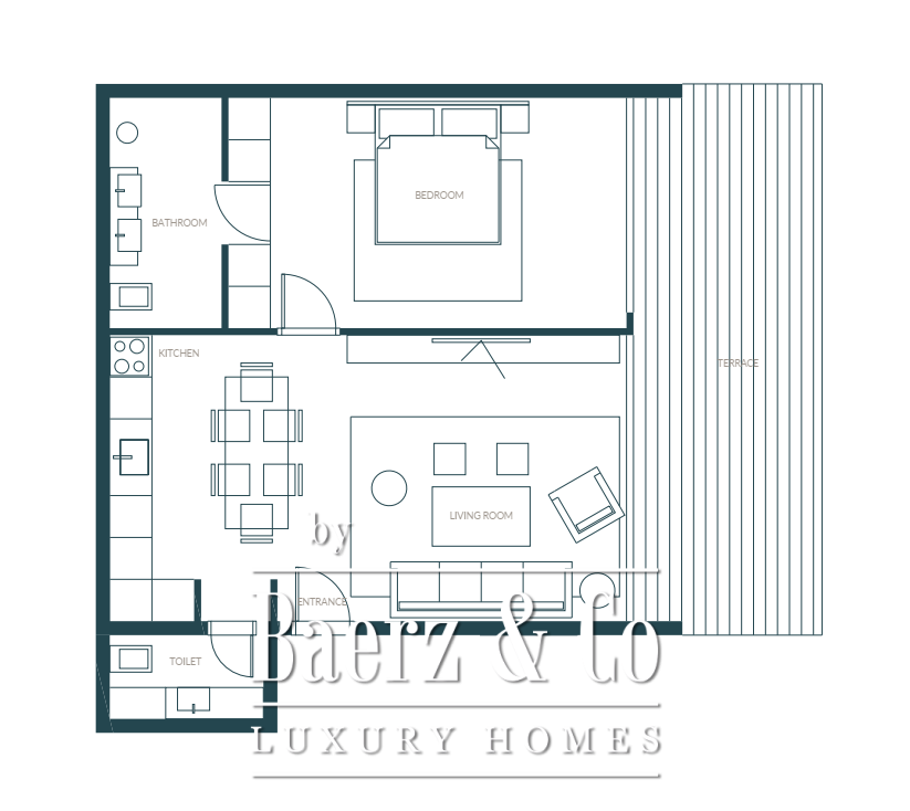 Inside, the layout balances ease and openness: a living room merges naturally with a kitchen and dining area, leading to a bedroom and bathroom, complemented by a separate guest toilet. The terrace frames restful sea and mountain panoramas. Floors and tiles will be finished, the bathroom equipped, and air conditioning installed, ensuring a ready-to-enjoy home base or investment. Apartment Herceg Novi stands amid restaurants, shops, and leisure amenities, combining convenience with the measured pace of the Montenegrin coast.