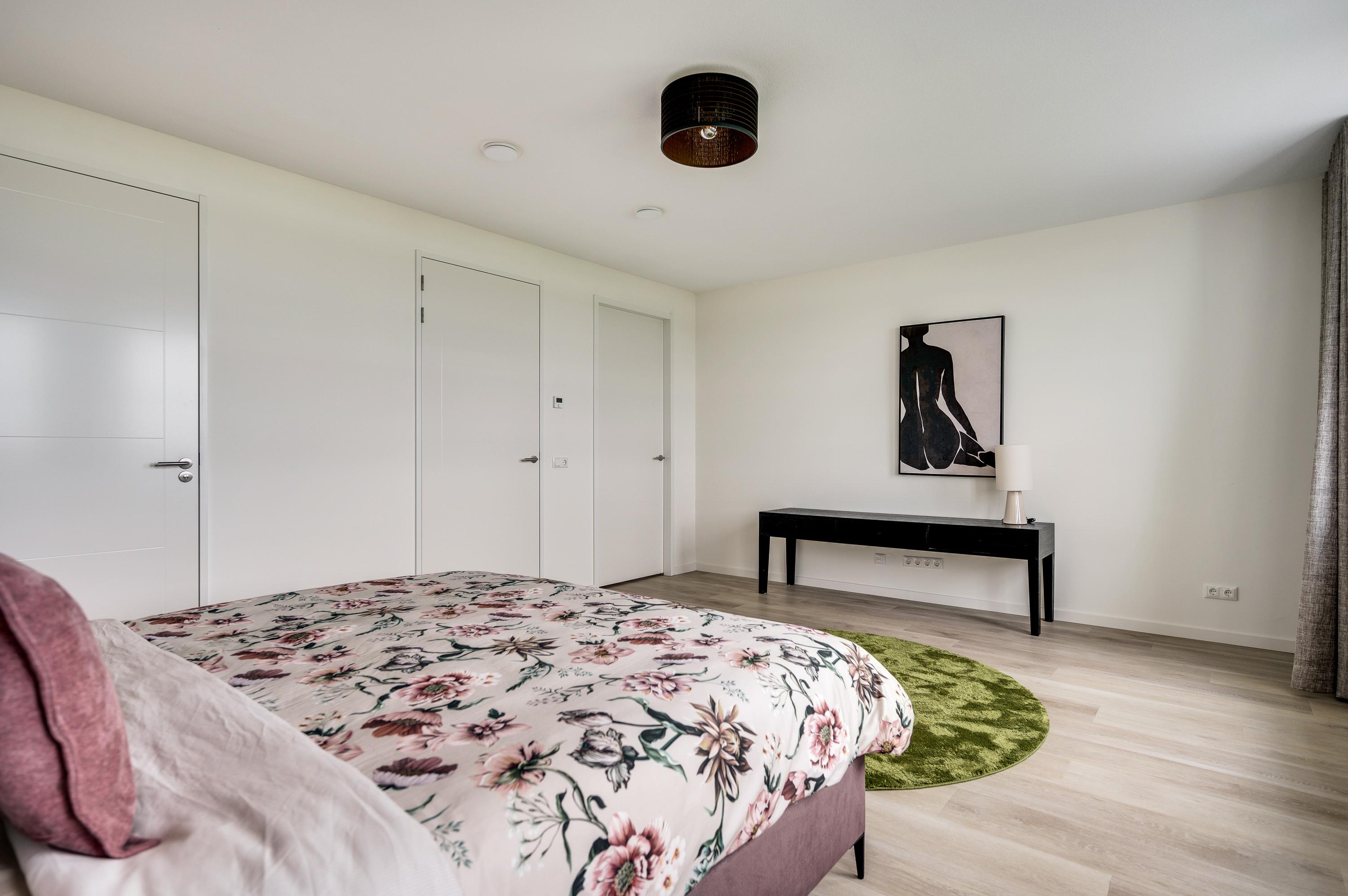 The master bedroom is located at the back of the house. Here you wake up wonderfully with the beautiful view over the water. The master bedroom has its own bathroom with walk-in shower, bath and wide, double sink. There is also access to the very spacious and luxurious walk-in closet.