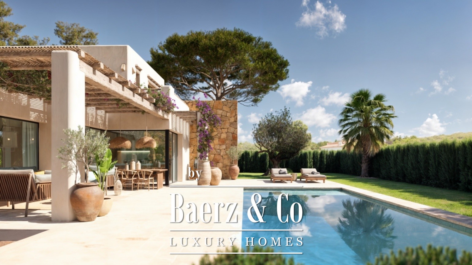 Ibiza style villa Jávea defines the meeting point of Mediterranean light and serene design. This modern house draws its character from Ibiza’s natural elegance, creating spaces that feel open, luminous, and connected to their surroundings. Every detail of the 196 m² living area on a 1,000 m² plot is conceived for tranquil living, blending contemporary finishes with relaxed island charm.