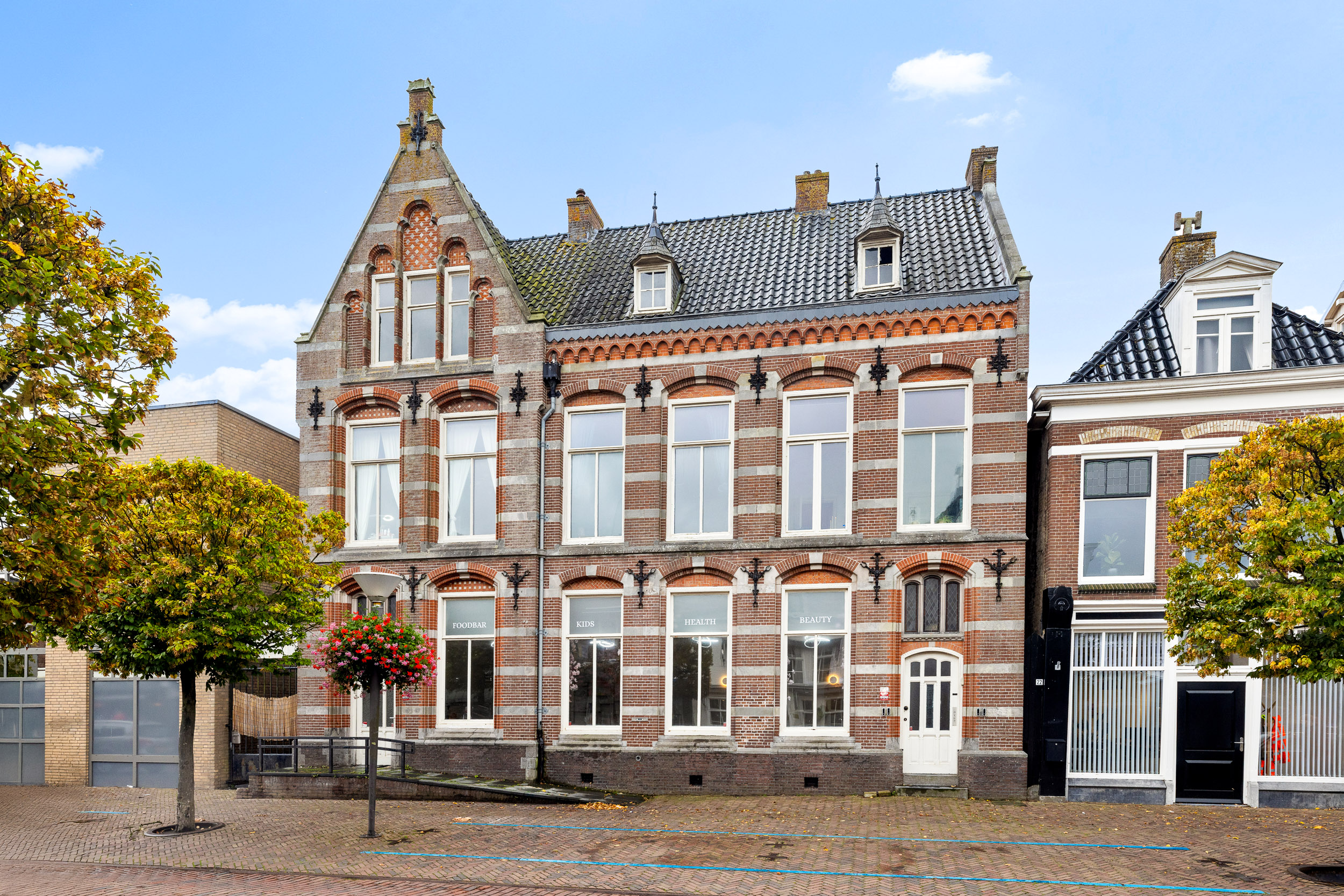 On the characteristic Midstraat, in the heart of Joure, stands this impressive National Heritage Monument dating from 1904, designed by the renowned architect and former Chief Government Architect C.H. Peters (1847–1931). The property is a magnificent example of Neo-Gothic architecture, enriched with refined Neo-Renaissance elements. Its richly ornamented façade, intricate brickwork and original detailing exude the grandeur of a bygone era.