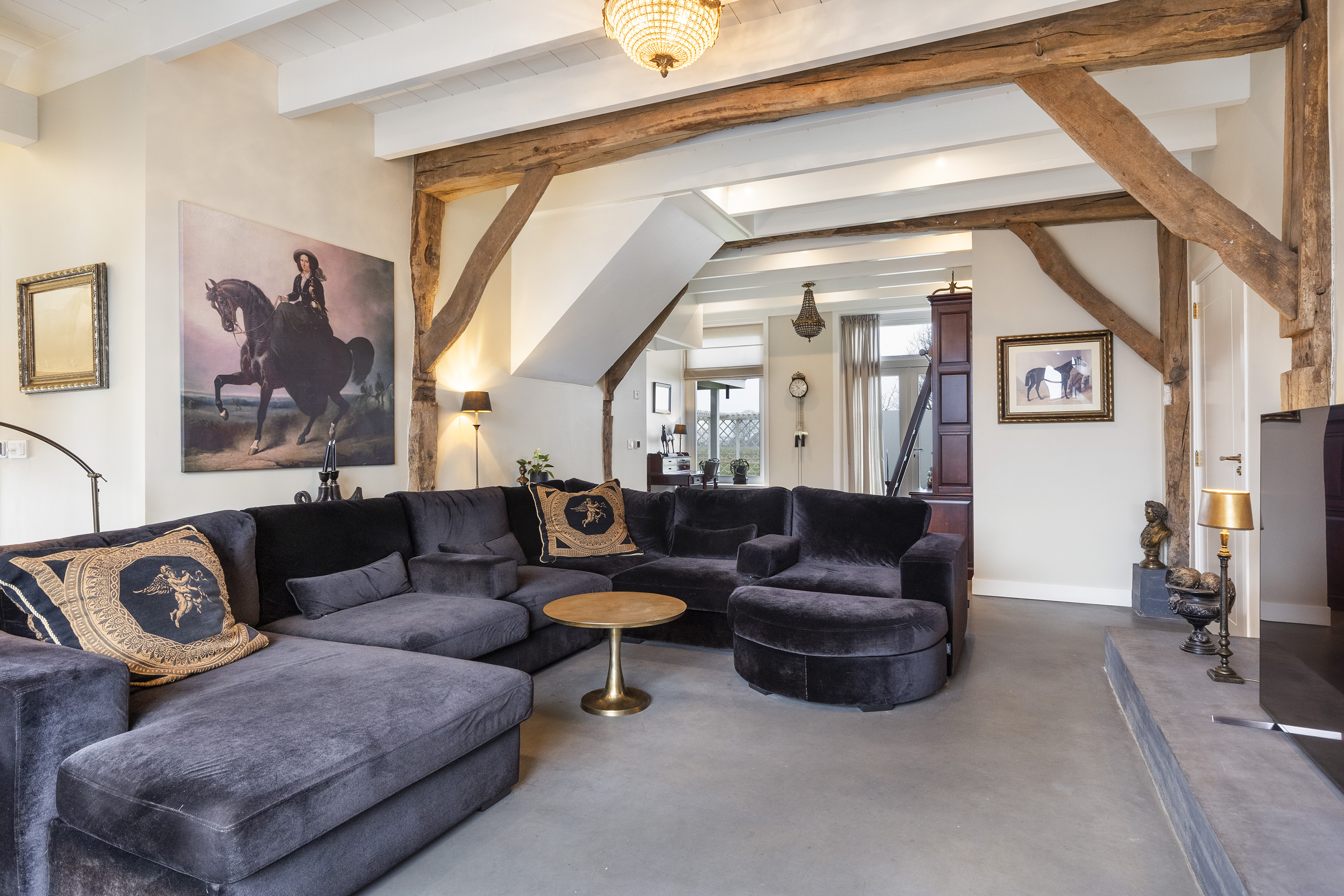 The farmhouse itself exudes atmosphere and authenticity, with high ceilings, exposed beams and a warm selection of materials, combined with contemporary levels of comfort. Thanks to high-quality insulation of the roof, floors and walls, underfloor heating, new timber window frames with HR++ glazing and a modern electrical installation, the property benefits from an energy label A.