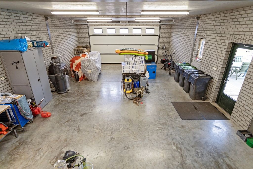 De vrijstaande garage is uitgerust met een elektrische poort, heeft een zolderruimte en een toilet. Het aangrenzende terras met overkapping biedt een heerlijke plek om van het buitenleven te genieten.