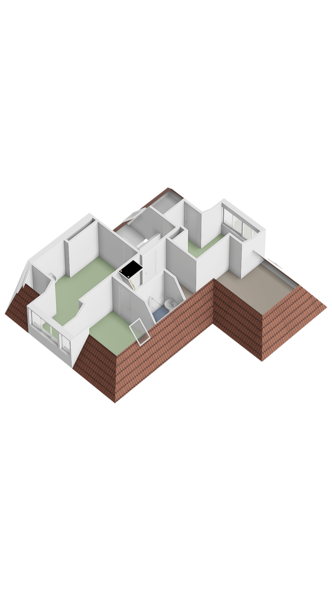 Hier wordt de bijzondere en speelse opzet van de woning goed zichtbaar. Het dak heeft verschillende nokken en dit is terug te zien in de indeling. Nu zijn er meerdere slaapkamers, een douche en ook nog een speelzolder die speels met elkaar in verbinding staan. Uiteraard kan dit nog naar eigen inzicht worden ingedeeld.