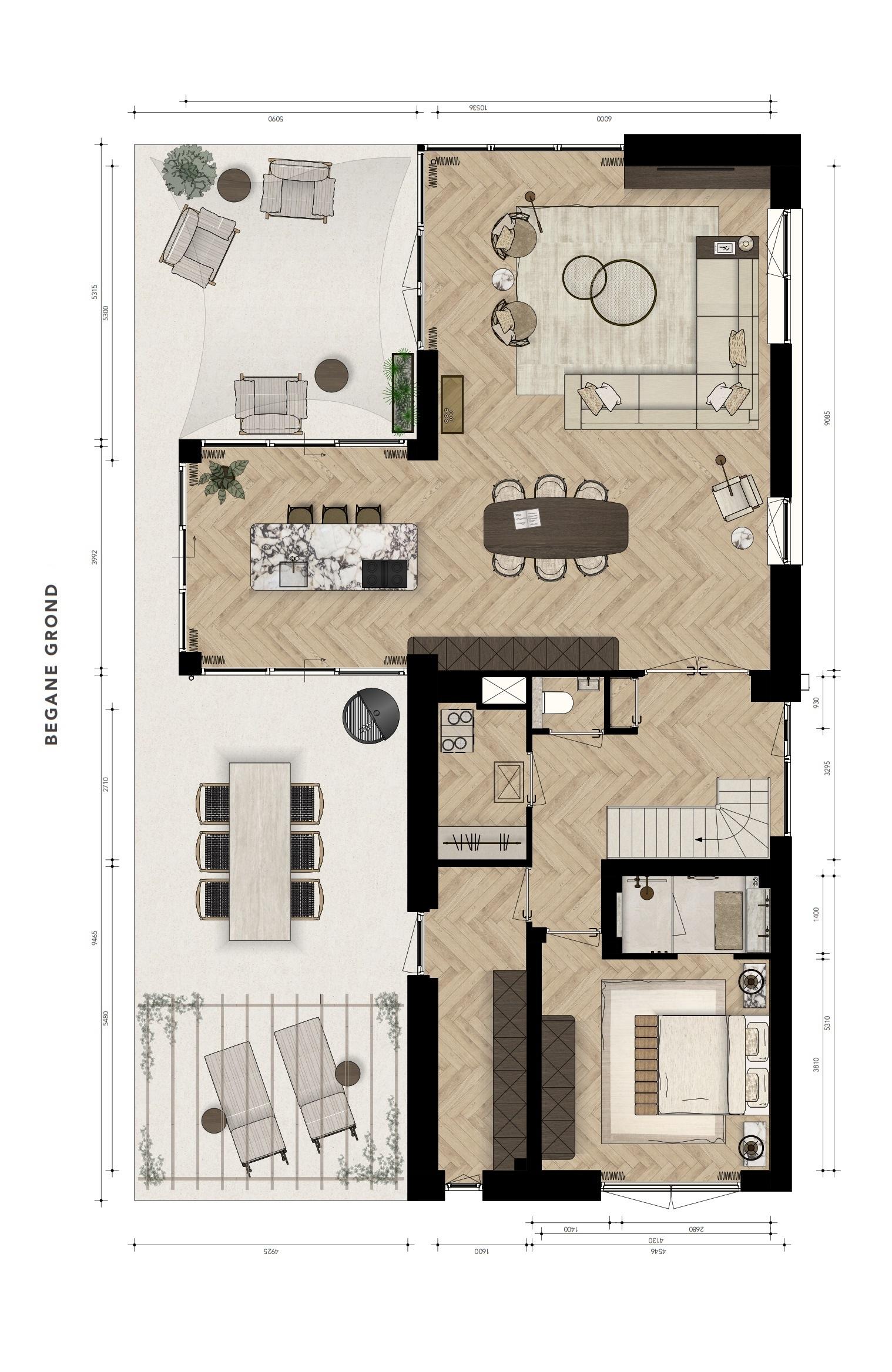 Furthermore, the ground floor will be equipped with a spacious bedroom with bathroom (shell) entirely according to the buyer's wishes.