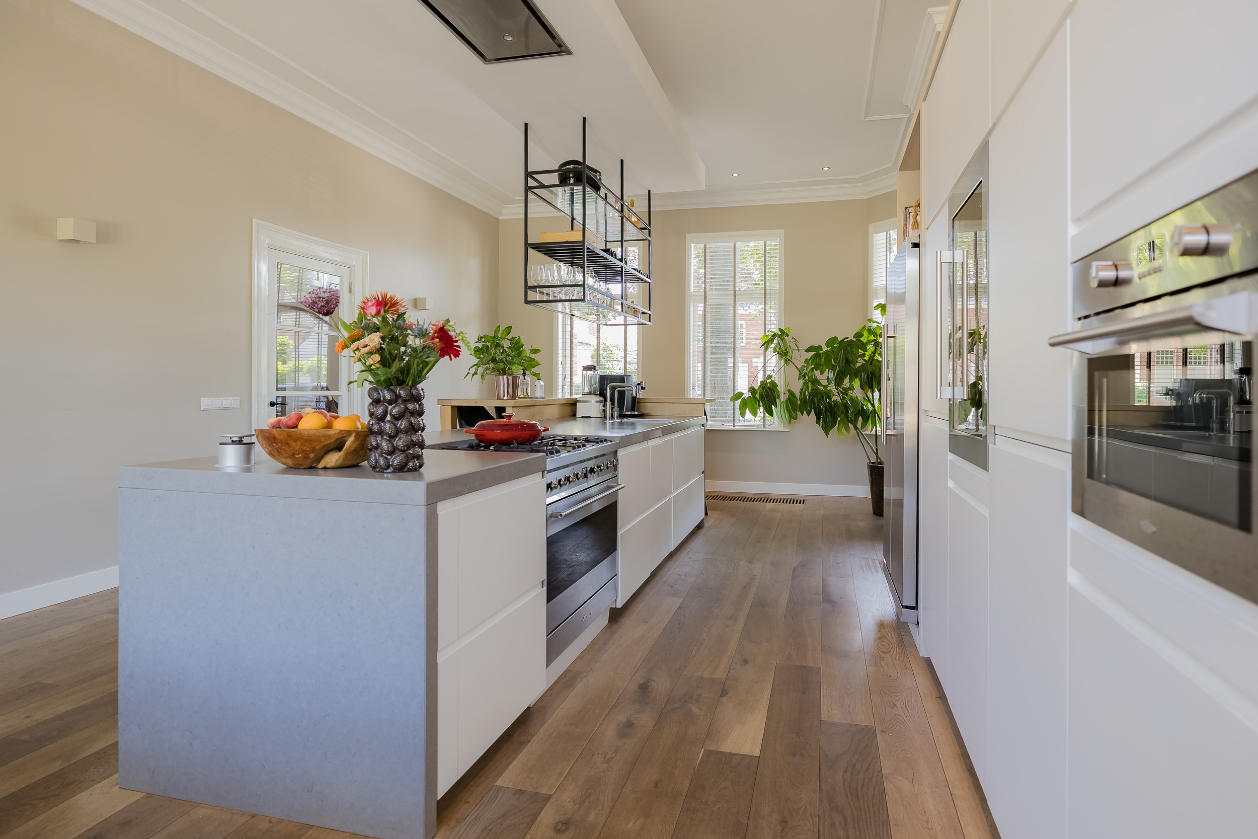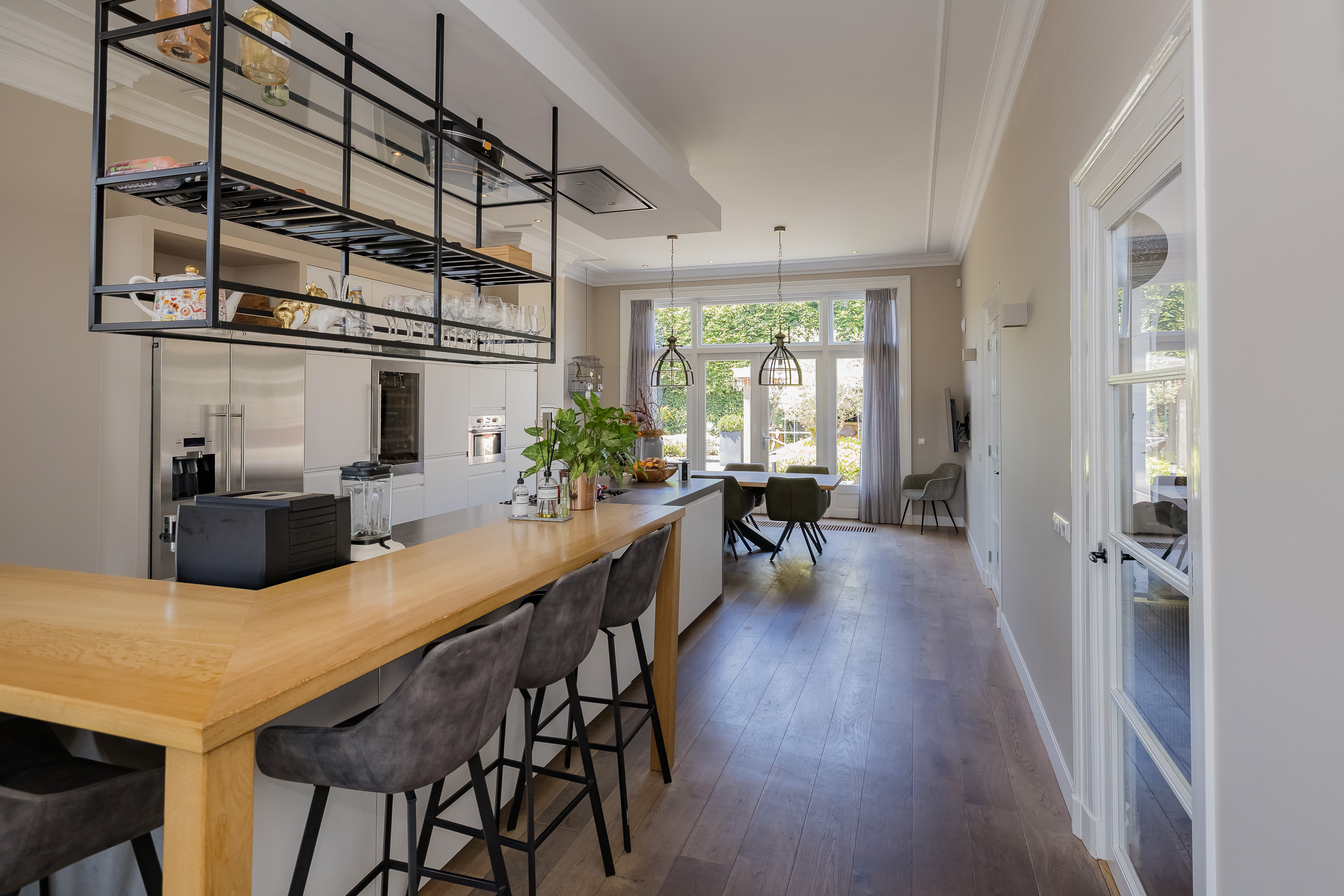 This very stately detached townhouse (municipal monument) with indoor large garage and driveway for 2 cars has been completely renovated while maintaining character. It is located on the most popular part of the Heereweg, in the center of the village and has been very luxuriously renovated in 2018. The monumental beech trees complete the whole picture. The attractive Square with its many terraces, elementary school and stores are within walking distance.