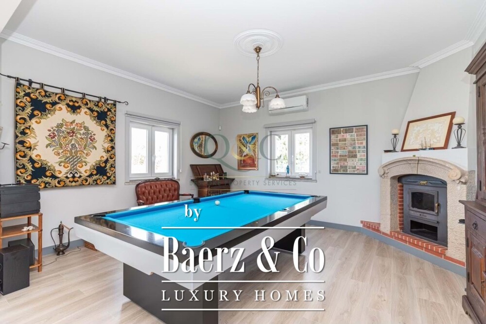 Outdoors, the scene shifts to a private pool enveloped by spacious terraces, set within a 1,950 m² plot that offers both countryside and pool views. With amenities including a garage, ample parking, mains water, and borehole, this villa effortlessly supports an elevated pace of life amidst the tranquil surroundings of Loulé São Clemente.