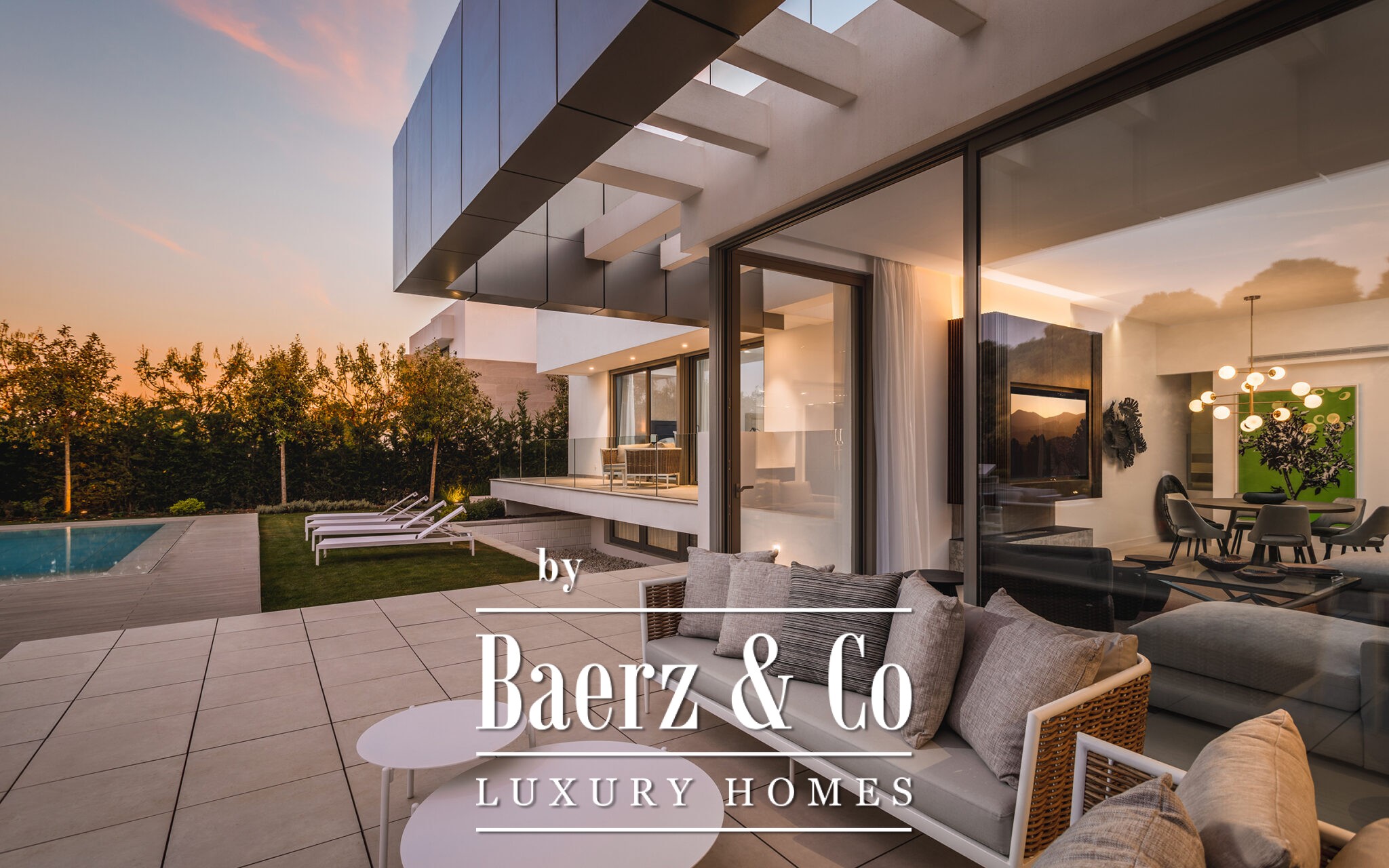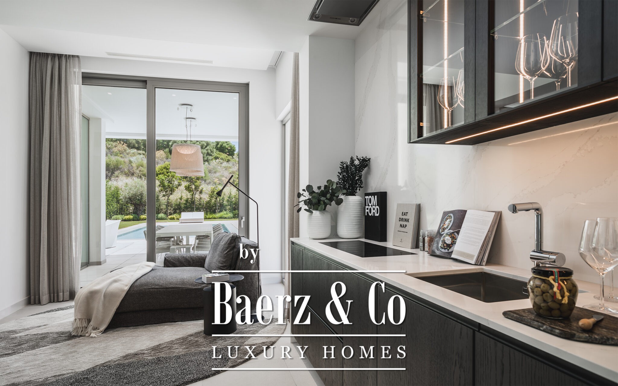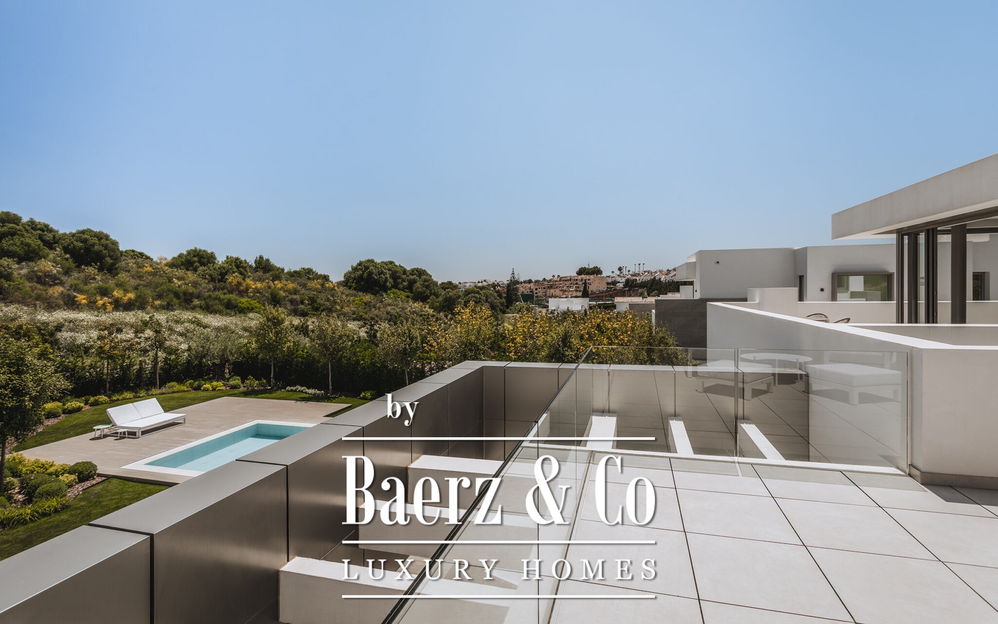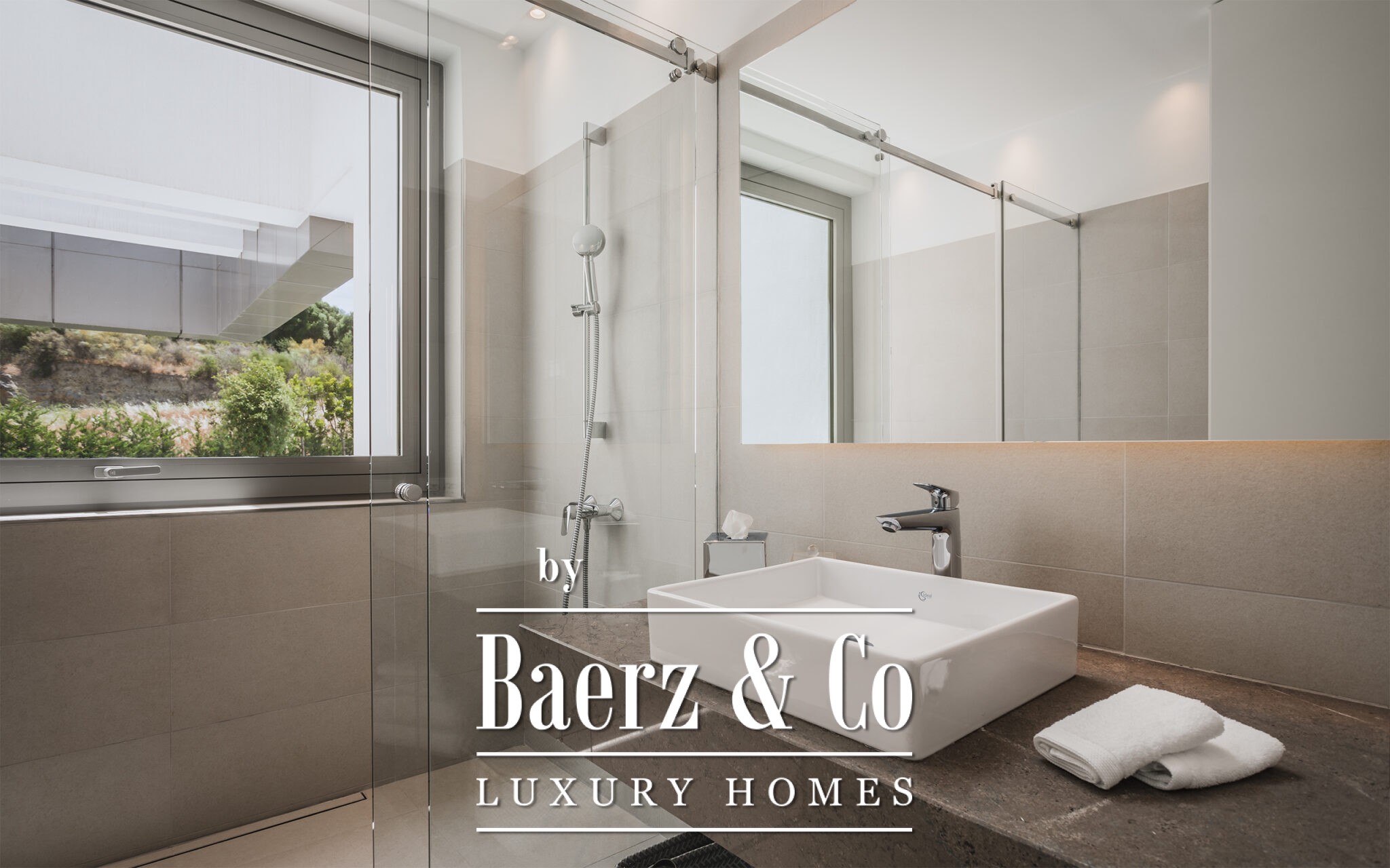 Villa Marbella in El Paraiso offers a tranquil and sophisticated setting among the Andalusian hills, surrounded by the exclusivity of a select gated community of just nine residences. This villa, with 626 m² of living space set upon an 808 m² plot, is designed for those seeking seclusion and easy proximity to Marbella, Estepona, and the coast. Villa Marbella in El Paraiso presents clean lines and generous south to southeast orientation, ensuring interiors are flooded with natural light. Floor-to-ceiling glazing connects open-plan living spaces and a sculptural, high-end German kitchen to terraces, private landscaped gardens, and a personal swimming pool. Each bedroom features en-suite bathrooms, elegant wood flooring, and muted, contemporary finishes—combining Villeroy & Boch fixtures, grey marble tiling, and thoughtful lighting. The residence privileges comfort and refinement, with amenities such as underfloor heating, hot and cold air conditioning, home automation, and a fireplace. Two covered parking spaces, intelligent movement sensors, and a multi-purpose basement—ideal for a gym or cinema—complete the offering. The surrounding El Paraiso enclave is serviced by renowned golf courses, international schools, boutiques, and fine dining, supporting a pace of life defined by discretion and access.