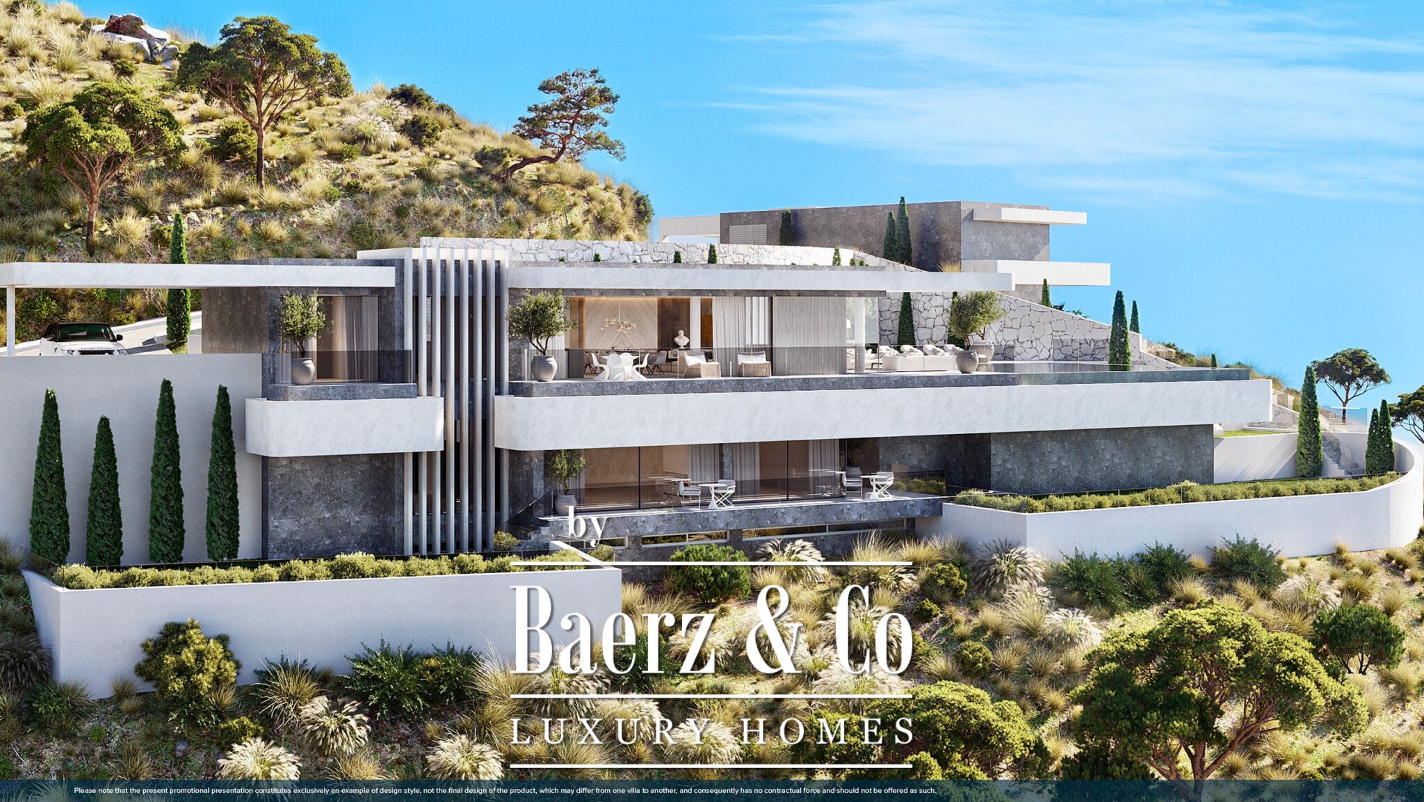 Each villa, between approximately 500 m² plus terraces and expansive gardens, is situated on plots ranging from 1,107 m² up to 10,005 m². Generous, light-filled living spaces are heightened by windows that vanish into the walls, allowing the lounge to merge seamlessly with the terrace. The inside flows naturally outside, supporting year-round Mediterranean living. Three to four en-suite bedrooms ensure privacy and comfort, while selected residences include garage parking or covered spaces. Custom-designed furnishings and curated art elevate the interiors for those who value provenance and individuality.