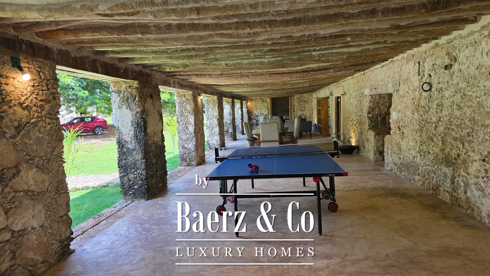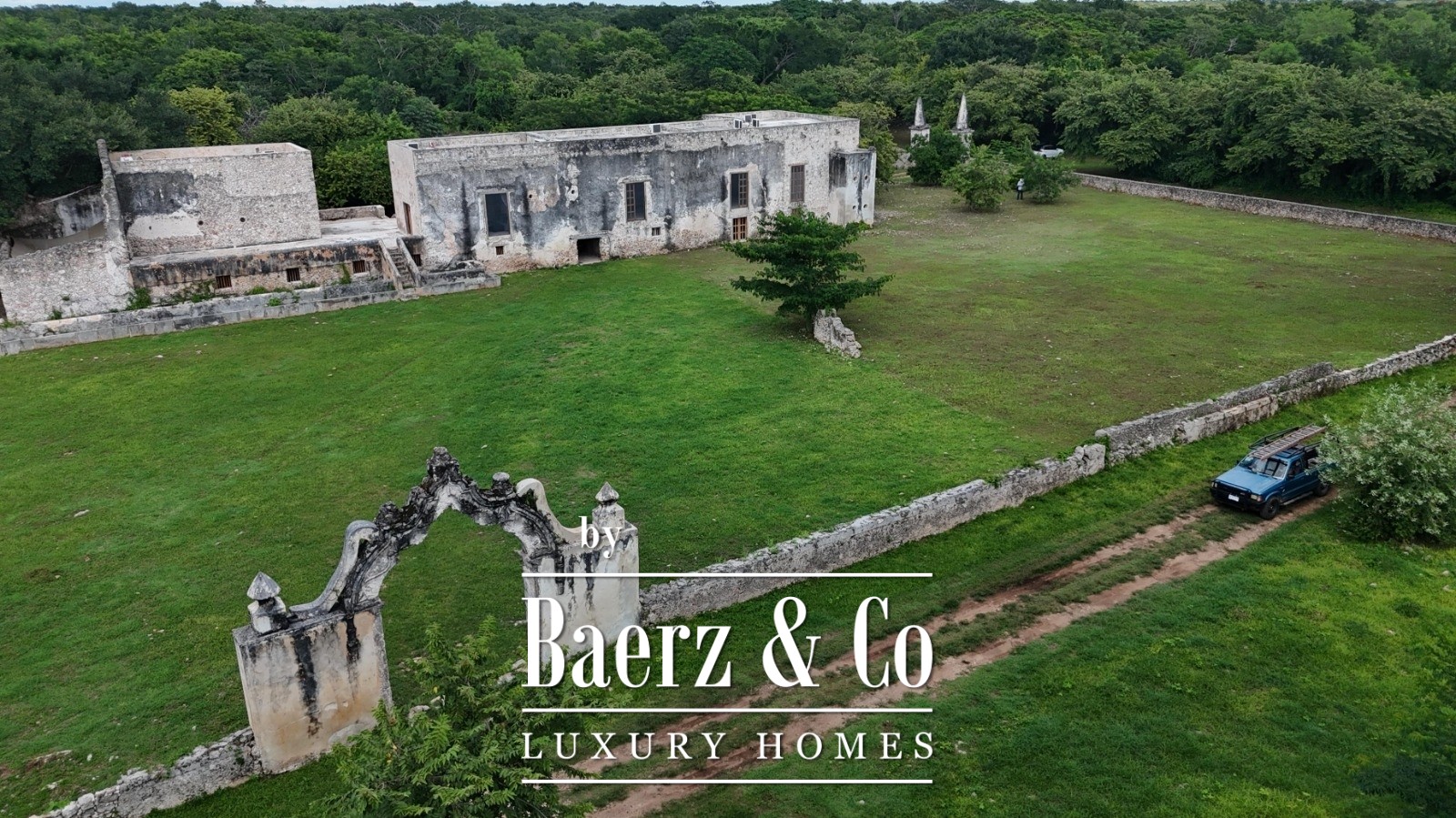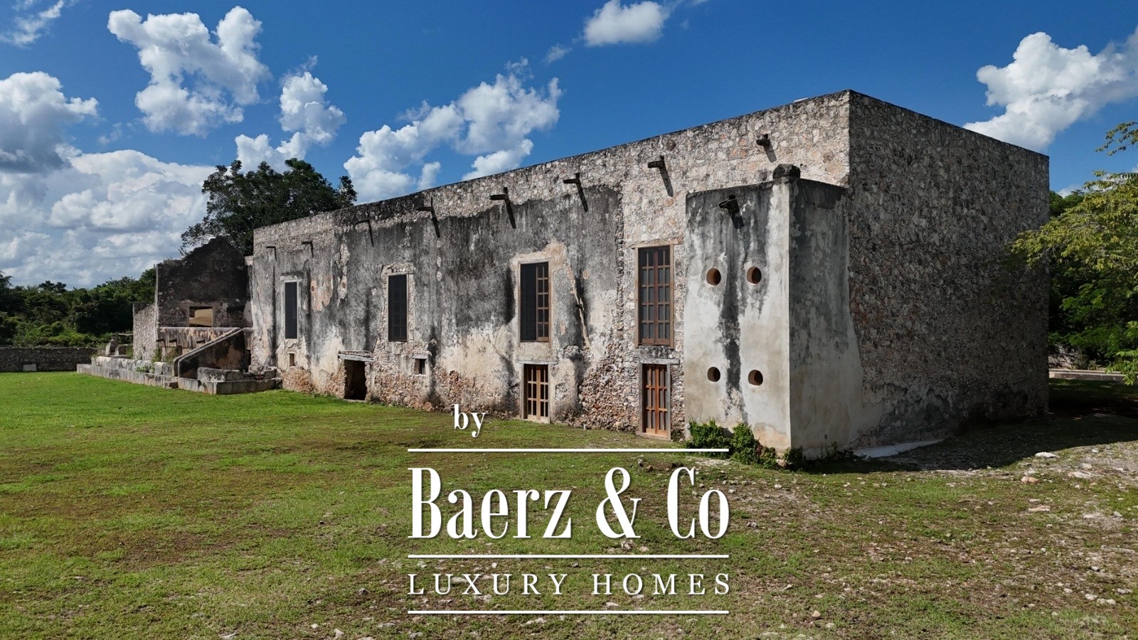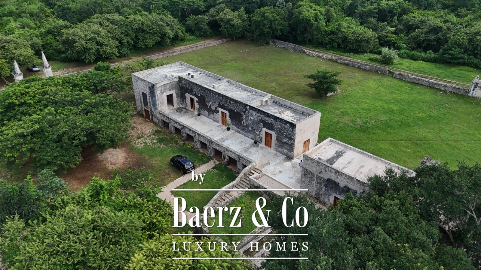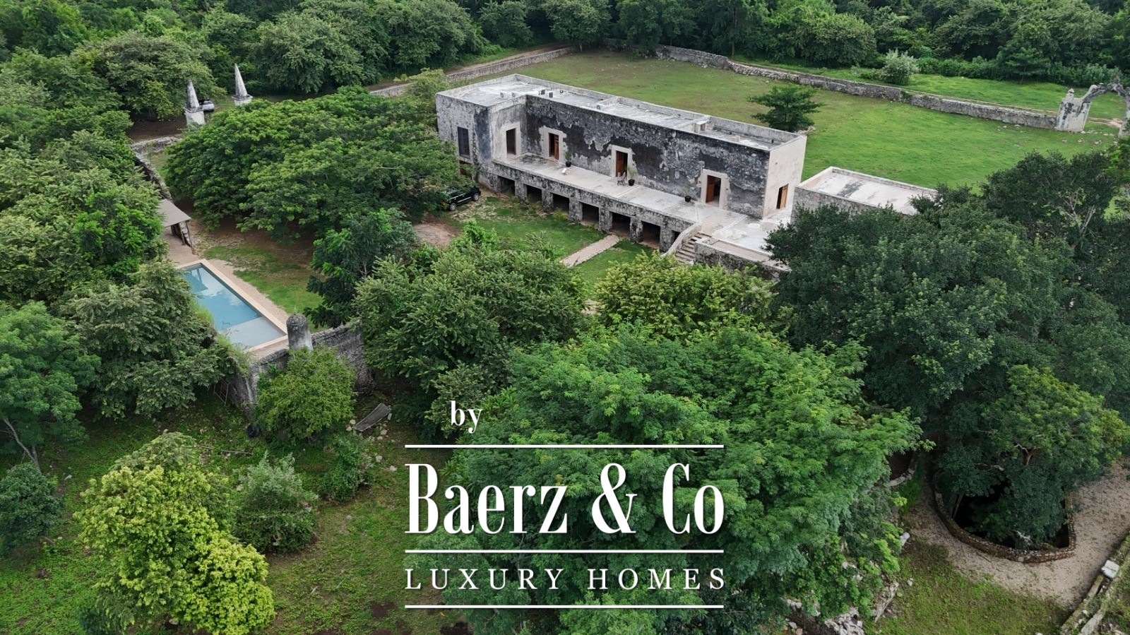 A descent to the cenote reveals a cave alive with clear waters and native birdlife, accessed by hand-built zapote wood stairs. The estate retains historical features—original noria, stone corral, and structures—alongside unrestored buildings that hint at the property’s significance since at least 1770.